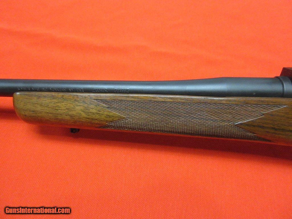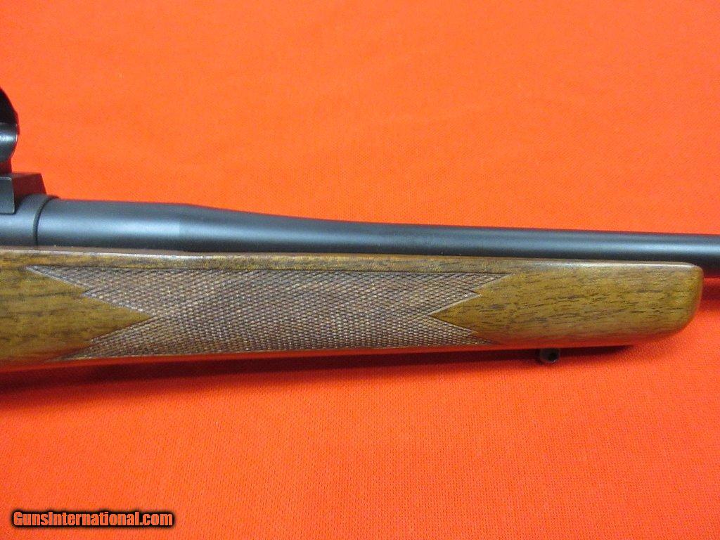 Description: Factory original and very good condition with a few very minor handling marks on the stock: matte finish on the barrel and receiver, nicely figured walnut stock, comes with the factory box as well as rings and bases. SOLD |