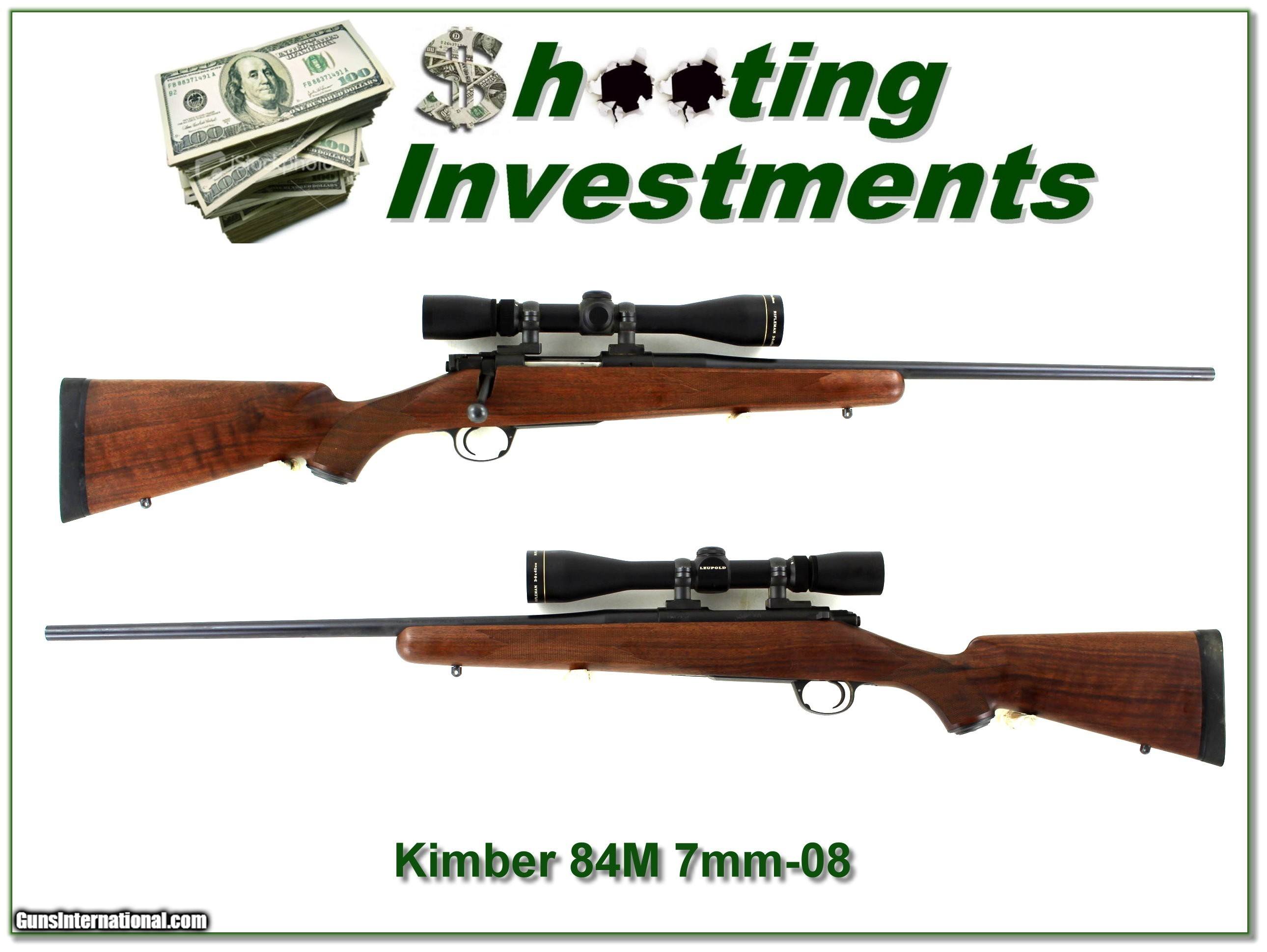 Description: This is an excellent condition Kimber 84M chambered in 7mm-08. I find no marks on the metal or the wood and I’m sure not many rounds fired. It comes with the Leupold 3-9 x 40mm scope as pictured. It will make a high-end hunting gun! I am selling this one on consignment and as such lay-a-way can’t be used. It does of course have the standard 3-day inspection. Shipping and insurance is $49. Please email me with any questions or larger pictures. (Consign your quality firearms with Shooting Investments for only 12%! Let me know if you have any you would like to sell!) 23-0440 Payment:Payment is by Money Order, Cashier’s Check or Personal Check. I can now also accept Credit Cards (MasterCard, Visa, Discover & American Express) with a 3% convenience fee. Shipping: The shipping charge will be listed in each description. It is $49 for most firearms. Some heavy guns or those insured for over $2000 will be higher. Shipments to Alaska and Hawaii are higher because air shipment is required. Most firearms are shipped on Tuesday and Thursday and usually in 5 days of receipt of payment. We package all shipments carefully and insure them. Optics are shipped Priority Mail and most other non-firearm shipments are shipped First Class. Returns: Our return policy is simple. If for any reason you are not pleased with your purchase, you may return your item for a full refund of purchase price. Ammunition cannot be returned. It is important to us that you are happy. Guns cannot be fired or dissembled before returning them and they must be returned in the same condition as received. Notification of a return must occur within 3 days of receipt at your dealer. Shipping, convenience and dealer fees are not refundable and are the responsibility of the buyer. Lay-a-way: If needed, we offer a 60 day lay-a-way option on most firearms. It is 1/3 now, 1/3 in 30 days and 1/3 in 60 days. Lay-a-way firearm sales are final and cannot be returned. If a lay-a-way is not completed the first payment cannot be refunded. Consigning your firearms with Shooting Investments: We will help you get top dollar for your firearms. While most local guns shops charge 20% or more, our fee is only 12% with a minimum of $75. At your local gun shop it might take months to sell. Selling on-line provides instant access to thousands of interested buyers. You won’t find any other on-line dealer willing to sell your firearms for only 12% or listing every gun on 3 separate s. Selling through an House typically costs the seller 15% and the buyer an addition 15% (so 30%) and you have to wait several months to sell and longer to receive funds. If properly priced, we will sell your firearms within a few weeks. Send us an email or give us a call and we’ll explain how easy it is for you to get top dollar. Trading: Trading for us is really just buying your gun to re-sell. If you have a gun you want to trade, please email a picture and we will let you know what we can give for it. You will always get more if we sell it for you on consignment. SOLD |