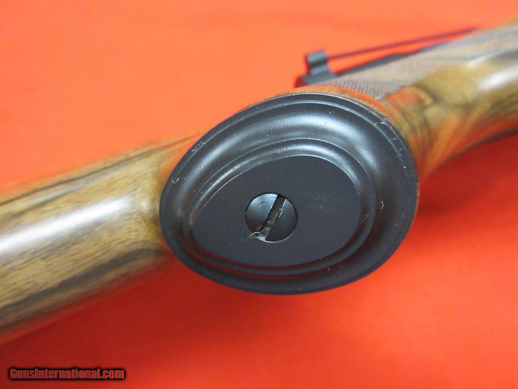 Description: Kimber 84M Select Grade AAA French Walnut 257 Roberts w/ Nikon -- Limited Production gun with blued action and light contour barrel. This gun has the full-length extractor and three-position safety. It features a AAA grade French Walnut stock with steel grip cap and ebony forend tip. This is a classic looking lightweight rifle. SOLD |