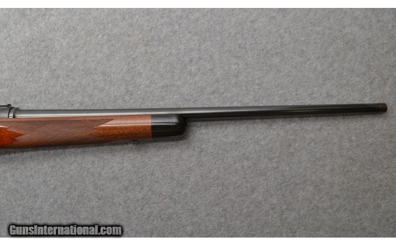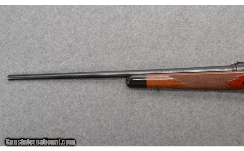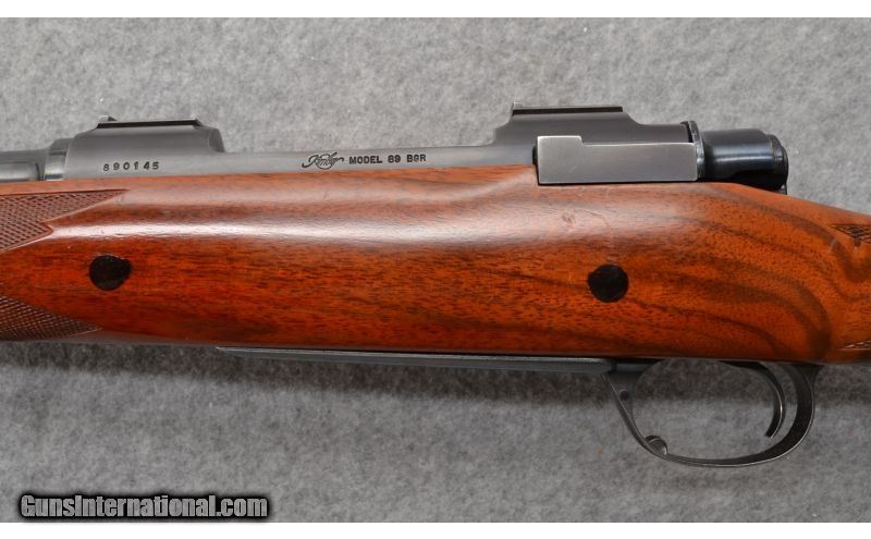 Description: Kimber of Oregon model 89 BGR .270 Winchester, 22 inch threaded round barrel with thread protector. The bore is bright with strong rifling. Action shows some blue wear on the bolt handle and blue wear on the edges of hinge plate. The round barrel has some handling marks and scratches with some through the finish. Some blue wear at the muzzle. Walnut checked pistol grip stock with Monte Carlo cheek piece shows some handling marks and dings, though none are through the finish. The metal grip cap shows some minor wear. The fore end has some minor handling marks along with some finish delamination from the ebony fore end cap. SOLD Caliber Info: .270 Winchester Metal Condition: Action shows some blue wear on the bolt handle and blue wear on the edges of hinge plate. The round barrel has some handling marks and scratches with some through the finish. Some blue wear at the muzzle. Wood Condition: Walnut checked pistol grip stock with Monte Carlo cheek piece shows some handling marks and dings, though none are through the finish. The metal grip cap shows some minor wear. The fore end has some minor handling marks along with some finish delamination Bore Condition: Bright bore with strong rifling. Barrels: 22 inch round threaded barrel comes with thread protector. Triggers: Blued single smooth trigger. Stock: Walnut checkered pistol grip stock and fore end with ebony fore end cap. Stock Dimensions: 13 1/2 inch LOP Fore End: Walnut checkered fore end with ebony fore end cap. Butt Pad: Factory red rubber recoil pad. Weight: 7 lbs 14 ozs Sights: No sights integrated scope base. Comes with one inch quick detach rings. Item Location: Mitchell, SD |