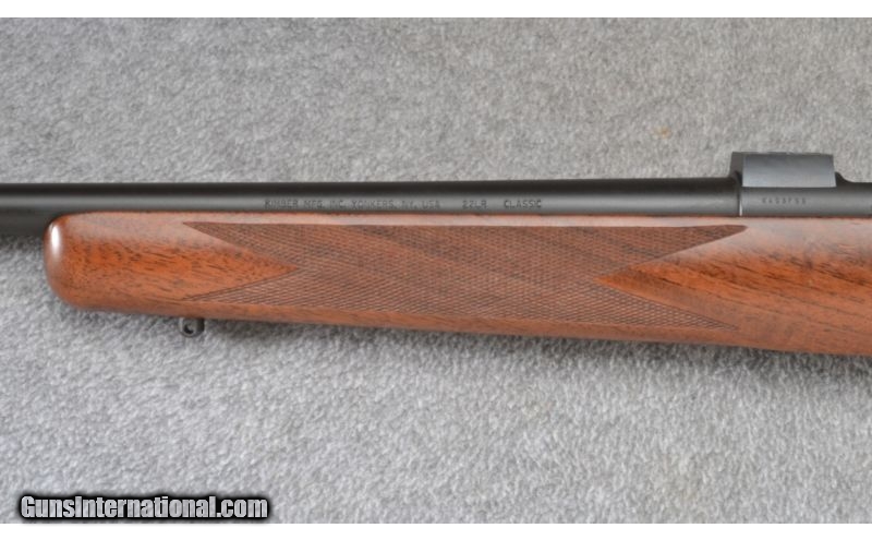 Description: Wood shows a few light storage marks. Blue and bore are excellent. Complete with case. SOLD Manufacturer: S/N KA03XXX Caliber Info: .22 LR Metal Condition: Excellent Wood Condition: Very Good Bore Condition: Excellent Barrels: 22 Triggers: Factory Stock: Checkered Walnut Pistol Grip with Steel Cap Stock Dimensions: 13 3/4" LOP Fore End: Checkered Walnut Butt Pad: Red Rubber Weight: 6 1/2 LB Sights: None - Bases Included Item Location: Wheeling, WV |