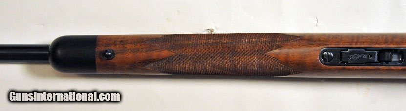 Description: Kimber K22 SuperAmerica Ser. No. KAO8694. .22 LR- 22" barrel. High polished blue with beautiful fiddleback wood. New in the box with all the papers and bases. SOLD |