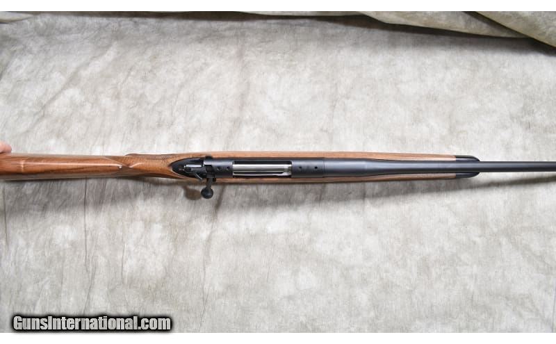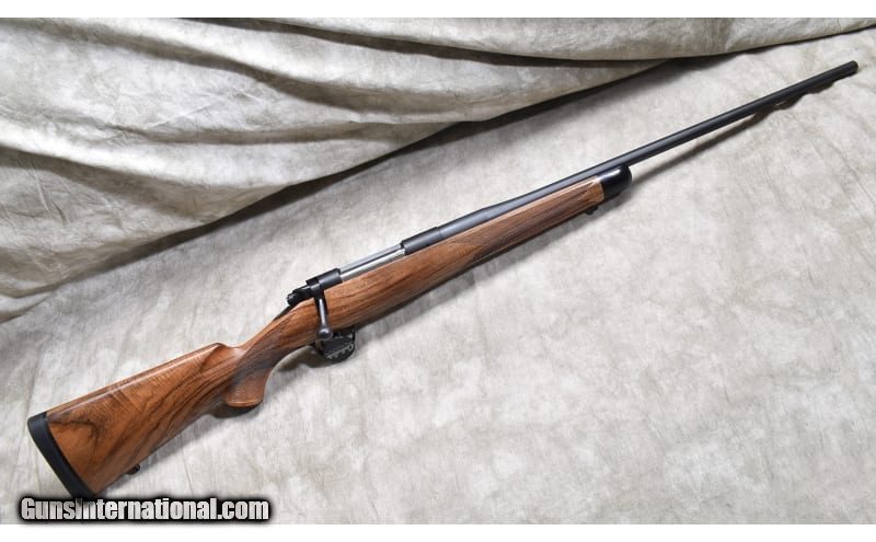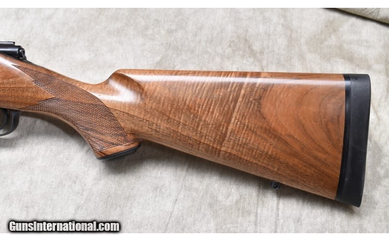 Description: Very nice light rifle featuring Select Grade walnut stock with black tip cap, black steel grip cap, and Mauser-like claw extractor. This one hasn't been fired much if at all. .30-06 Springfield SOLD Chambers: 4 Metal Condition: Excellent. Wood Condition: Excellent. Bore Condition: Shiny and bright with good rifling. Barrels: 24 inch Triggers: Factory trigger Stock Dimensions: 13-5/8 inch LOP. Fore End: Black tip cap and steel grips cap. Butt Pad: Soft rubber pad Weight: 6 lb - 4 oz. Sights: Drilled and tapped for scope Item Location: Rogers |