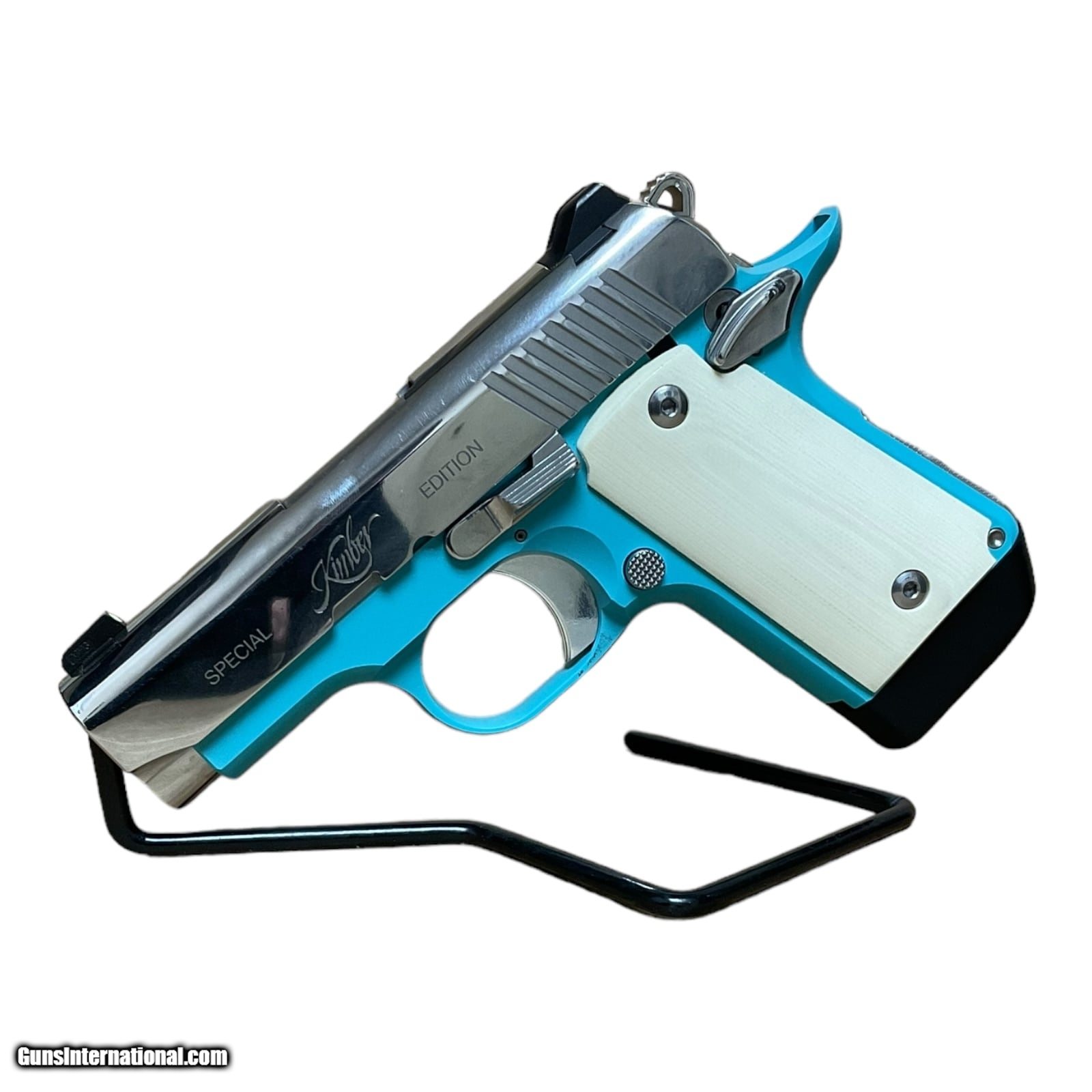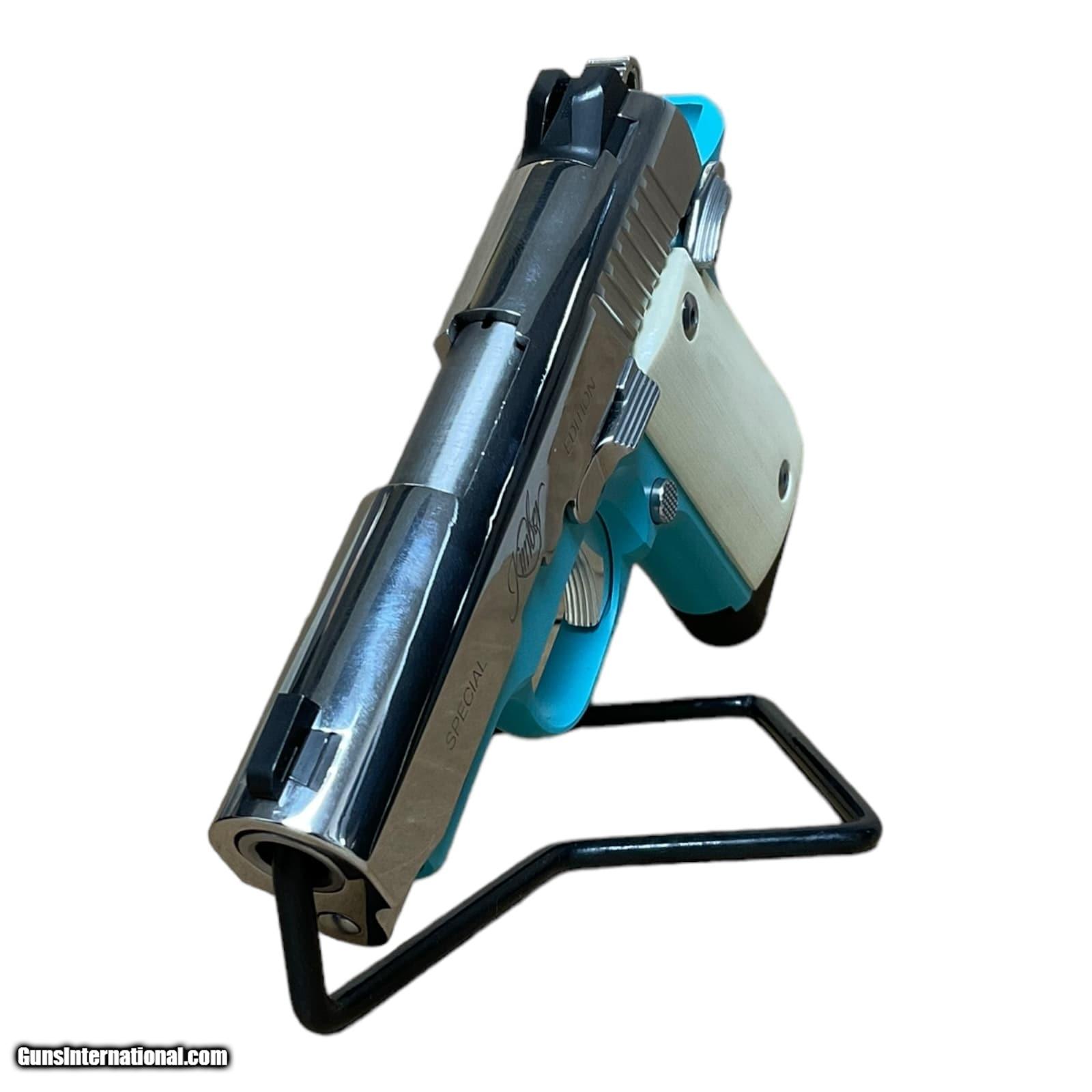 Description: Guns Listing ID: 1146575 Firearm comes with original manufacturer provided box and soft zipper case. Firearm is an excellent condition and comes with one single, seven round magazine. This firearm is the Belair special edition of the kimber micro 9, meaning that the frame is a light powder blue color with a polished, stainless slide, and ivory grips. SOLD Manufacturer: KIMBER Model: Micro 9 Bel Air Caliber Info: 9MM LUGER (9X19 PARA) Condition: Used - Non-Certified Barrels: 3.15 BARREL Finish: BEL AIR BLUE |