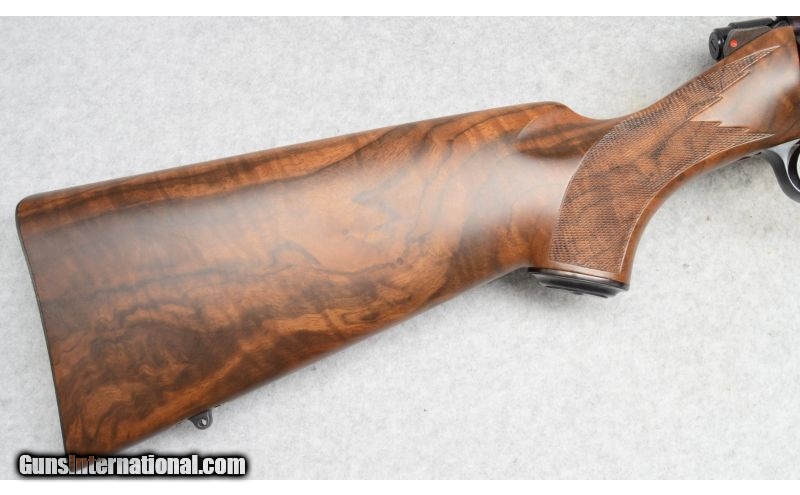 Description: Includes box. SOLD Caliber Info: .22 LR Metal Condition: Excellent. Wood Condition: Excellent. Bore Condition: Shiny with strong rifling. Barrels: 22 Stock: Checkered walnut. Fore End: Checkered walnut. Butt Pad: Textured black plastic. Weight: 6-lbs., 10-ozs. Sights: Talley bases. Item Location: Fort Worth, TX |