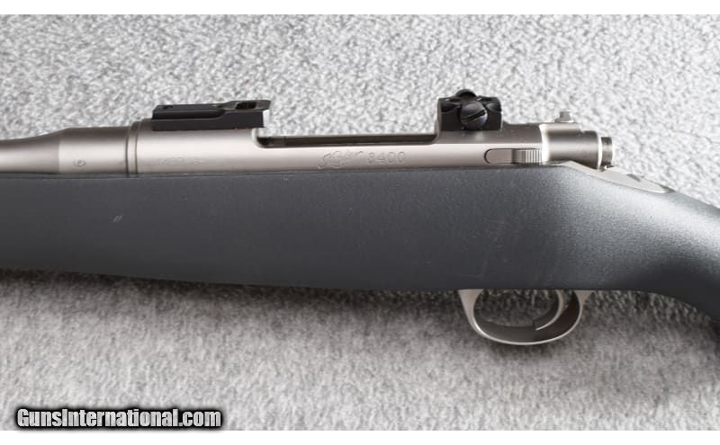 Description: This Kimber Model 8400 in .300 WSM remains in very good overall condition. The synthetic stock does show some scratches and handling marks. The metal finish has a few blemishes on the barrel. The bore remains bright and shiny. Chambered in .300 Win. Short Magnum (WSM). A set of standard Leupold bases is attached to the receiver. No box or other accessories accompany this rifle. .300 WSM SOLD Chambers: .300 Winchester Short Magnum in a three round blind magazine bolt action rifle Metal Condition: "Very good, a few small marks on the bottom of the trigger guard Wood Condition: The synthetic stock shows a few scuff marks Bore Condition: Excellent bright and sharp Barrels: 24" Stainless Triggers: Factory Stock Dimensions: 13 1/2" LOP Fore End: Grey Synthetic Semi Pistol Grip Stock - Grey Synthetic Free Float Forend Butt Pad: Kimber Textured Black Rubber Butt pad Weight: 6 1/4 LBS Sights: None - Leupold Standard Bases Attached Item Location: Grand Junction, CO |