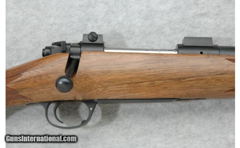 Description: Select Grade SOLD Caliber Info: .25-06 Rem. Chambers: Hinged floorplate Metal Condition: Very good. Very light freckling on barrel at bore top. Wood Condition: Very good. Minor light handling marks. Bore Condition: Excellent Barrels: 24 inch satin black. Stock: Checkered walnut pistol grip with a black metal cap. Stock Dimensions: LOP 13 3/4 inches. Fore End: Checkered walnut with an ebony tip. Butt Pad: Kimber rubber recoil pad. Weight: 6 lbs. 7 oz. Sights: Scope mount base attached. No iron sights. Item Location: Richfield, WI |