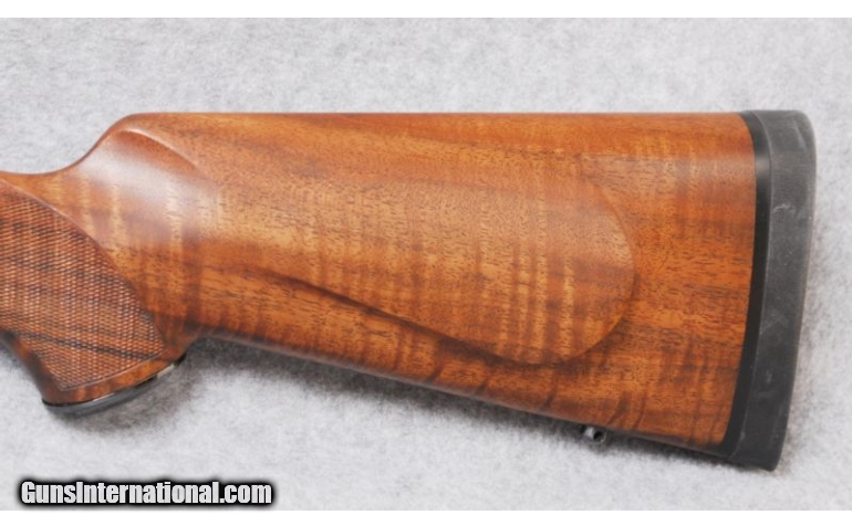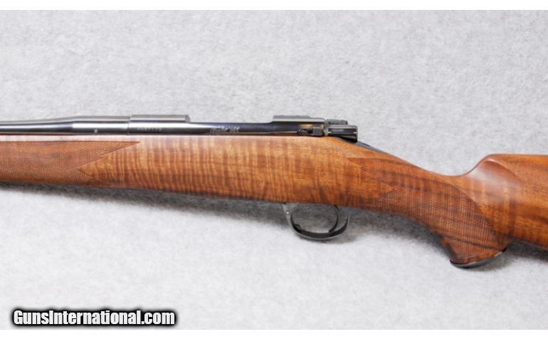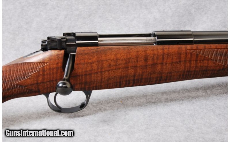 Description: SOLD Caliber Info: .308 Winchester. Metal Condition: Blue-black receiver, 2-position right-hand safety, smooth bolt knob, cocking indicator and slft-side bolt release. Wood Condition: Excellent. Bore Condition: Excellent. Barrels: 22" barrel with no sights. Triggers: Wide and smooth. Stock: Hand rubber oil finish dark walnut with a checkered pistol grip and sling stud. Stock Dimensions: LOP: 13 3/8". Fore End: Checkered fore end with a black fore end cap and sling stud. Butt Pad: Soft rubber recoil pad. Weight: 5 lbs. 12 oz. Sights: Receiver drilled and tapped for scope mounts. Extras: Comes with the original box. Item Location: Kansas City, KS |