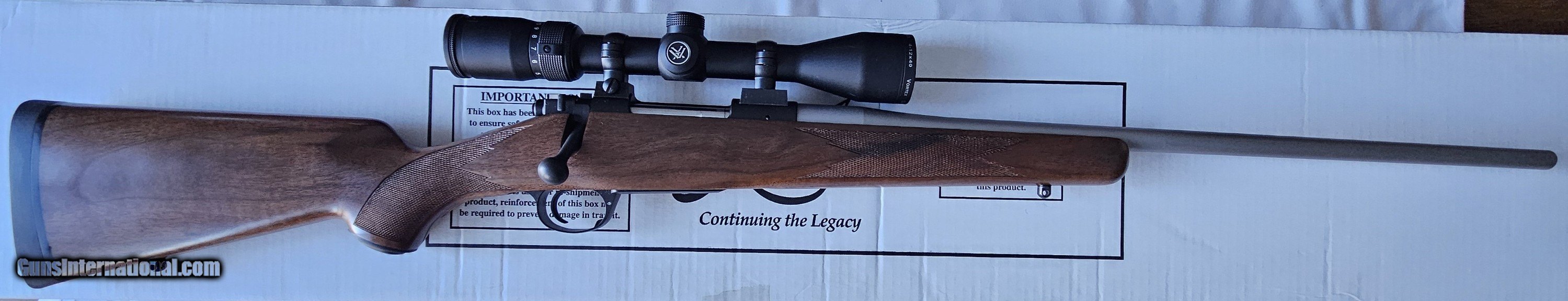 Description: Priced to sell, but open to serious offers. Kimber Model 84M Classic 6.5 Creedmoor Limited Edition (1 of 1,000 made). 22" stainless steel barrel. Original box. The condition is such that it is difficult to tell from new. Cosmetically, there is one very small handling mark near the foreend checkering on the left side. It is barely perceptible to the naked eye and is shown in an image. Fewer than 50 rounds fired. Nicely figured walnut stock. Includes the original Leupold bases and 1" rings. There is an image of an article from The Firearm Blog with additional details and highlights the release of this edition from Kimber. The as-new Vortex 4-12 x 40 Diamondback scope can be included for an additional $160.00. Shipping via UPS to your FFL is $50. SOLD Rifle Caliber: 6.5 Creedmoor Manufacturer: Kimber Model: 84M Limited Edition Barrel Length: 22 Condition: Excellent Metal Condition: Excellent Wood Condition: Excellent Bore Condition: Excellent |