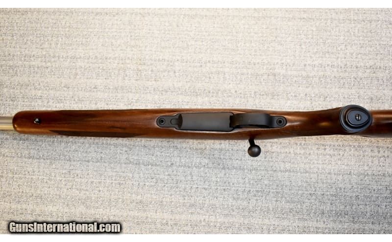 Description: This is a pre-owned Kimber model 84M Longmaster in .223 Remington with a 24-inch fluted stainless barrel .223 Remington SOLD Metal Condition: Very good with a few small scratches and rub marks Wood Condition: Very good with a few small scratches and a small dent by the floor plate Bore Condition: Clean with good lands Barrels: 24" fluted stainless Stock Dimensions: 13 3/4" LOP Fore End: Checkered high grade walnut Butt Pad: Kimber pad Weight: 7 Lbs. 6 Oz. Sights: Two-piece bases installed Item Location: Glendale, AZ |