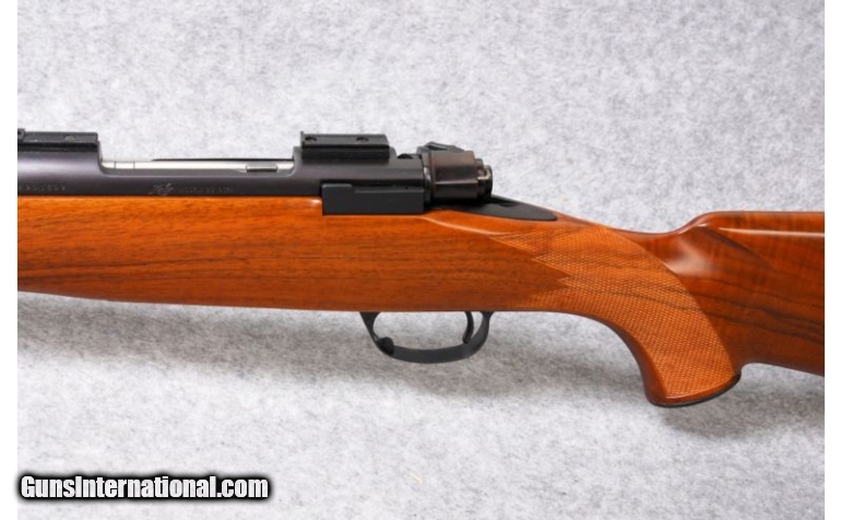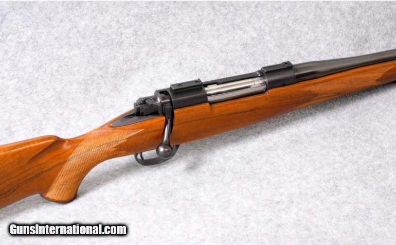 Description: SOLD Caliber Info: .300 H&H magnum. Metal Condition: Blued receiver, claw extractor, 3-position right-hand safety, and left-hand bolt release. Wood Condition: Excellent. Bore Condition: Excellent. Barrels: 24" round barrel with no sights. Triggers: Smooth surface. Stock: Light color walnut with a checkered pistol grip, black grip cap, and sling stud. Stock Dimensions: LOP: 13 1/2". Fore End: Checkered fore end with a black fore end cap and sling stud. Butt Pad: 3/4" rubber recoil pad. Sights: Receiver mounted with a 3/8" dove tail. Item Location: Kansas City, KS |