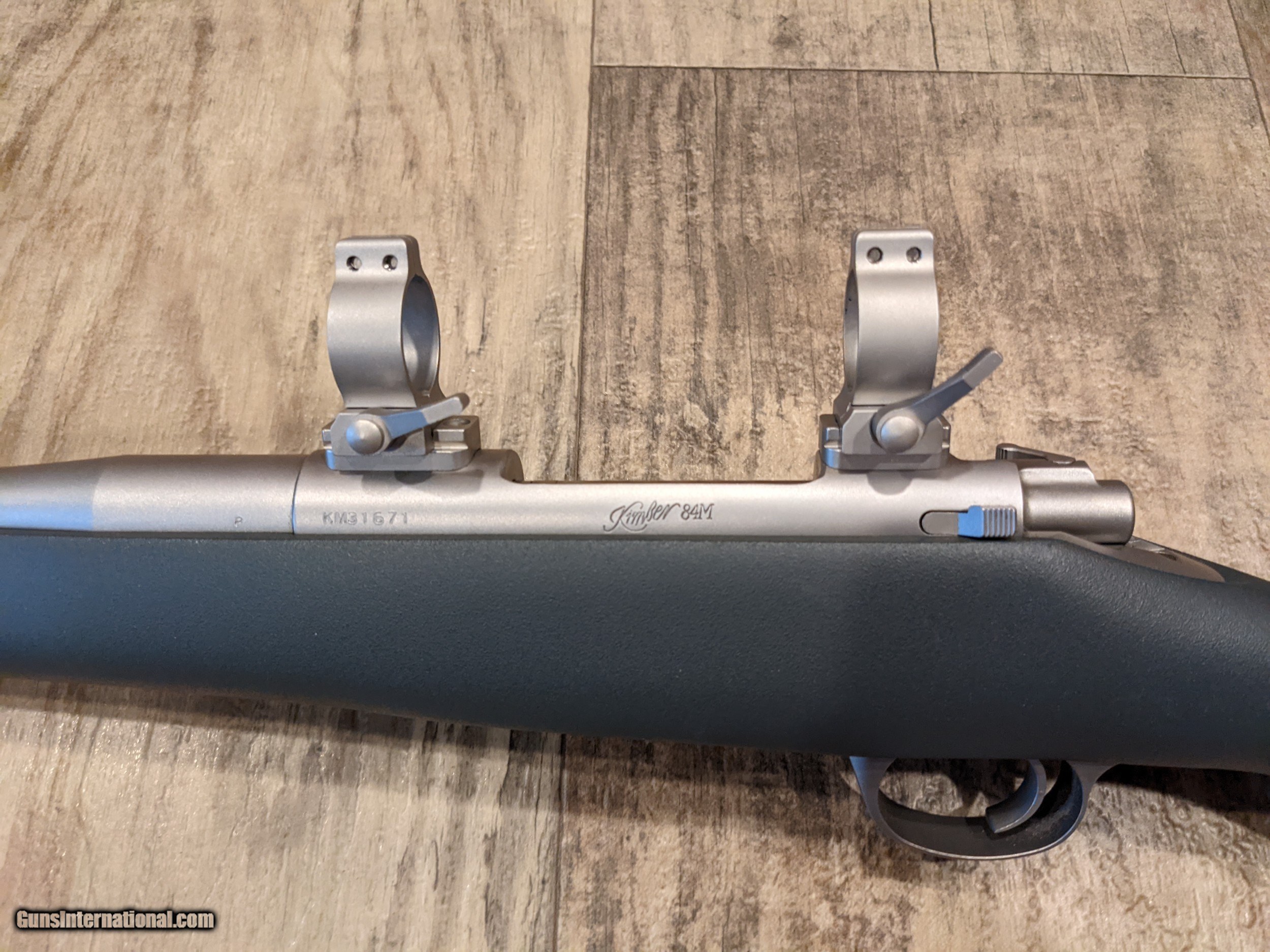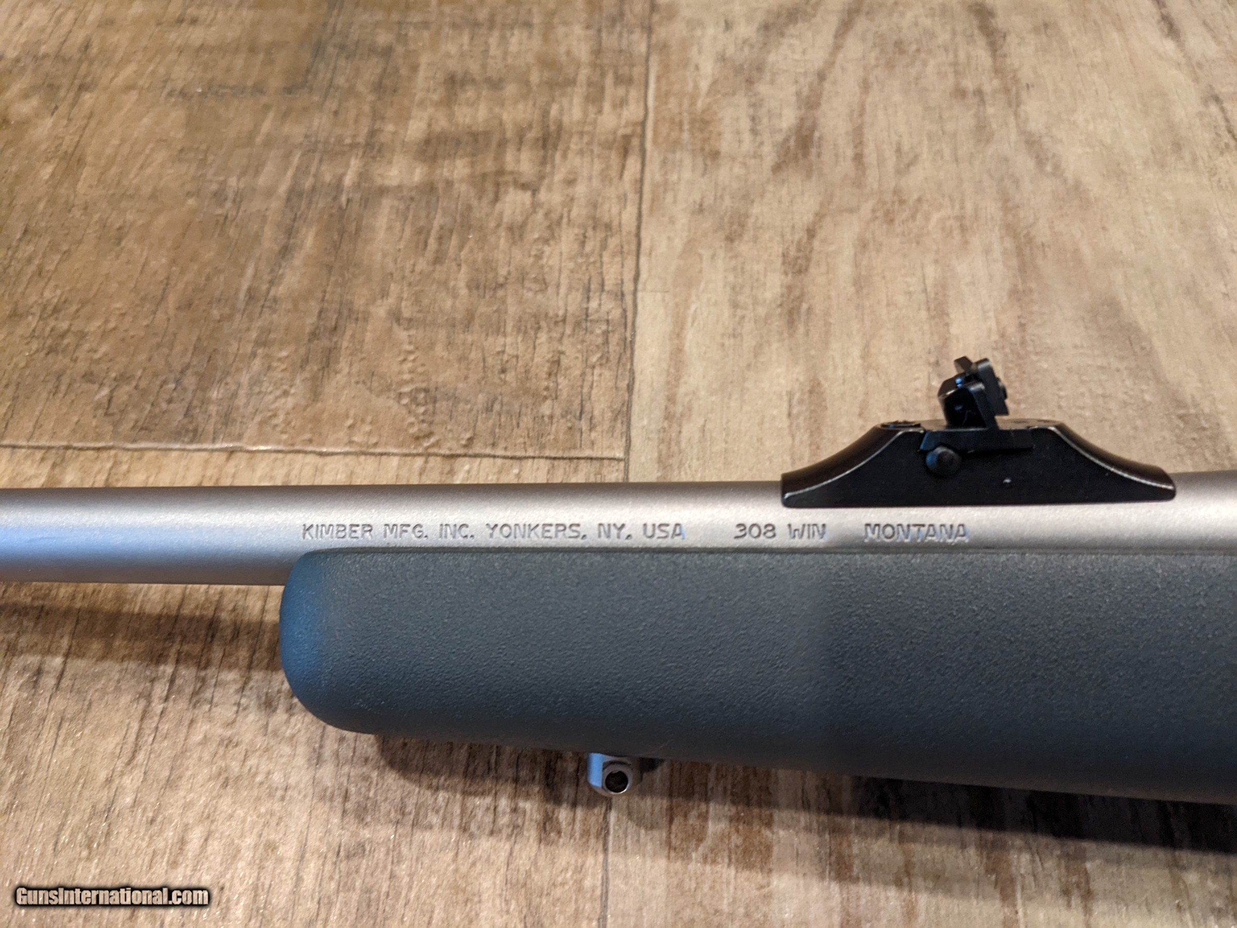 Description: Rare Kimber Montana .308 with custom installed iron sights. Comes with Talley Stainless QD mounts and rings. Weight is slightyl over 5 1/2 lbs with rings. Controlled round feed, carbon fiber stock, pillar bedded, this is an outstanding rifle in excellent condition. I am second owner and previous owner only sighted it in. I have not fired it. From Kimber: SPECIFICATIONS