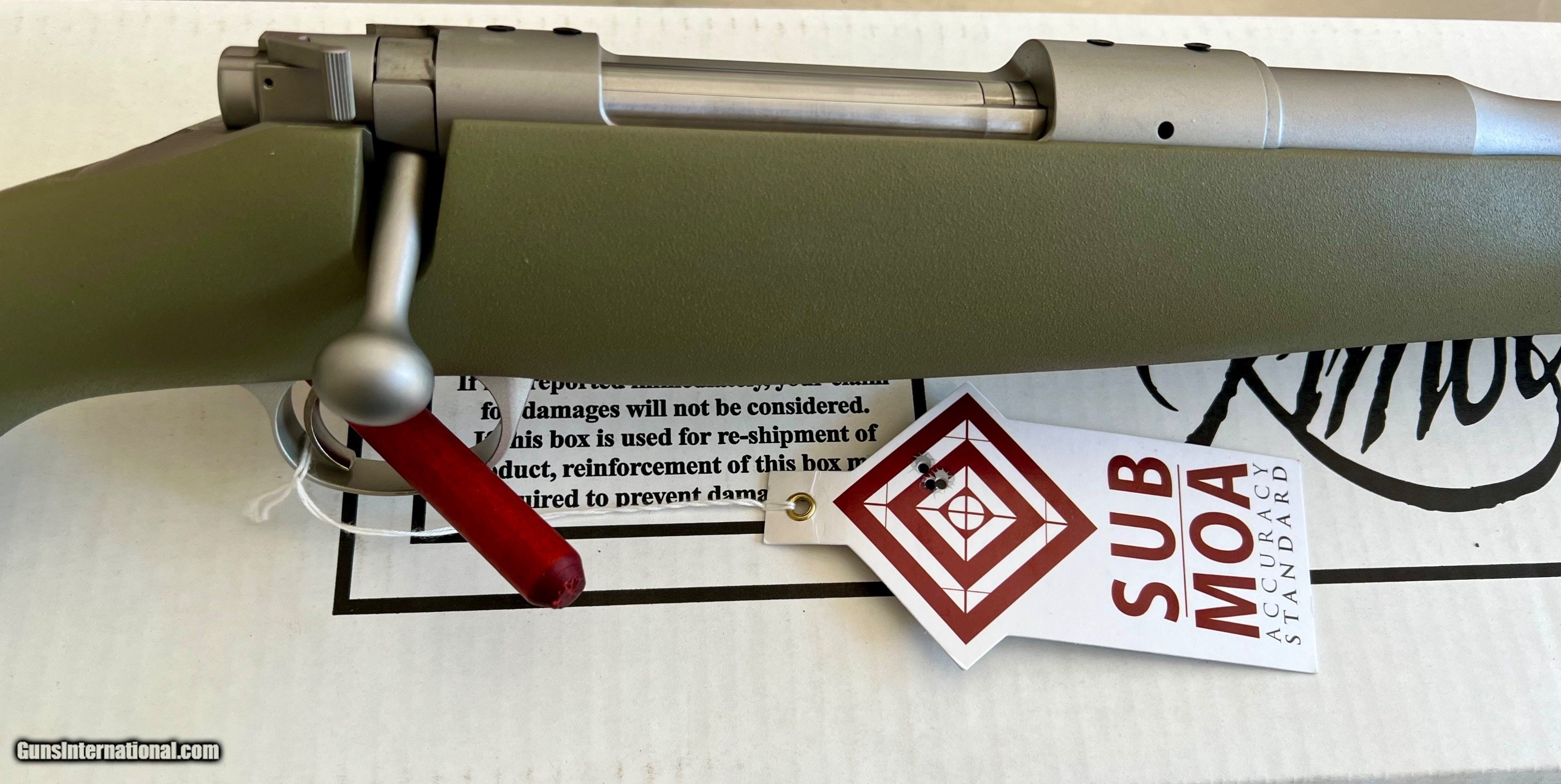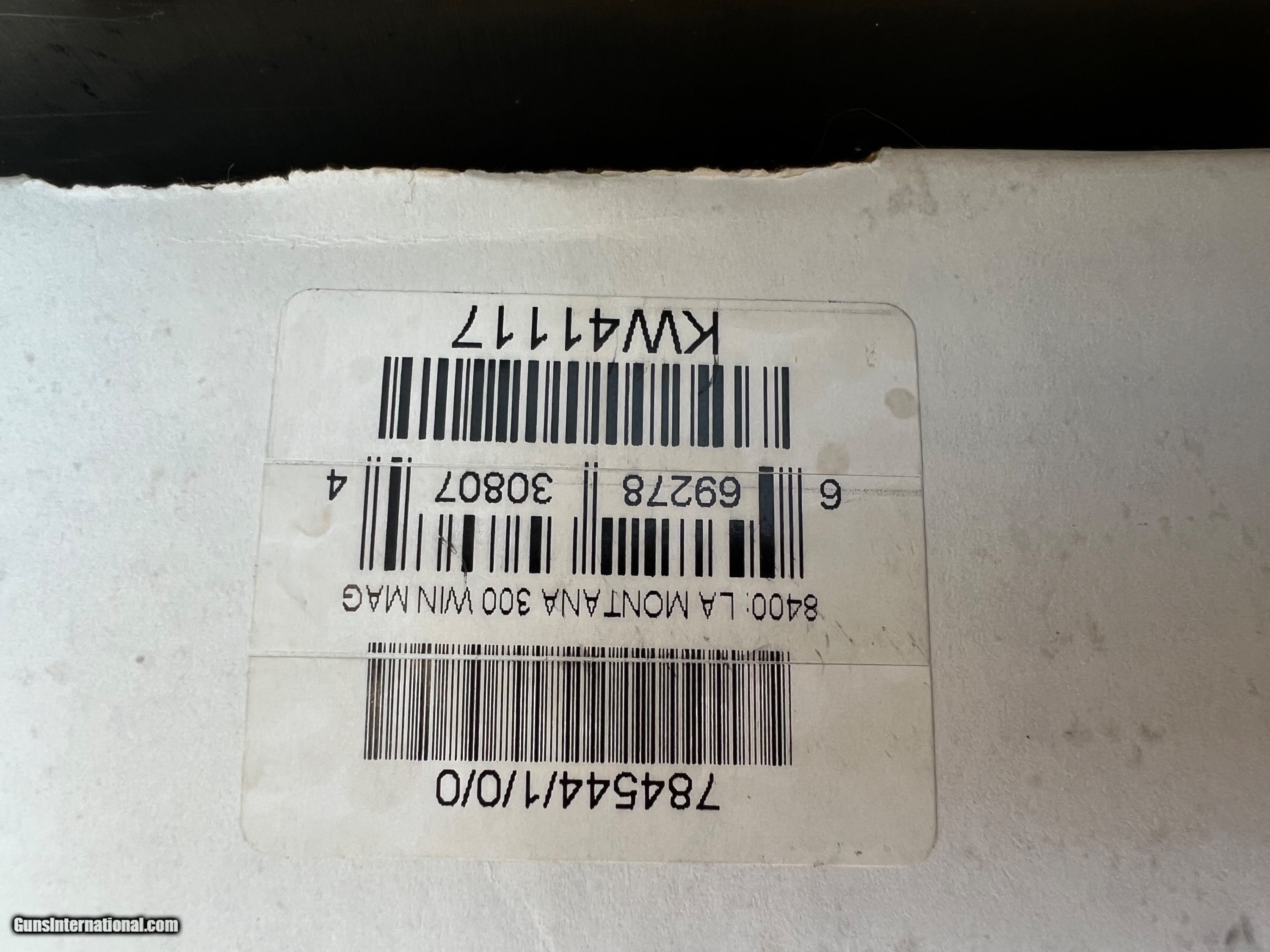 Description: Absolutely brand new and unfired Kimber Montana 84L with Moss Green Synthetic stock, .300 Winchester Magnum, with box and papers. Factory MOA guarantee, controlled round pre-64 Style Winchester Model 70 action, threaded muzzle with thread cover. Stainless Steel, all weather, do almost anything, hunting rifle. $45 to ship via FedEx, packed carefully inside another box, to your FFL. I also have some scope mounts available. This rifle was purchased and I then realized I had two other .300 Win Mags.....just not enough time to scope up and use. NO other fees and NO sales tax. Thanks for your interest. SOLD Rifle Caliber: .300 Winchester Magnum Manufacturer: Kimber Model: Montana Barrel Length: 26 Condition: New |