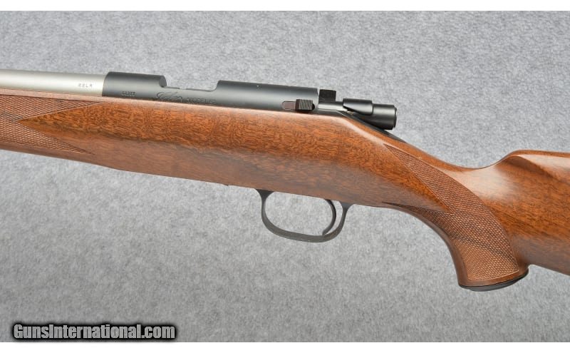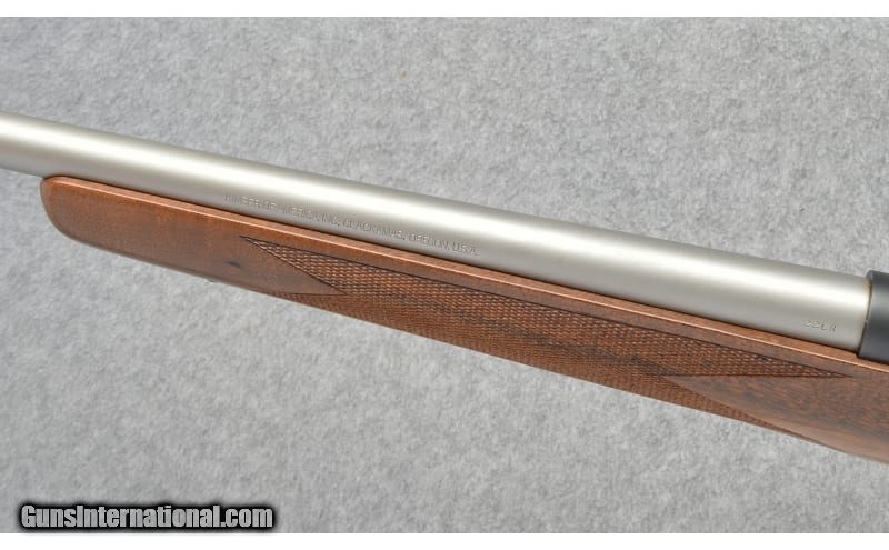Description: Extremely high condition Clackamas production rifle shows only a couple small scratches. Includes factory box, manual, mag, bases and rings. .22 Long Rifle SOLD Metal Condition: Satin Stainless Wood Condition: Checkered Walnut Bore Condition: Bright Sharp Barrels: 22 Inch Stock Dimensions: 13 5/8" LOP Butt Pad: Rubber Recoil Pad Weight: 6 Lbs 8 Oz. Sights: No Sights Item Location: Buda, TX |