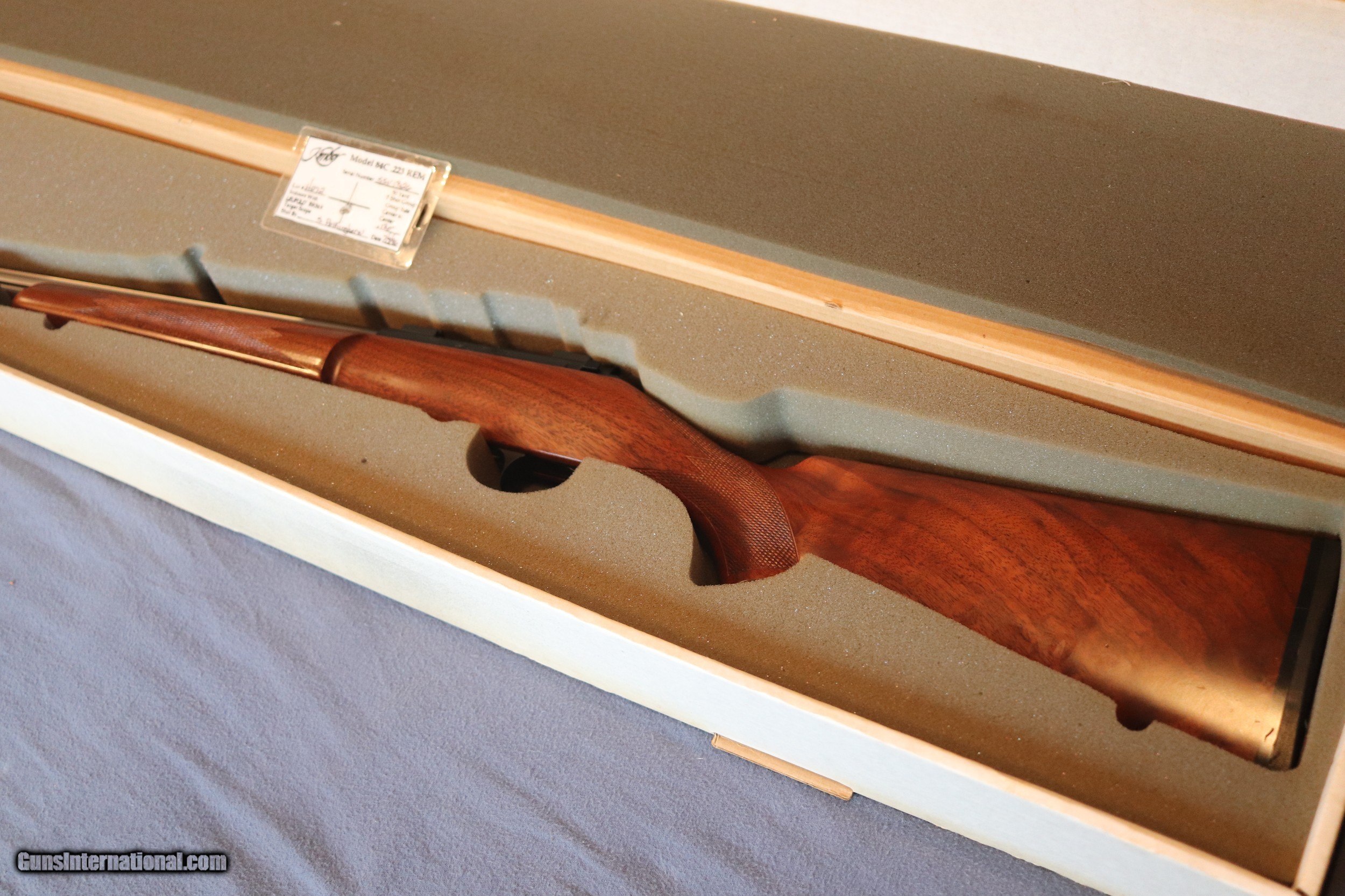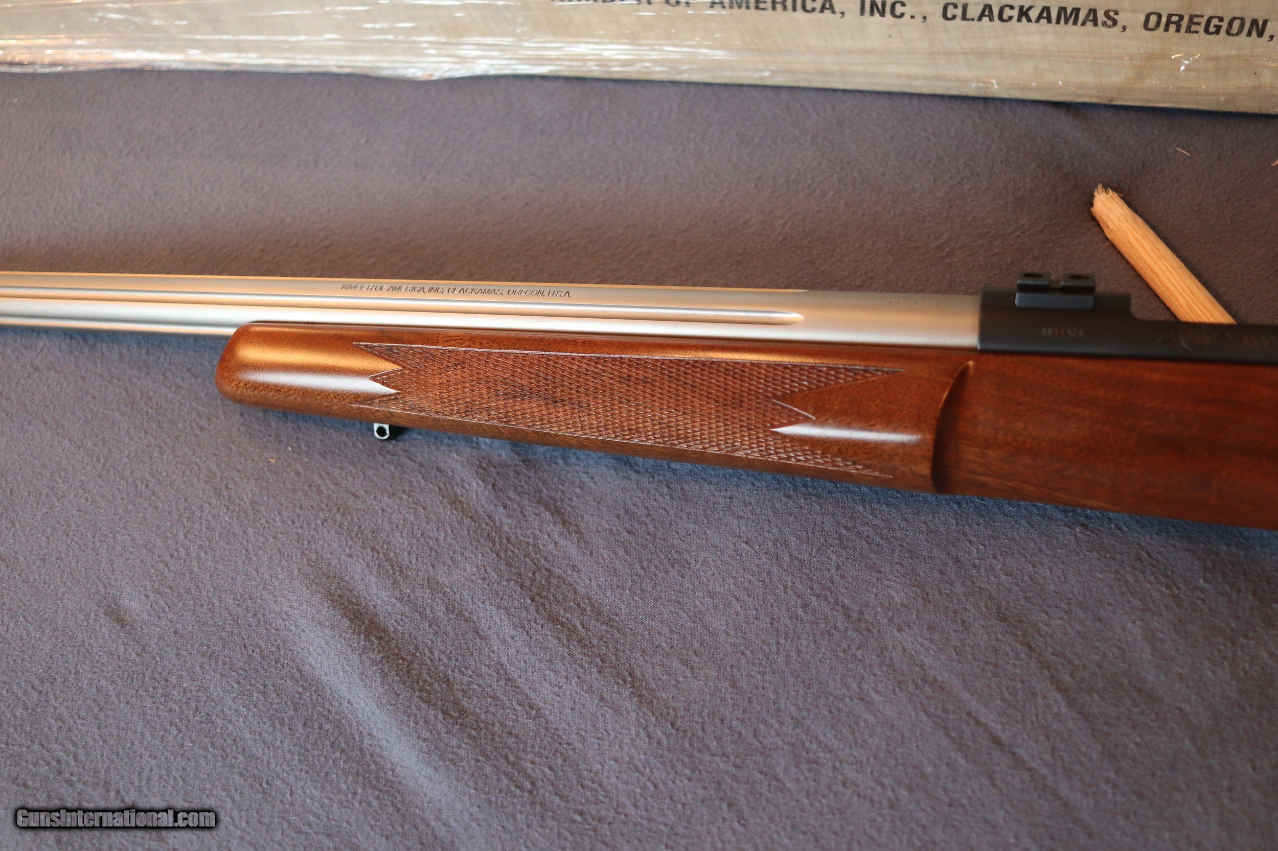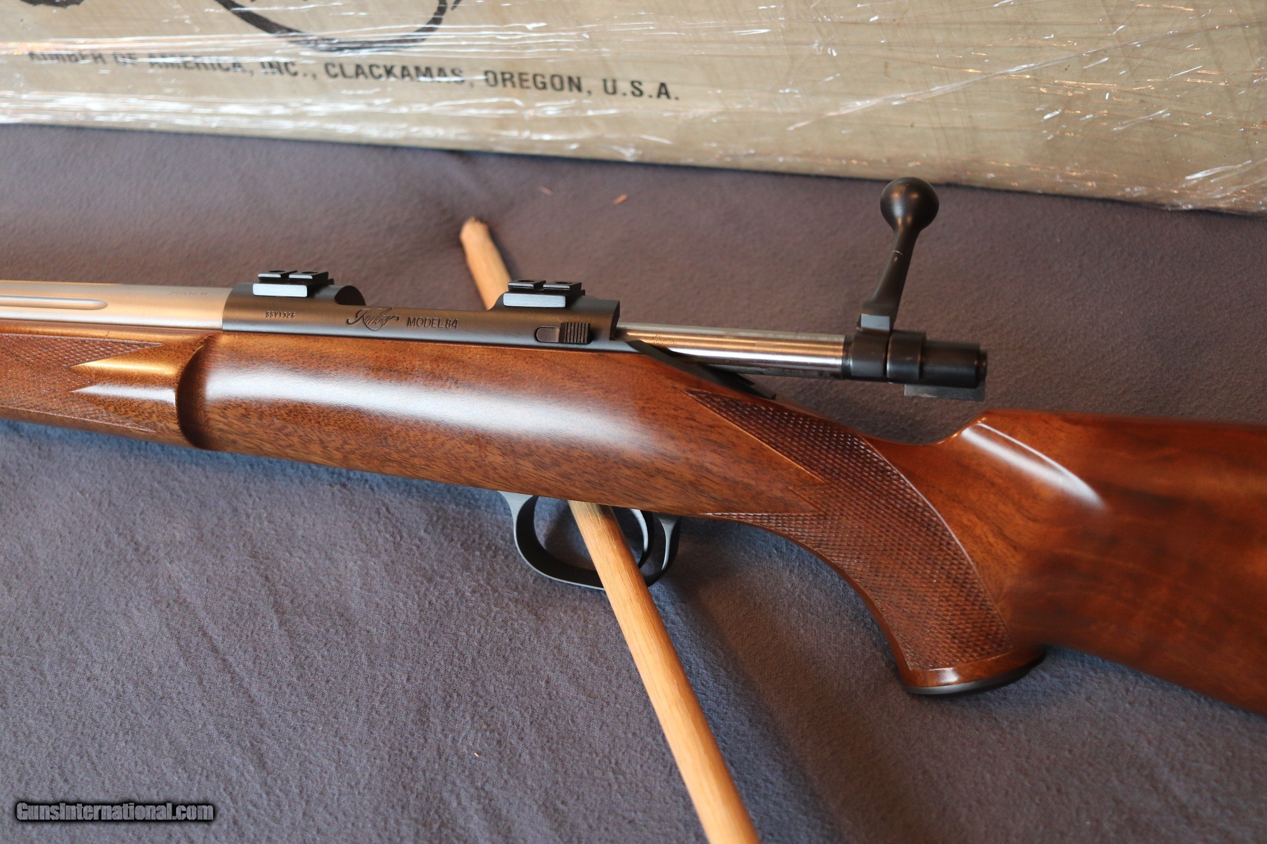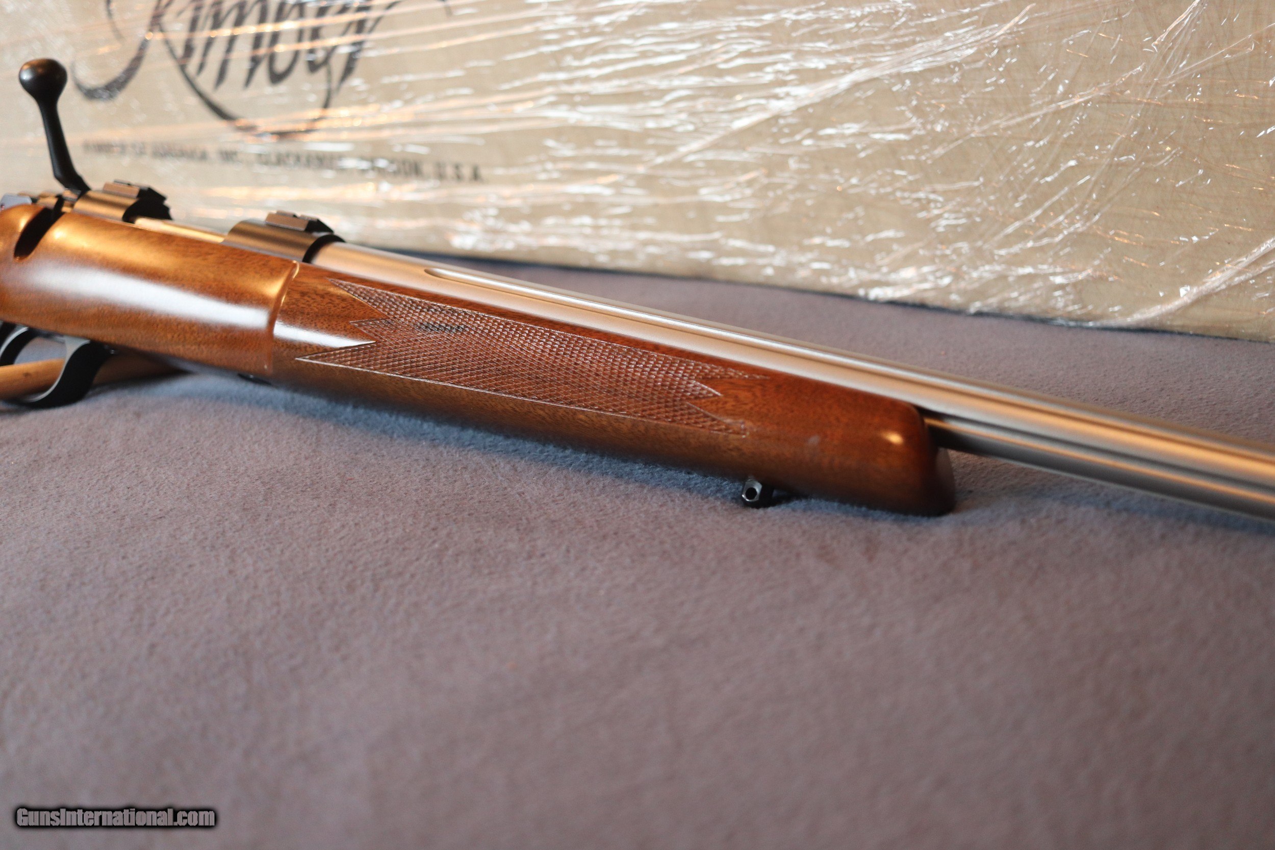 Description: SOLD This Kimber of America (Successor to KoO) is chambered in the .223 Remington, equipped with a stainless, fluted barrel, and unique beaver-tail type forend. Everything is factory stock including the correct box with end label and internal packaging. Looks like the bolt channel has had a repair- see pictures. Ships from a non-ffl to your FFL for $40 insured. Three-day inspection period offered with buyer paying 10% for handling fees and return shipping. From a private collection. SOLD Manufacturer: Kimber of America Model: 84C |