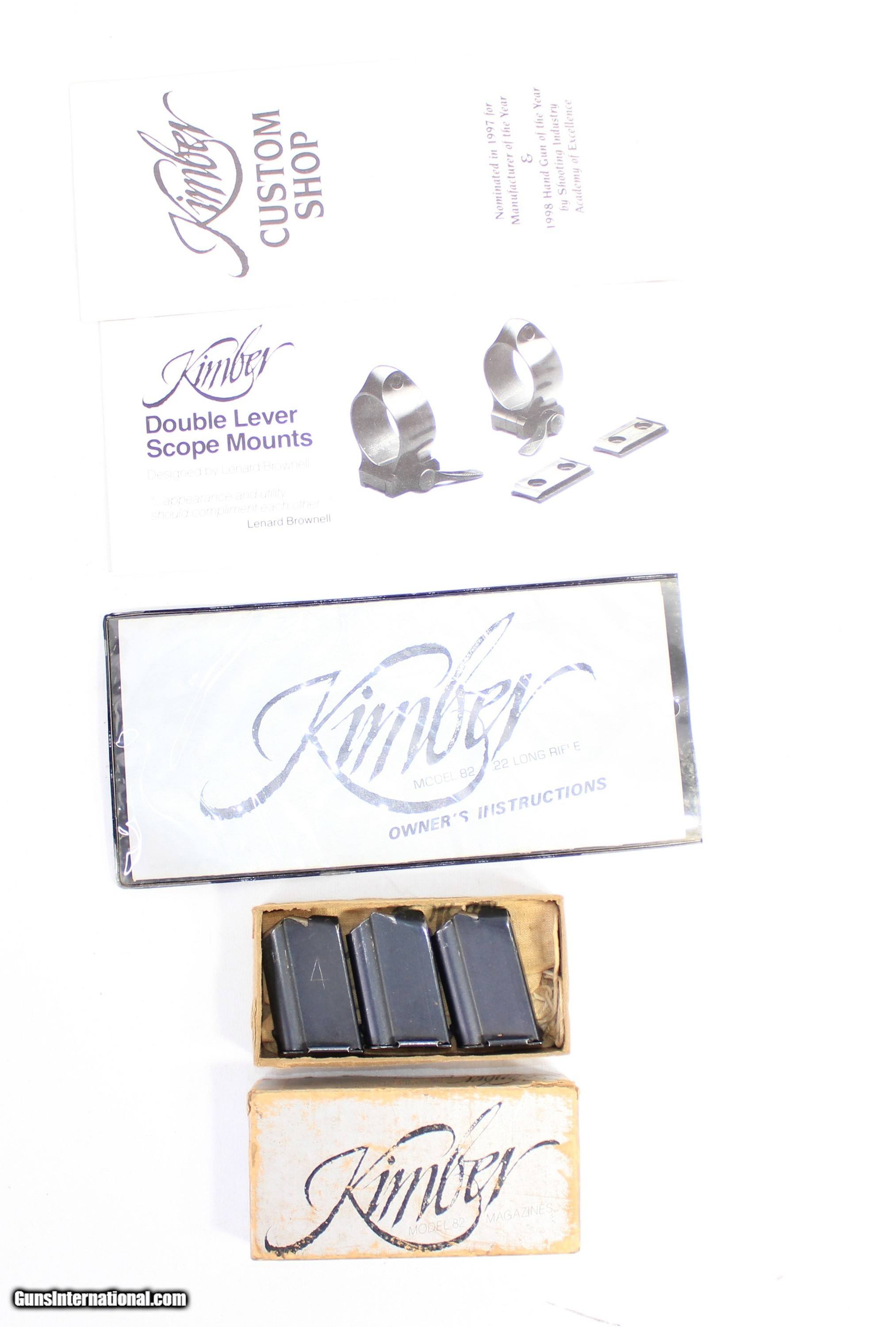 WITH EVERY PURCHASE THERE WILL BE NO CREDIT CARD FEES OR SHIPPING COSTS APPLIED IF YOU SELECT BUY NOW AND DO NOT RESPOND WITHIN 24 HOURS, THE ITEM WILL BE RELISTED SOLD Rifle Caliber: .22 Long Rifle Manufacturer: KIMBER OF OREGON Model: 82 Serial Number: 4599 Barrel Length: 22 Condition: EXCELLENT |