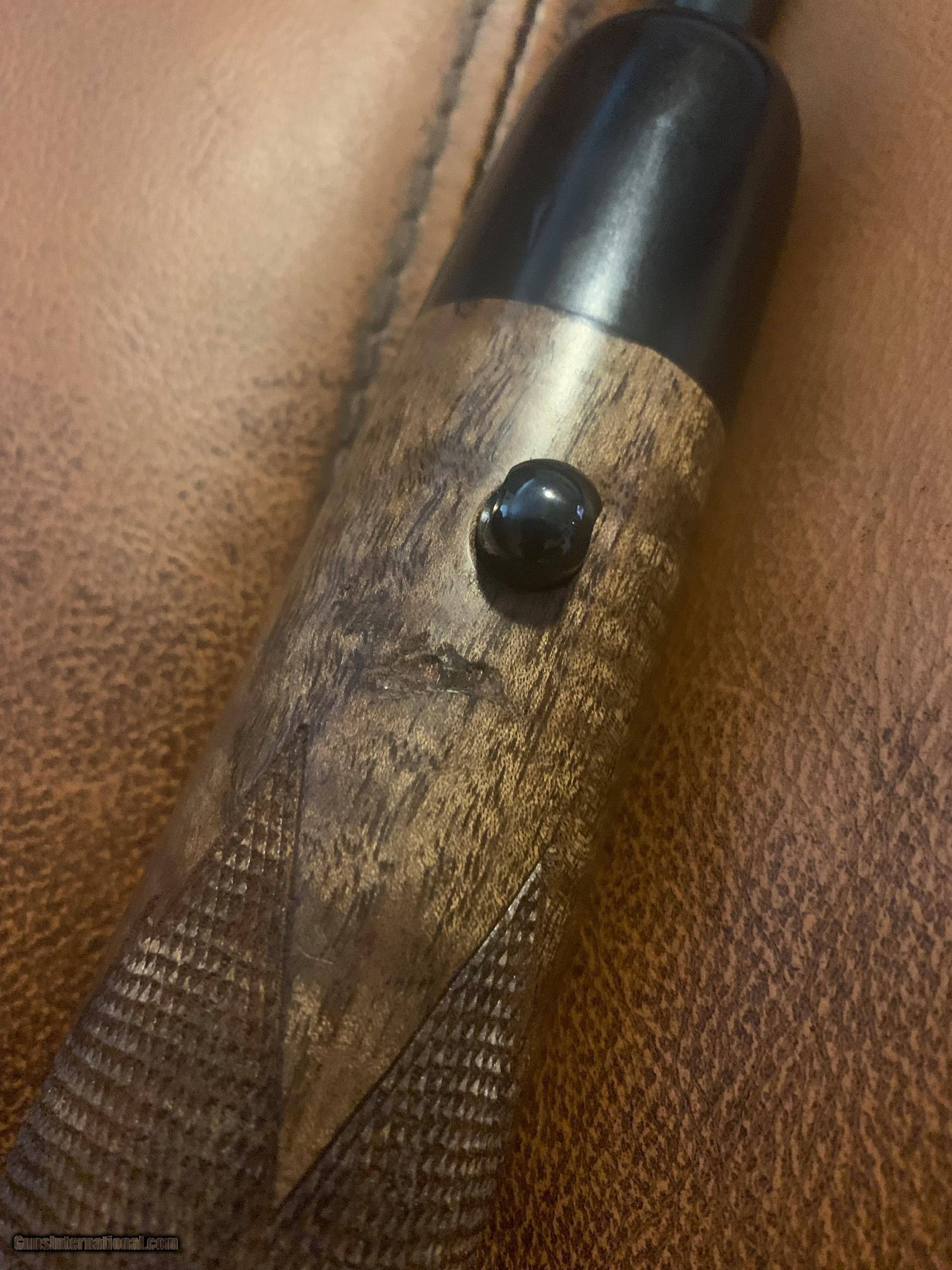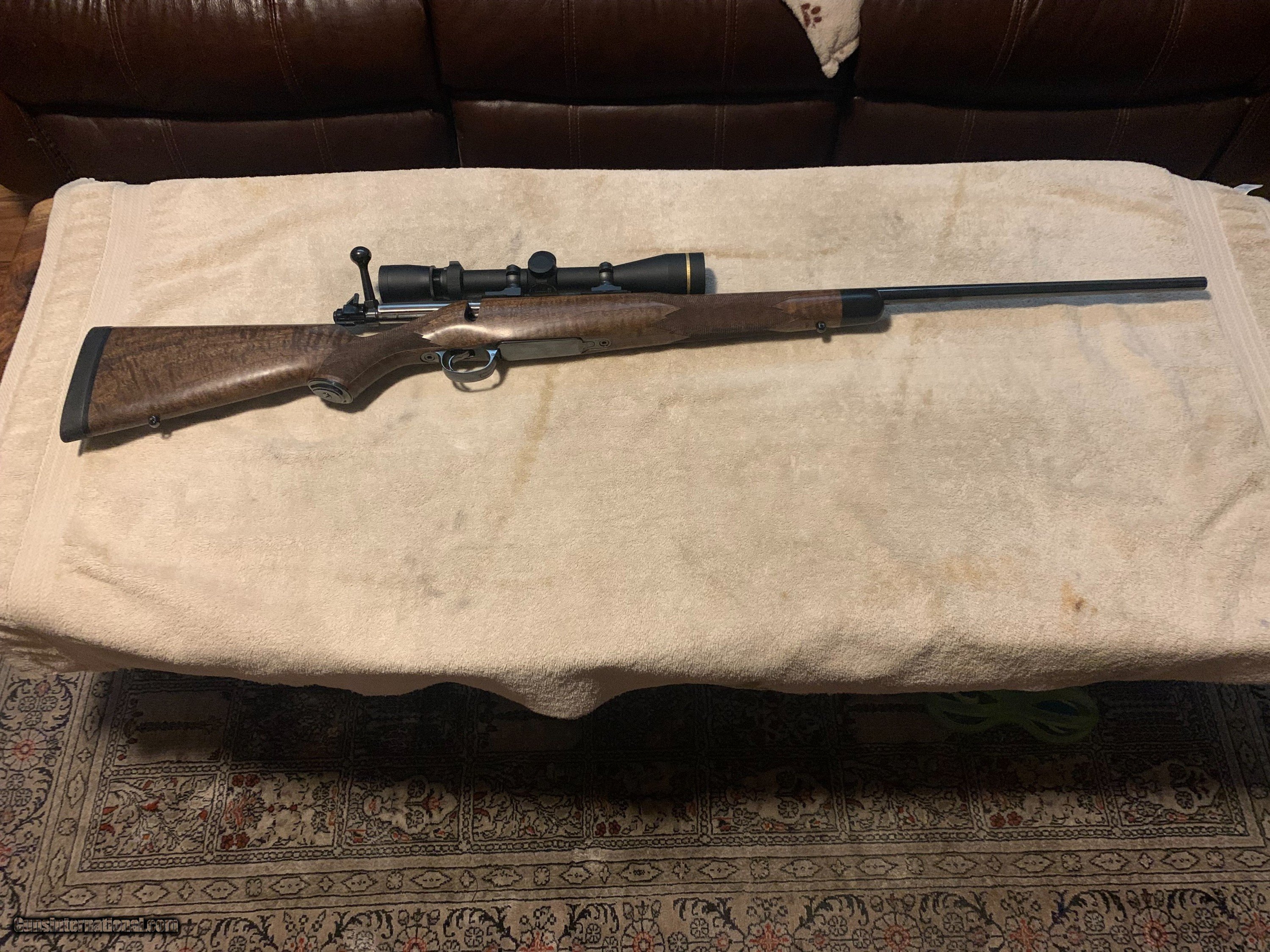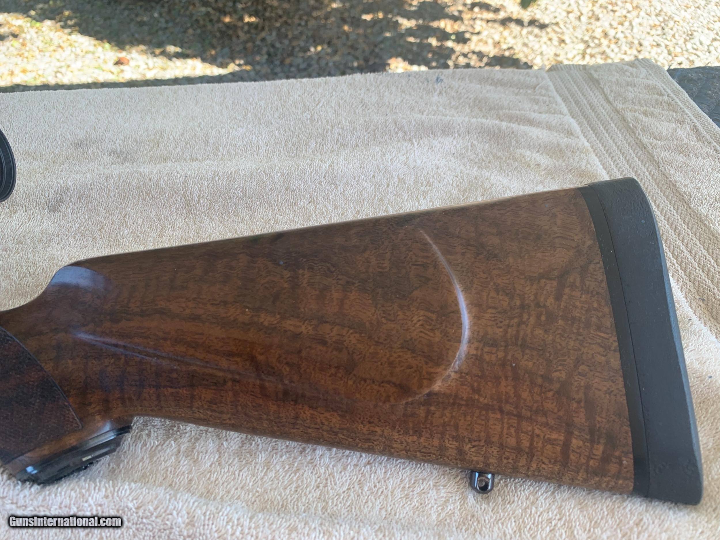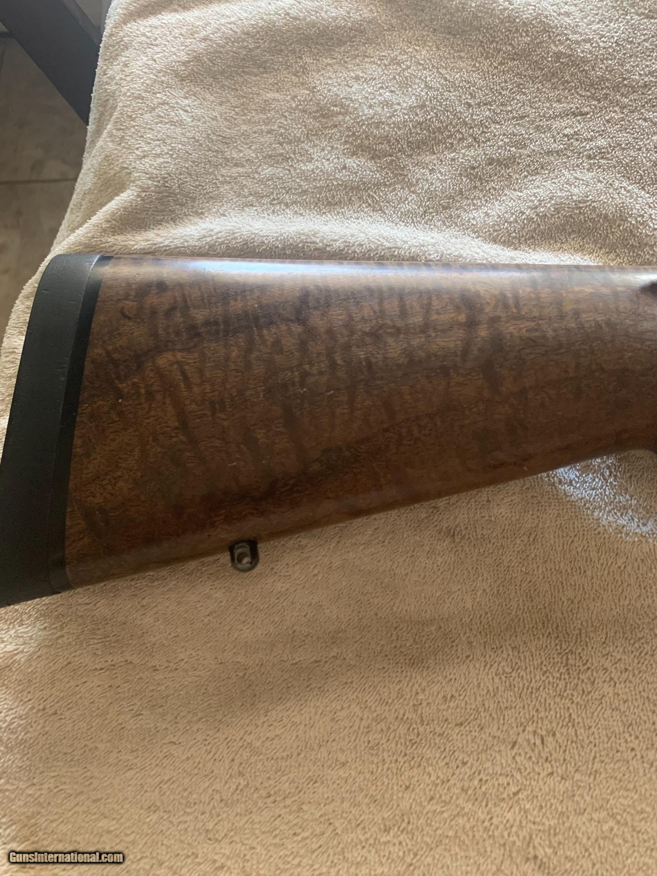 Description: A Kimber super America 8400 300WSM manufactered date 05/12/2006 with oil finished class 3 dark walnut stock with very nice checking, the stock has a few light handling marks with a small gouge below the front sling mount, The barrel and other metal is high gloss finished with no marks or wear it has a factory recoil pad. there is a Leupold VX-3i 4.5-14 x40 CDS scope with leupold rings and bases mounted that comes with the gun. The Digital turrent has not been added so you can get one from Leupold to fit your needs for free if you haven't done so yet. shipping/insurance 100.00 lower 48 states SOLD Rifle Caliber: .300 Winchester Short Magnum Manufacturer: Kimber Model: Super America 300WSM Barrel Length: 24 Condition: Excellent Metal Condition: Excellent Wood Condition: very good Bore Condition: Excellent LOP: 14 Finish: oil Weight: 7.0 Sights: scoped Manufacture Date: 5/12/2006 |