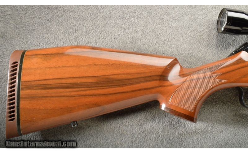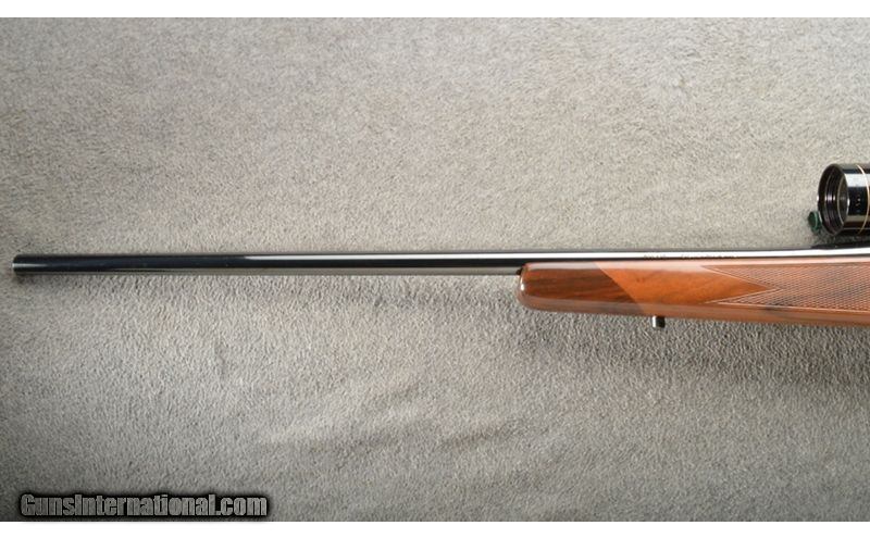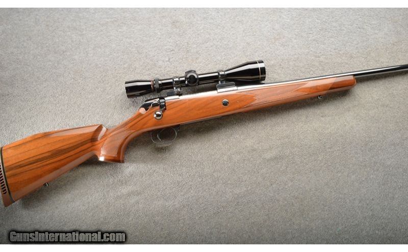 Description: Kleinguenther rifles are known to have the fastest lock time of any production rifle. This is a fine looking hunting rifle with very nice blue and a nice looking walnut stock. The rifle is topped with a Leupold Vari-X II 3-9X 40 rifle scope. All in all a very nice package but does have lite surface rust on barrel. .257 Weatherby Magnum SOLD Chambers: 1 Metal Condition: Minor surface rust on barrel. Wood Condition: Minor handling marks. Barrels: 1 Triggers: 1 Stock Dimensions: 13 7/8 LOP Fore End: Checkered walnut with a rosewood tip. Butt Pad: Vented decelerator. Weight: 9.5 lbs Sights: LEUPOLD 3×9×40 VARI-X 11. Item Location: Owatonna, MN |