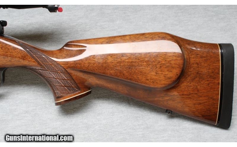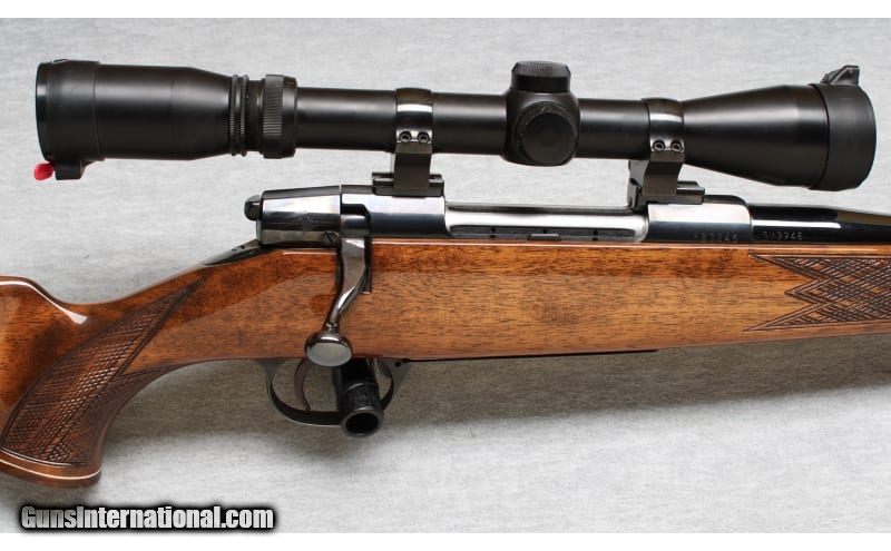 Description: Excellent condition, light finish wear, few small metal scratches and very light dings in the wood. Superb bolt action rifle with 24" barrel, ultra slick action, crisp trigger pull and high gloss wood finish. Right hand cheek rest, sling swivel attachments and Burris 3-9x scope installed. .243 Winchester SOLD Chambers: Bolt action Metal Condition: Excellent Wood Condition: Excellent Bore Condition: Bright Barrels: 24 Triggers: Factory Stock Dimensions: 14" LOP Fore End: Checkered with contrasting tip Butt Pad: RPC pad Sights: Burris 3-9x scope Item Location: La Vista, NE |