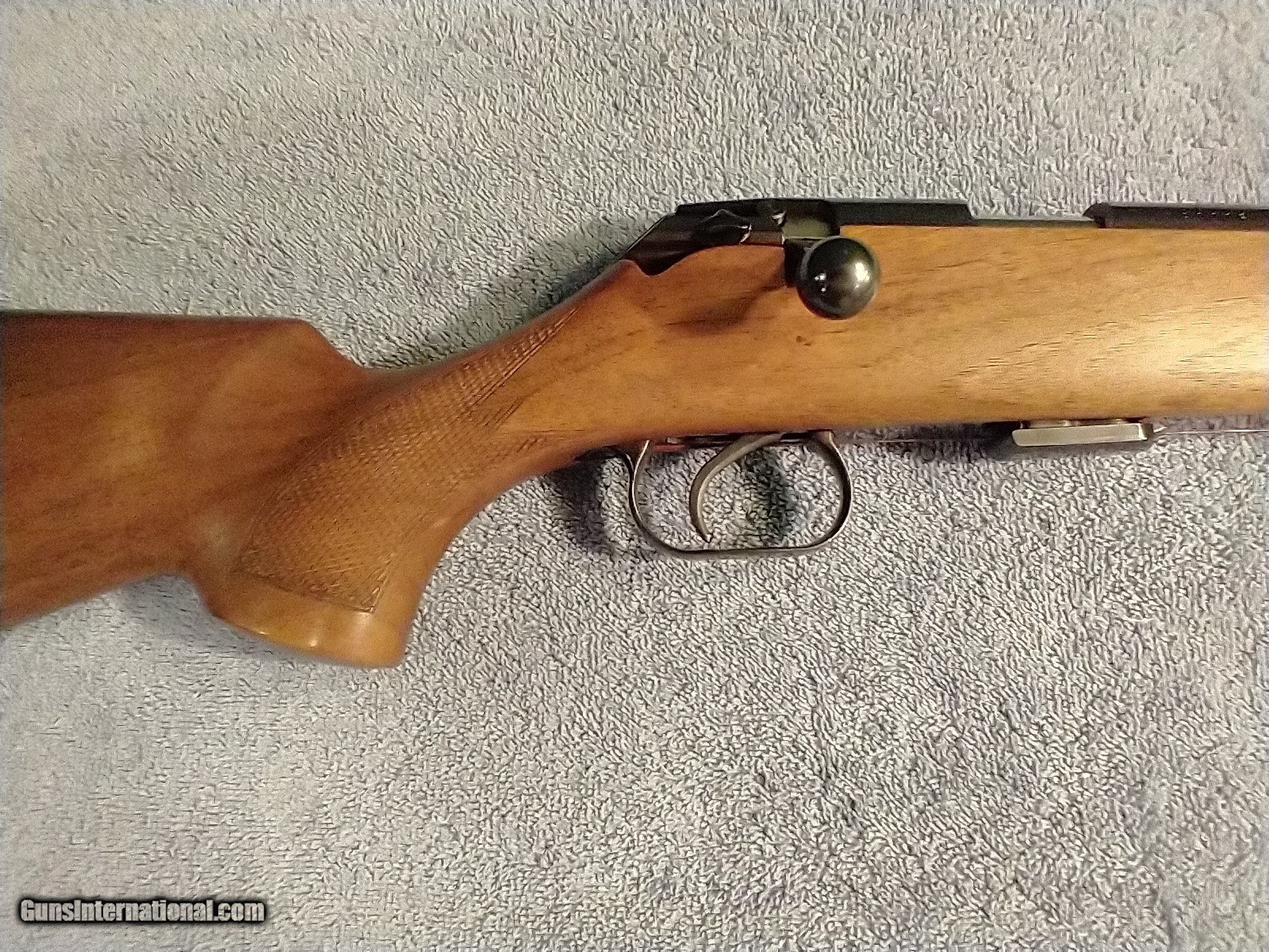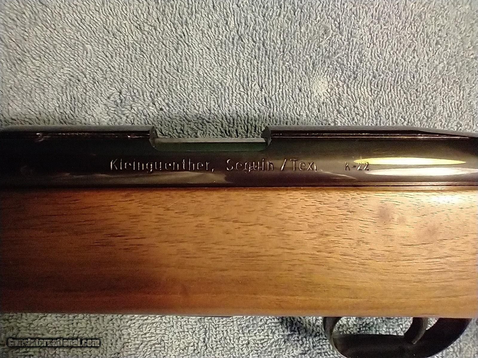 Description: Exceptional rifle. I have owned since 2012 and purchased it from second owner. Average group size when sighting in was .5" at fifty yards and 1.1" at 100. The rifle was shot in one forty round silhouette match and was put back in the safe. Unfired the last eight years and now I'm too old to hold steady so it's time to let go of some of my collection. Very accurate sporter with Eley Tenex. That was all I shot through it. Previous owner bought it as an investment. The rifle shows very little use and it was sold new in 1988. I have priced the rifle based on what it is worth to me and pricing found around the internet. Comes with copy of instruction manual, original sales receipt. Price includes shipping to lower 48. Payment via USPS money order or cashier check. I no longer have a Paypal account because of their anti 2nd Amendment stance. Shipped FFL to FFL. SOLD Rifle Caliber: .22 Long Rifle Manufacturer: Kleinguenther Model: K-22 Serial Number: 9002xx Condition: Excellent Metal Condition: Excellent Wood Condition: Excellent Bore Condition: Excellent |