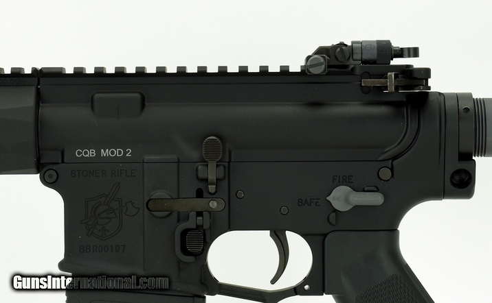 Knights Armament SR15 SBR 5.56 caliber rifle. Knights Armament SR-15 CQB Model 2 in 5.56 mm. Comes with 11.5” barrel, Ambidextrous lower receiver, LMT SOP MOD stock and Knights front and rear sights. All NFA rules apply.