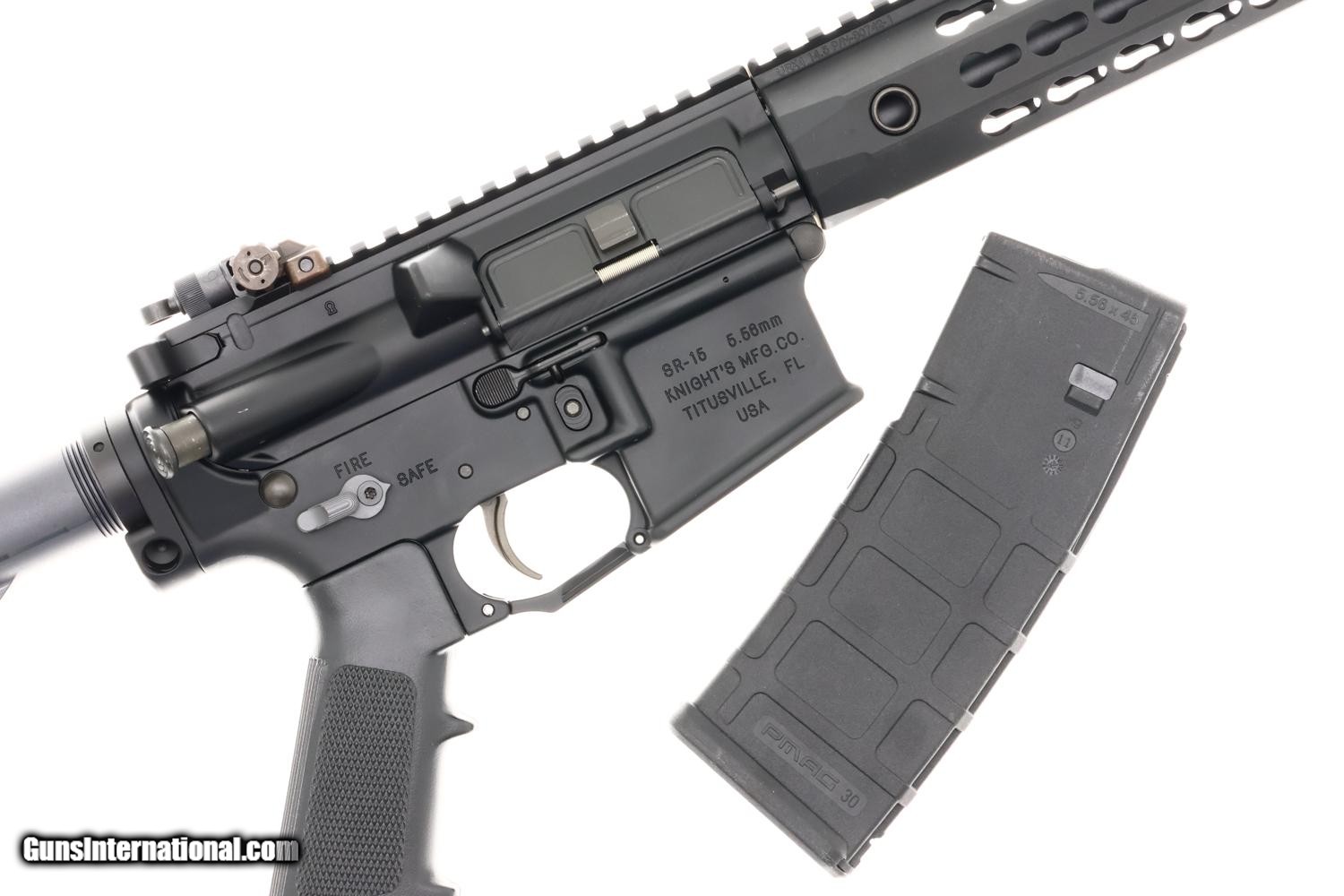 Near new Knights Armament SR-15 (LRP Mod 2) semi-auto rifle chambered in 5.56x45mm with PMAG 30 round capacity magazine in original Knights Armament black hard case.