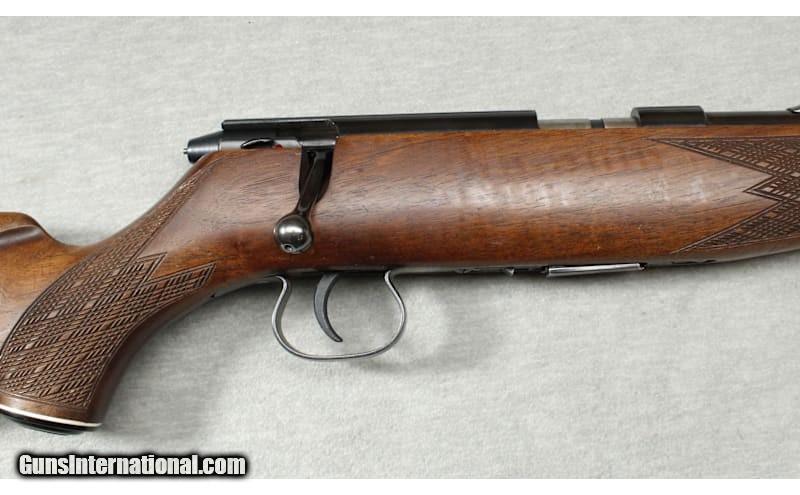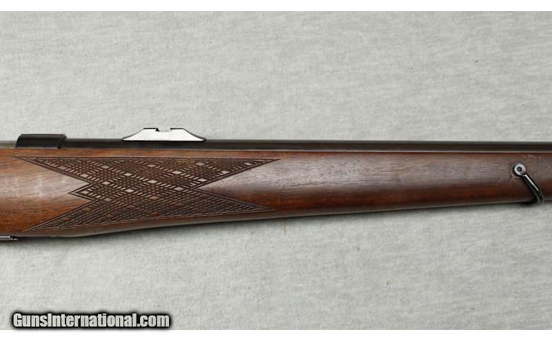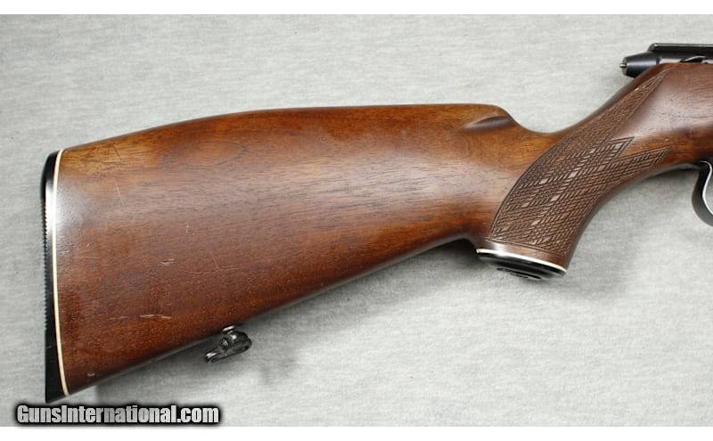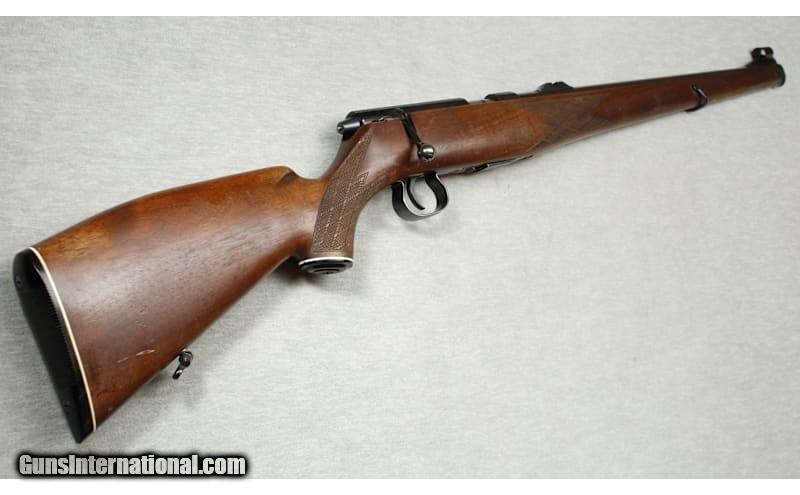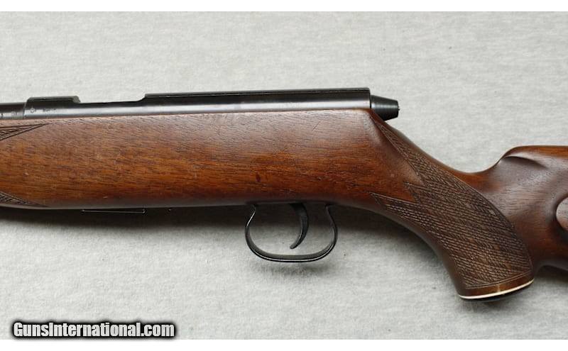 Description: Excellent condition, light wear, small scratches and nicks, comes with one mag. Bolt action rimfire magnum rifle, blued metal, 19 1/2" barrel, hooded front sight (no rear sight) & receiver grooved for scope mounting. Natural finish checkered wood stock with decorative grip cap & RH cheek rest, Krico butt plate and sling swivels. .22 WMR SOLD Item Location: La Vista, NE |