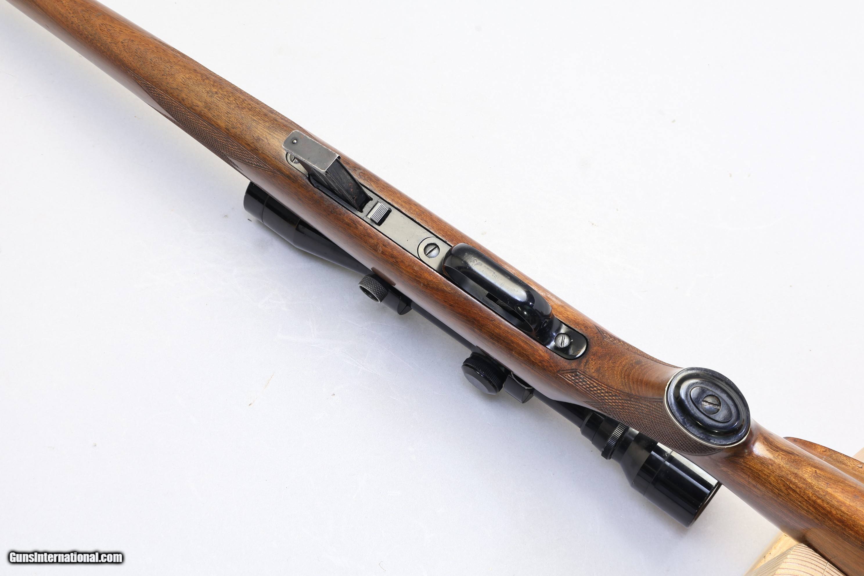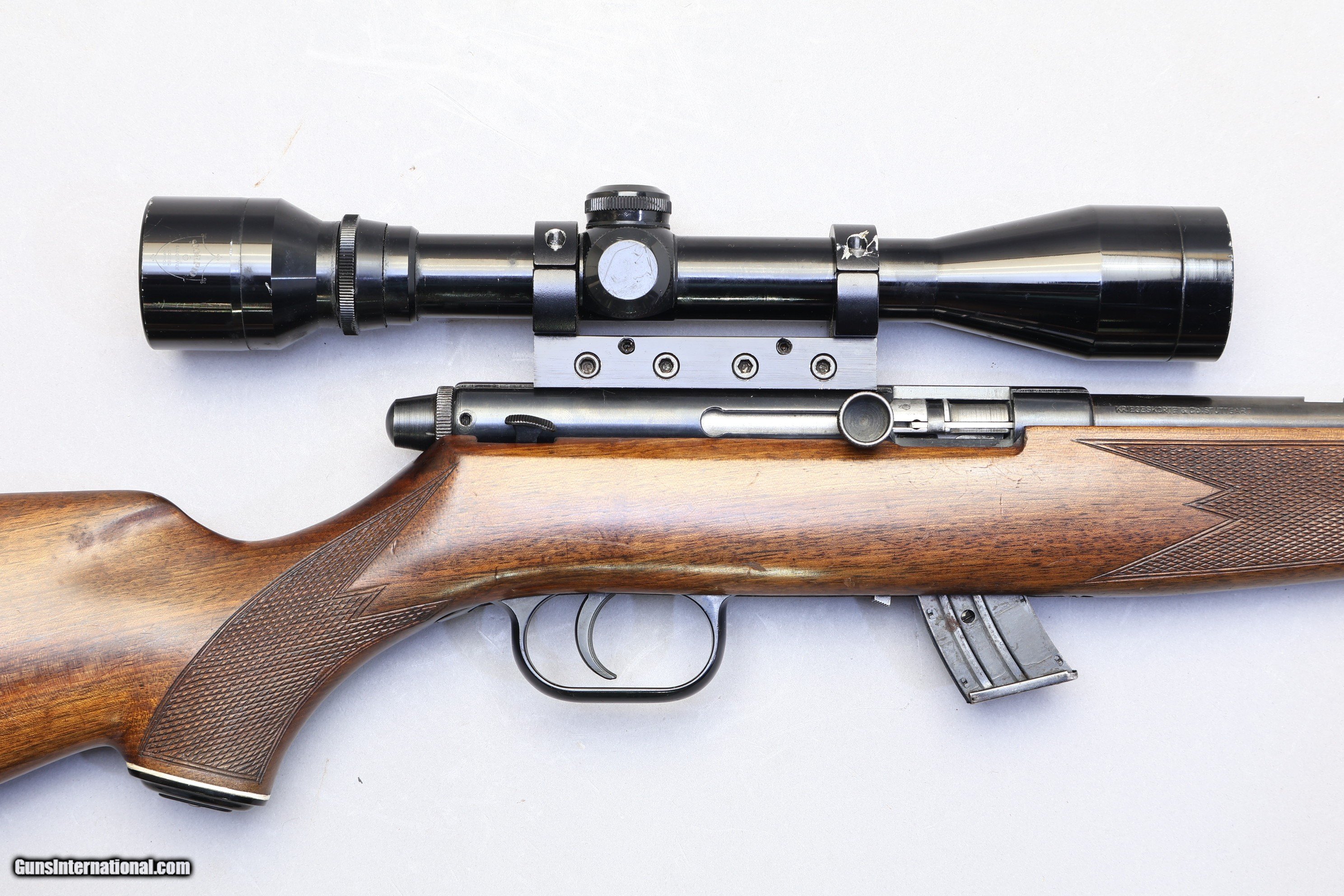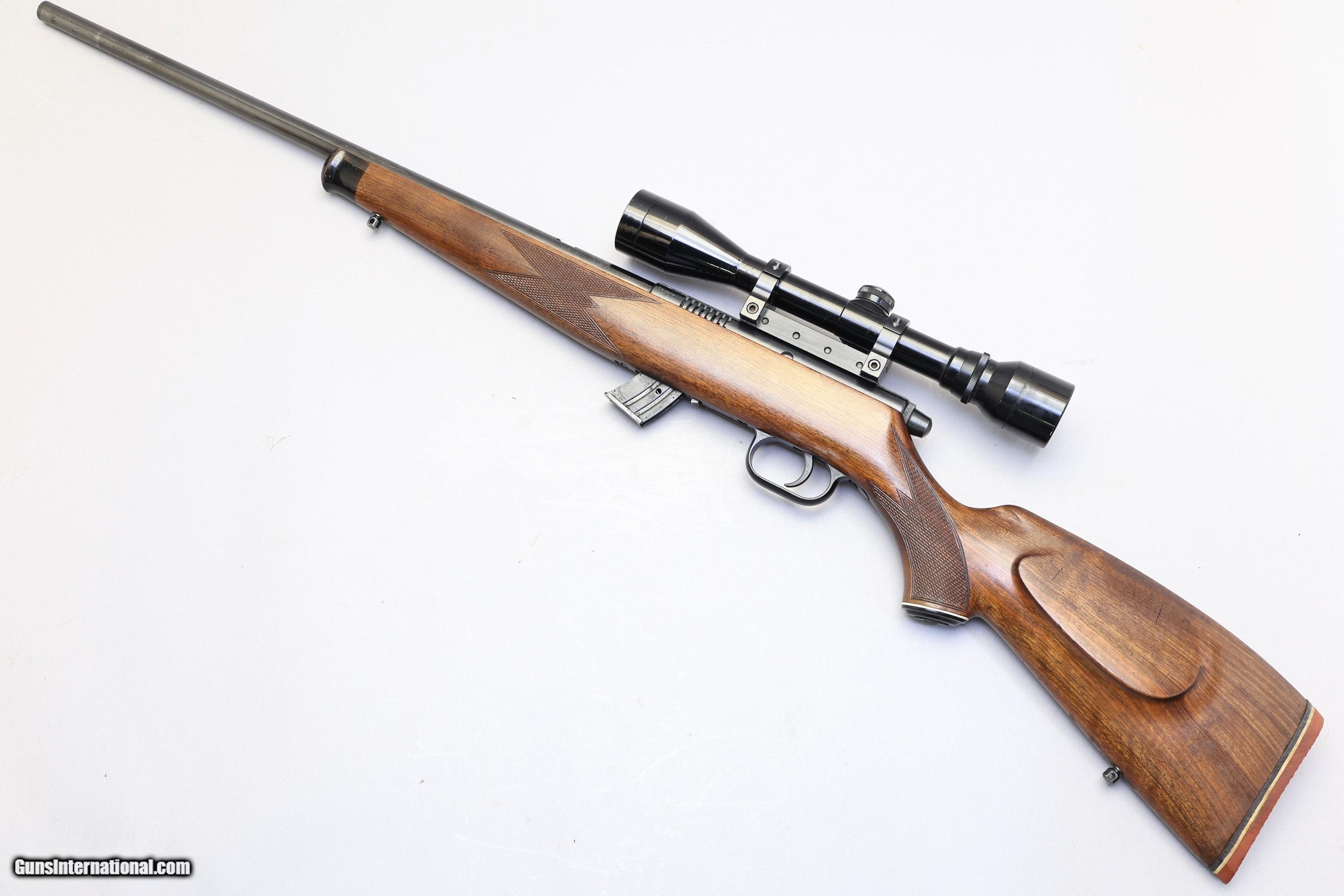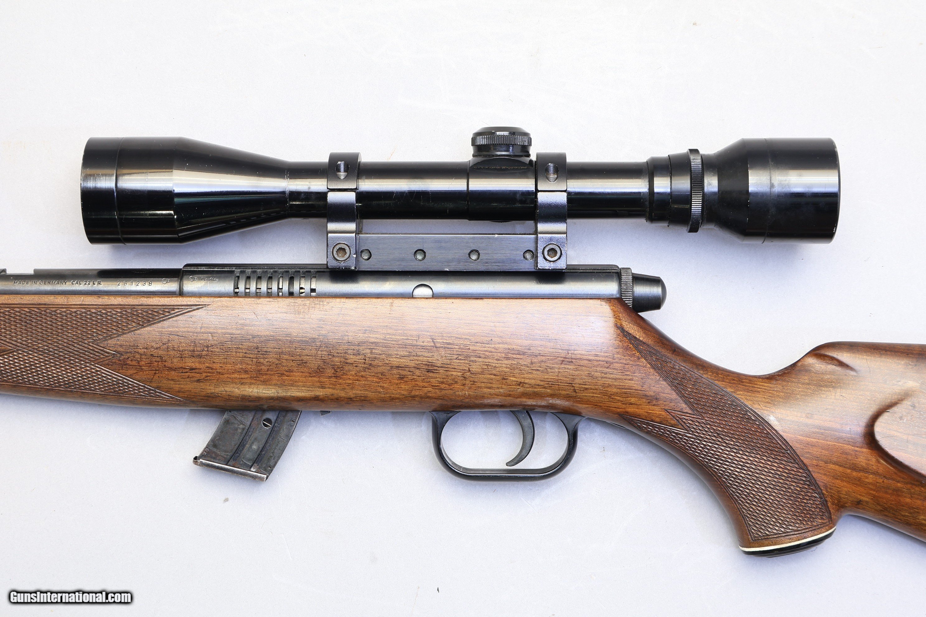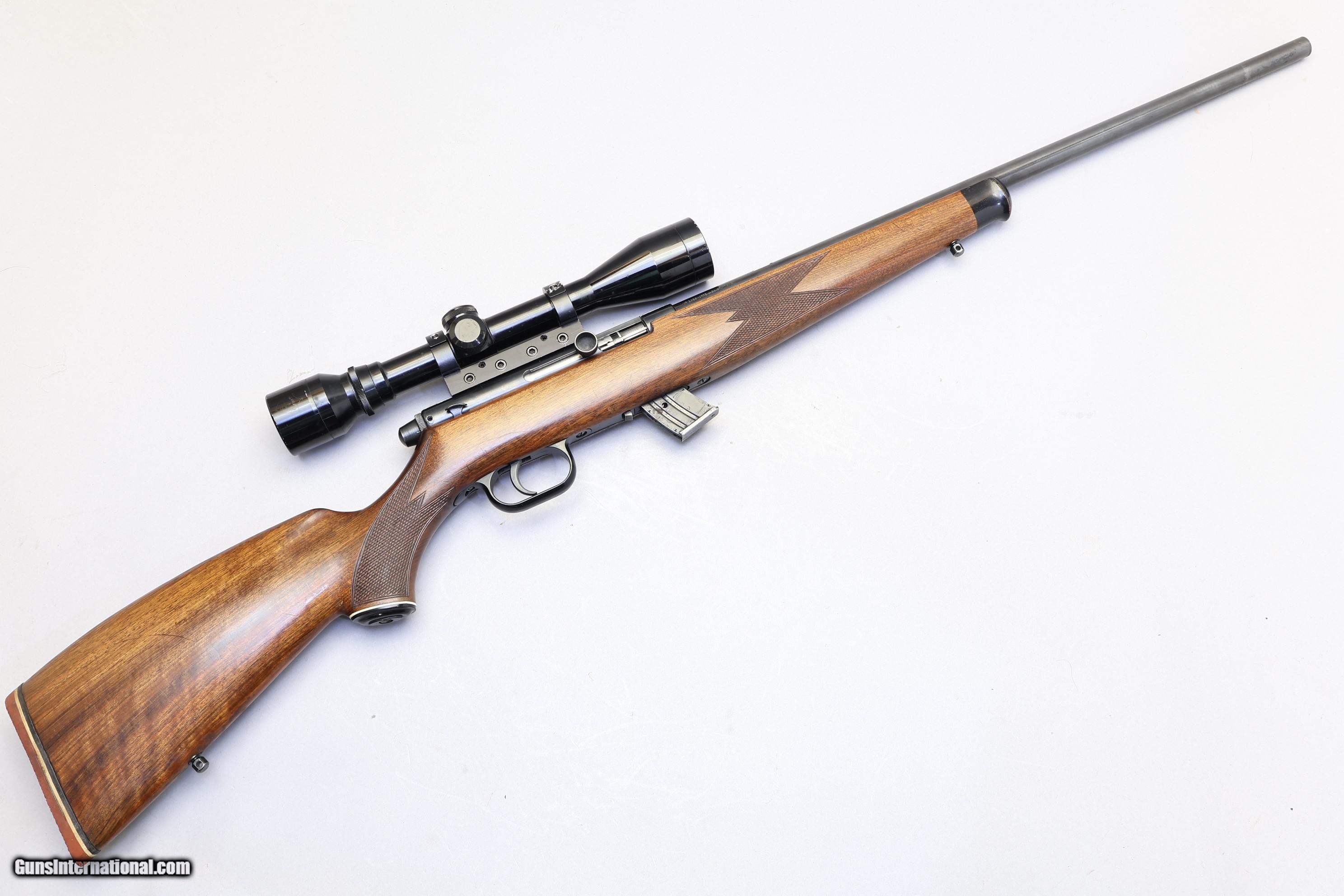 Description: Krico Rifle .22LR Semi Auto Barrel Length 22" | Overall Length 41" | Year of Make 1954 | Country of Make Germany Kriegeskorte .22LR Semi Automatic Rifle, a German-made classic known for its solid mid-century design and dependable cycling. It features a wooden stock with a pistol grip for balanced handling and straightforward operation. Just back from the gunsmith, very well shooting rifle and in great condition - ready to go. Dating to 1954 in Germany, this semi-automatic rifle is chambered in 22 LR with a 22" barrel and 41" overall length. The stock is wood with a pistol grip, and the action is simple yet robust, ideal for sport shooting or pest control. It is licensed for FFL; Seller Inventory #05562; Price $399.
