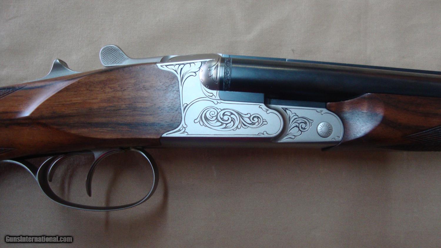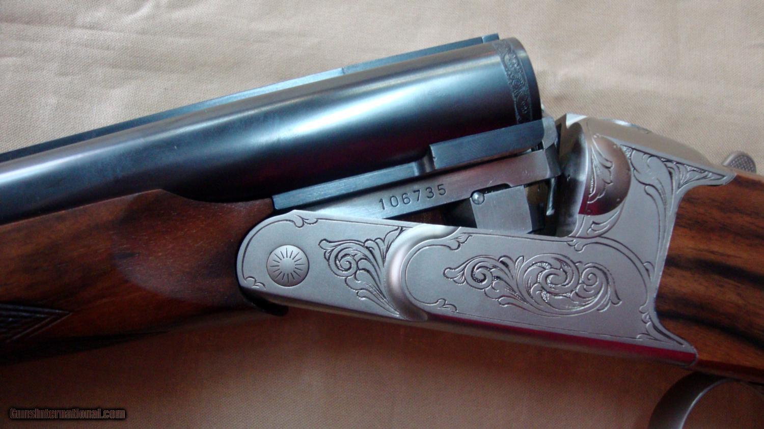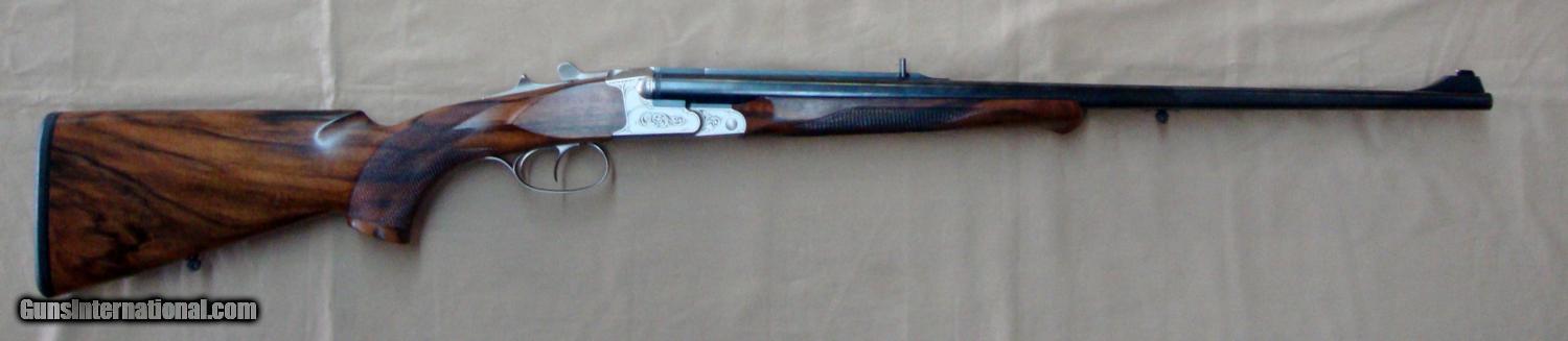 Description: Krieghoff Classic .375 H&H Side by Side Double Rifle 24" barrel Beautifully engraved receiver Krieghoff's safety/ cocking system Double triggers featuring Krieghoff's universal-trigger-system V-shaped rear and front bead sight Beautiful European walnut stock with comfortable grip and straight comb New in box Sale price is firm. SOLD |
