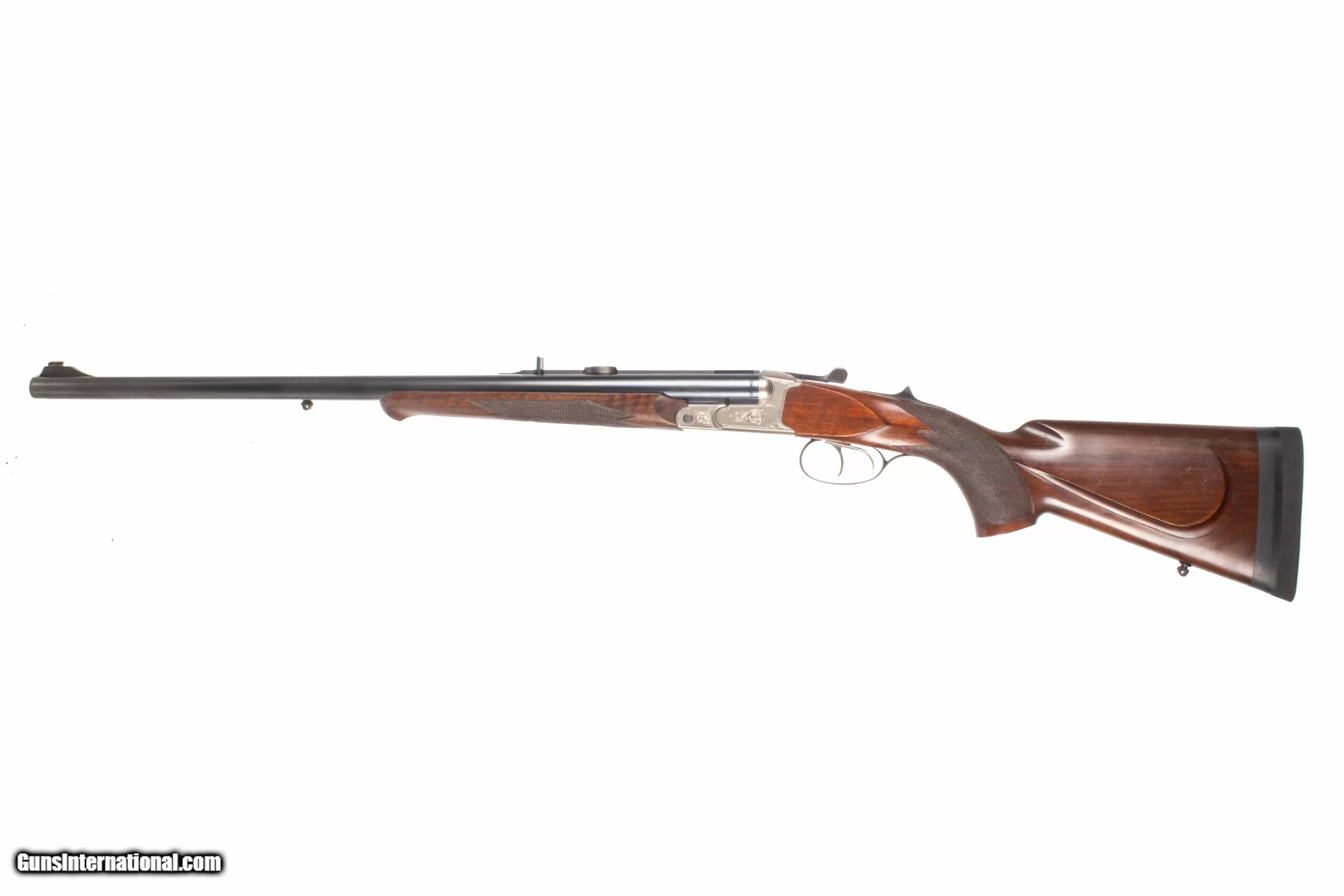 Description: Krieghoff Classic Big Five double rifle chambered for .470 Nitro Express with 60-centimeter blued barrel set, quarter rib with fixed iron sights and integral optic base, engraved satin receiver, double-trigger, and oil-finished checkered walnut with extended Decelerator pad (13",14" LOP). Action appears to be in fine working order with mirror bright, sharply rifled bores. The NRA grading condition for this USED firearm is Good to Very Good. We ship domestically in the United States. Additional shipping rates apply to Alaska and Hawaii. Dury’s Lifetime Warranty: All firearms purchased from Dury’s Gun Shop, NEW or USED, are covered by a lifetime warranty. We will repair or replace, at our discretion, any firearm purchased from Dury’s Gun Shop, Inc. for as long as it is owned by the purchaser. This warranty is not transferable. WE BUY GUNS! NO COLLECTION TOO BIG OR SMALL FOR OUR GUNS INTERNATIONAL CUSTOMERS ALL OF OUR FIREARMS CAN BE PURCHASED DIRECTLY FROM OUR DURY’S GUNS SITE ! SOLD Manufacturer: Krieghoff Model: CLASSIC BIG FIVE Caliber Info: 470 Nitro Express Barrels: 24inches |