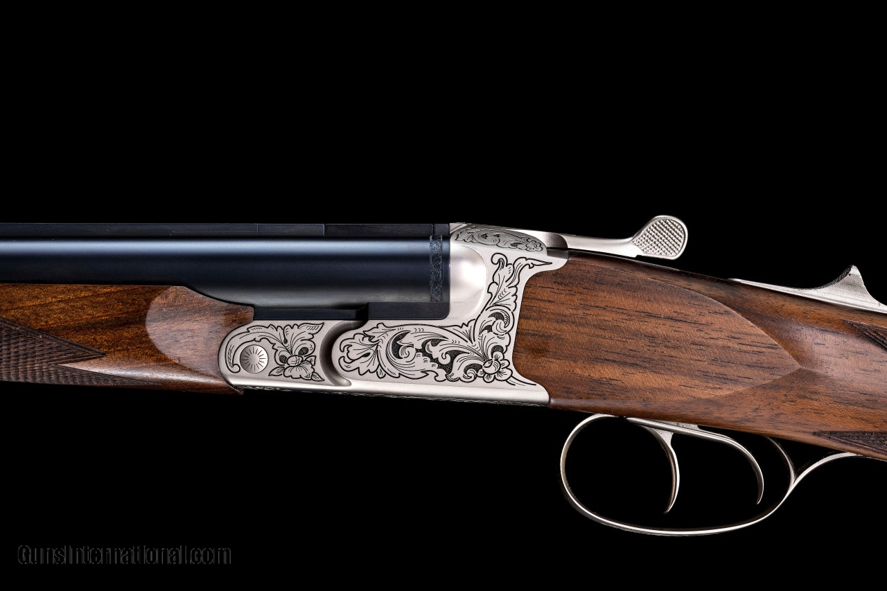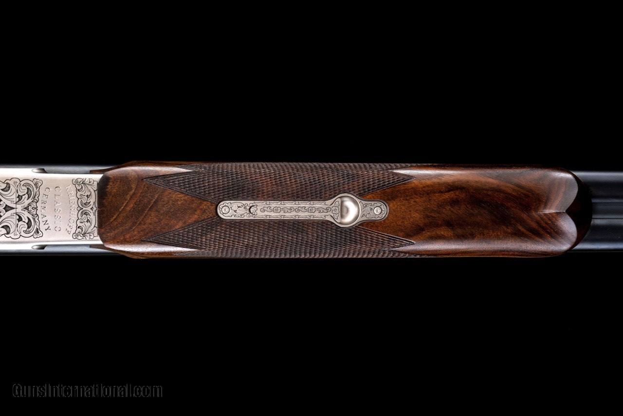 Description: Nothing epitomizes the skills and experience needed for a successful hunt like taking game with a classic double rifle. Prized by dangerous game hunters for years the classic double rifle provides the security and reliability when each shot really counts. The Krieghoff CLASSIC double rifle combines the heritage of the traditional side-by-side and the sophistication of the most modern design and manufacturing technology. The CLASSIC is available in the most common and suitable calibers. Krieghoff’s master gunmakers combined both traditional wisdom and innovative ideas to build a rifle that provides the ultimate in safety and reliability and a wide range of features that ensure smooth, quick, and accurate shooting. In addition to the superb handling of the rifle, a most important feature is the manual cocking device , which is located on the top tang, in the position usually occupied by a conventional safety. It allows carrying the CLASSIC fully loaded with the hammers uncocked – the safest position since there is no chance of an accidental discharge. Craig Boddington, an accomplished hunter and knowledgeable writer remarks: “After using it in the field, I am increasingly impressed with your cocking device versus a traditional safety. Great rifle, and of course it performed wonderfully. SOLD Manufacturer: Krieghoff Caliber Info: 450.400 Barrels: 23-1/2 Action: Side by Side Triggers: Double Trigger Gauge Info: 450.400 Stock Comb: N/A Stock Heel: N/A Stock Cast: N/A LOP: 14-3/4 Rib: N/A Weight: 10.11 Chokes: Interchangeable |