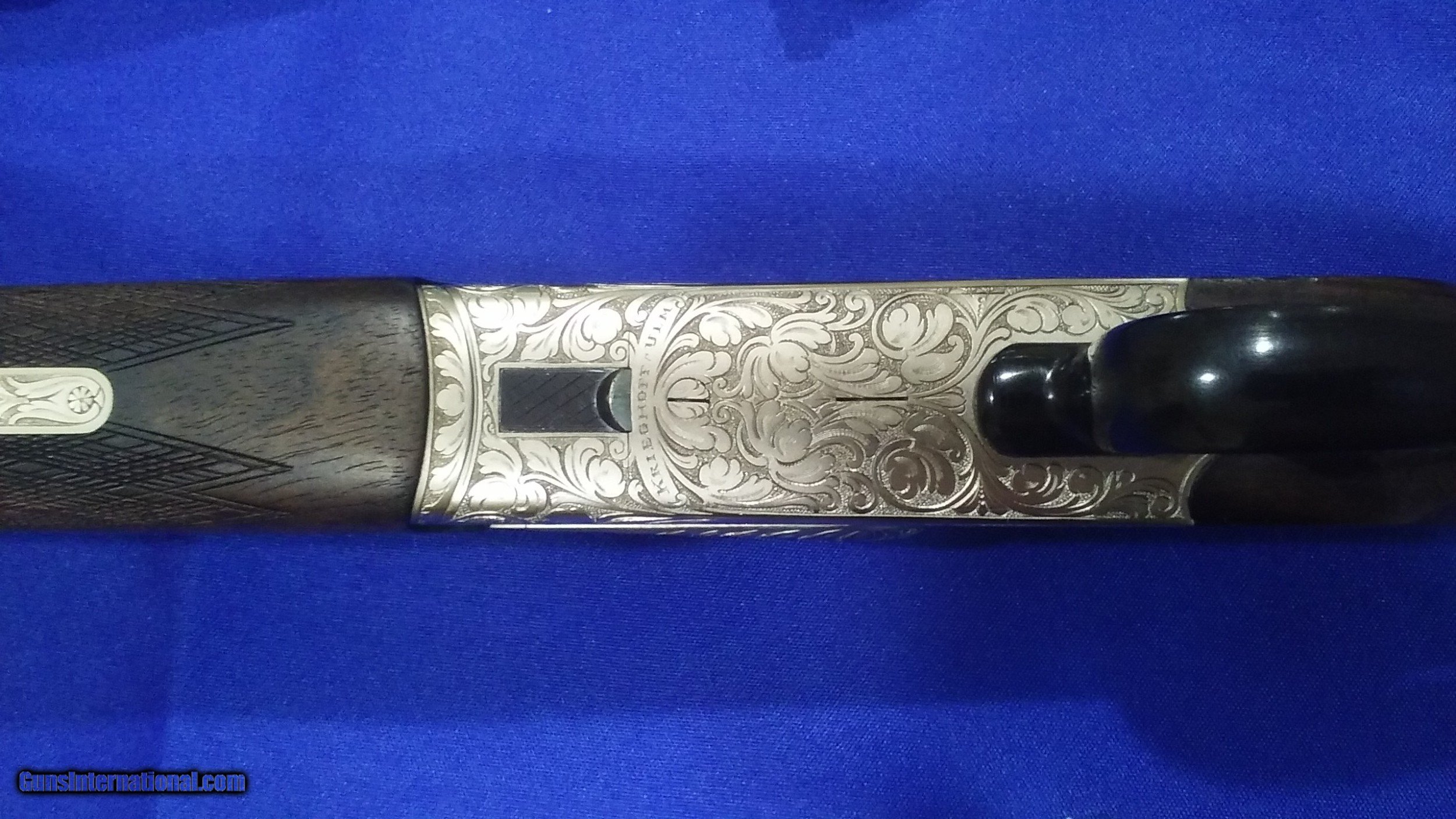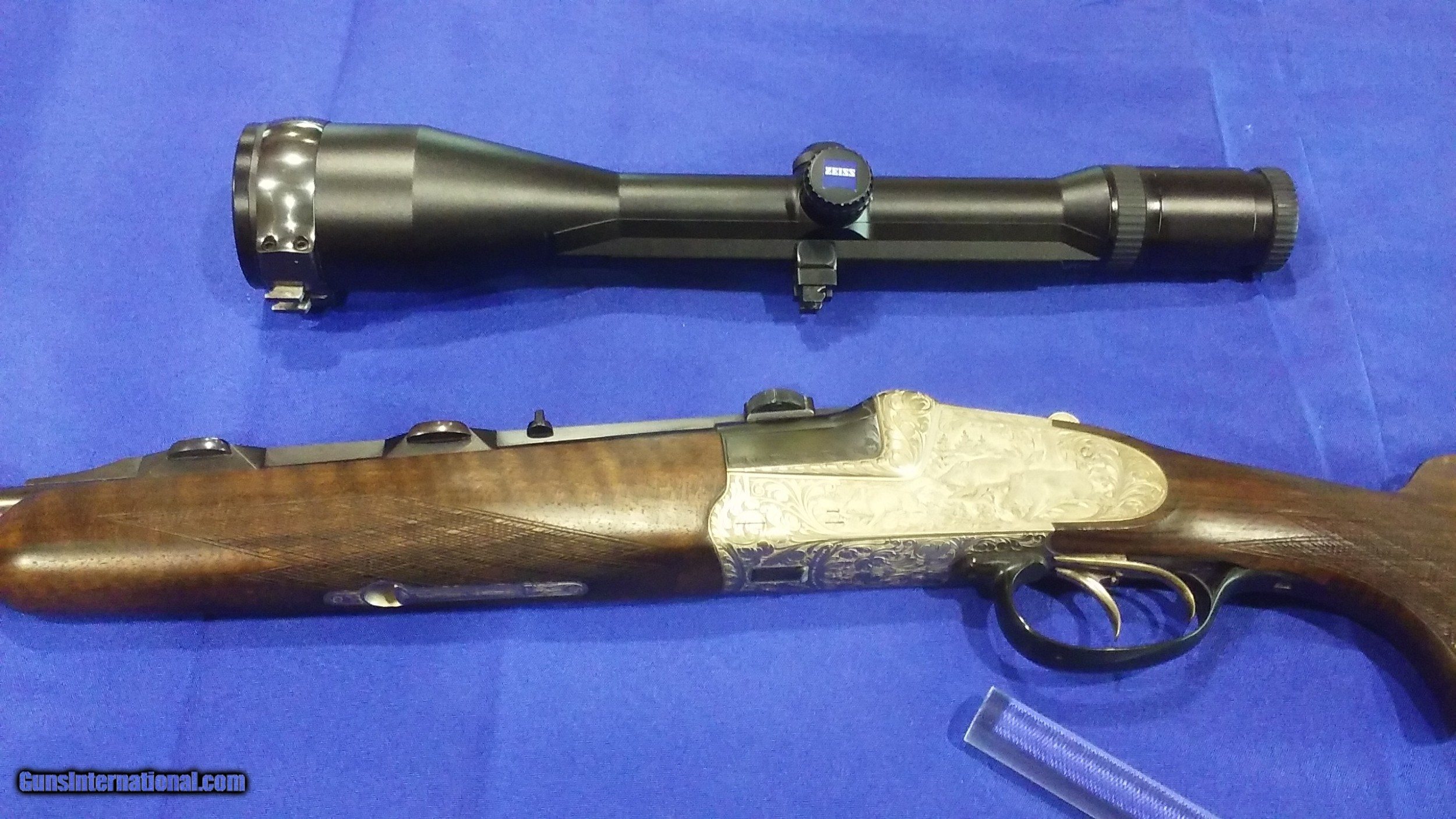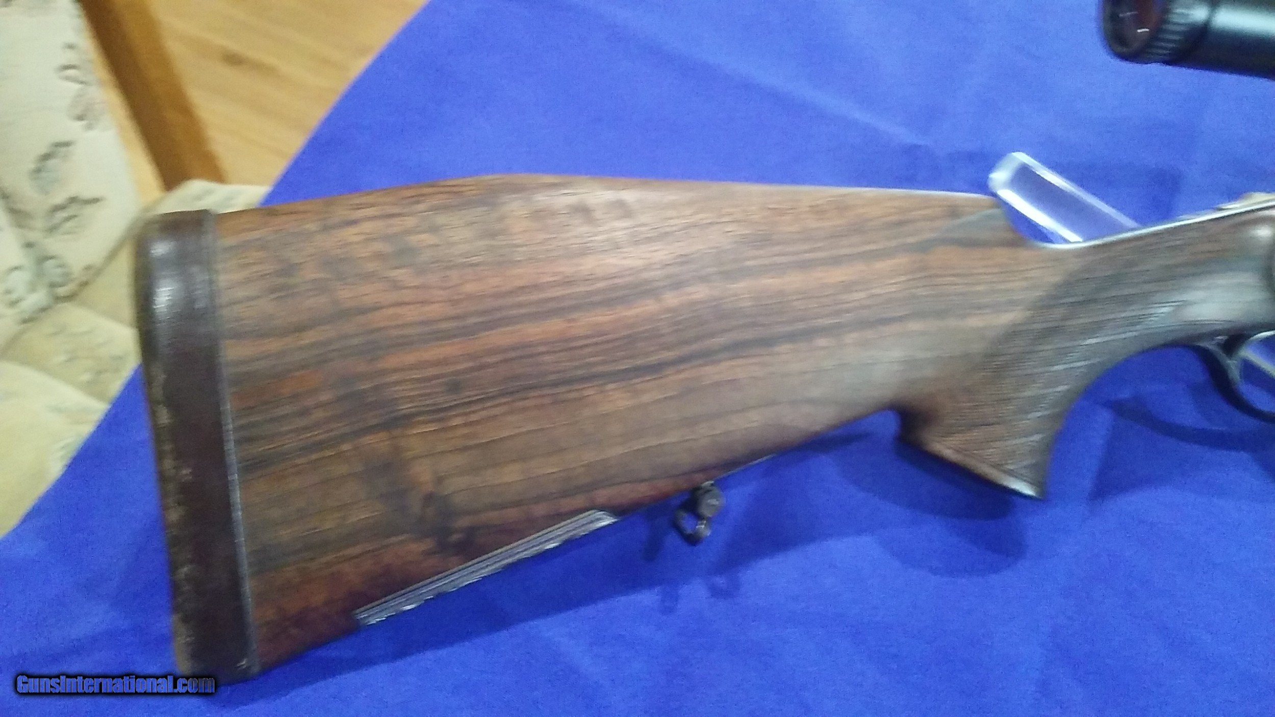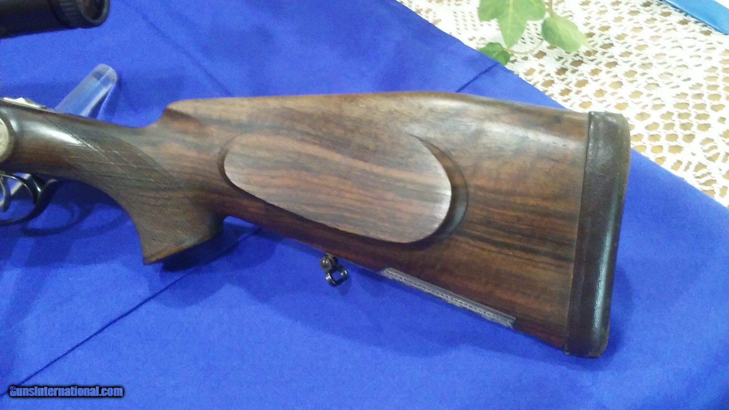 Description: Price Reduced! Sold !!!!!!!!!!!!!!!!!!!!!!!!!!!!!!!!!!!!!!!!!!!!!!! I am reducing the size of my collection and am offering several fine examples of European guns. These guns were purchased by me while stationed in Germany. This Krieghoff Ulm Sidelock Double Rifle is a very fine example of German craftsmanship. LOP is 14.75 inches. Weight is approx. 10 lbs 7oz with the Zeiss Scope and mounts. This Model Ulm Sidelock Double Rifle has very nice deep exclusive engraving on the side locks with Red Stag on the right side, Wild Boar on the left side. Country Side fill. The Zeiss 3-12X56 Scope with lighted No. 4 reticle and Suhler Claw Mounts are in great condition. The claw mounts alow you to remove the scope for travel and it always returns to zero. Wood and Blueing are in great. Nice grain on the oiled stock with leather butt plate. There is also an engraved stock magazine for 4 rounds. The 9,3X74R is perfect for North American Game. There are NO importer’s markings anywhere on the gun. Today's value is in excess of $ 24.000. There are others on the internet but not many are nicer and most are considerably more expensive. This is truely a great value for a investment or just a beautiful gun to hunt with. This is a fine example of a Krieghoff Sidelock Double. It will definately make some collector and shooter very happy. Complete Picture file available by e-mail request. Fixed shipping cost of $60.00 to the lower 48 States Item will ship via USPS Registered Mail from me to your FFL when funds clear. Thanks for looking! SOLD Rifle Caliber: 9.3x74mmR Manufacturer: Krieghoff Model: Ulm Serial Number: 89539 Condition: Excellant Metal Condition: Excellant Wood Condition: Excellant Bore Condition: Excellant Triggers: Set LOP: 14 3/4 in. Manufacture Date: 1990 |
