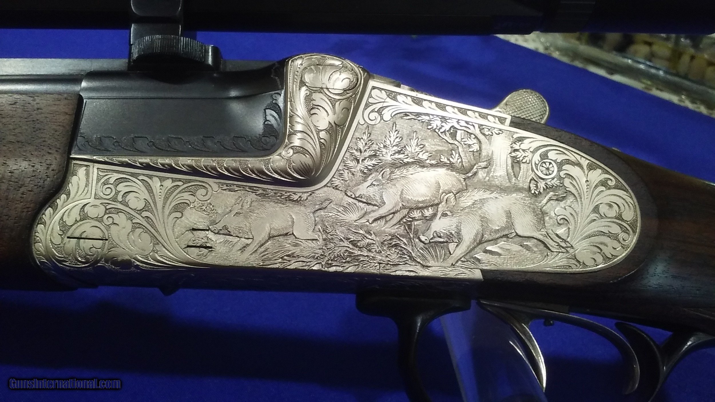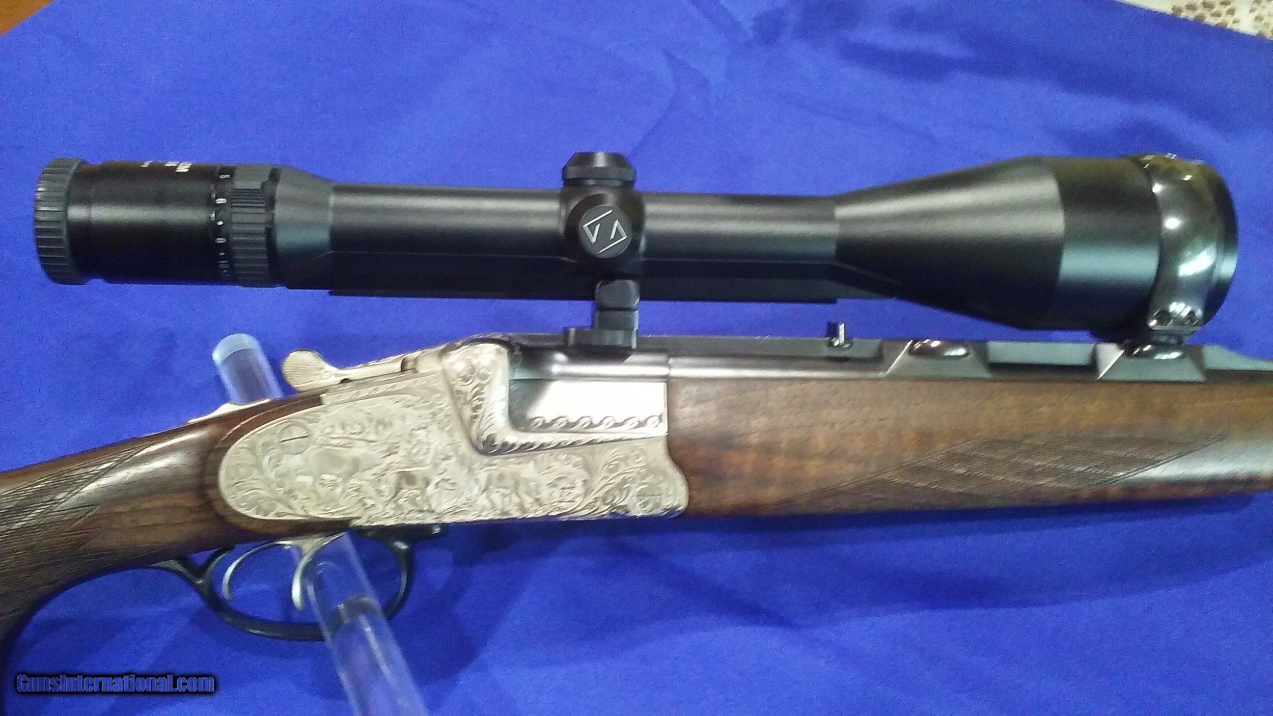 Price Reduced - Krieghoff Ulm Sidelock Double Rifle in 9,3X74R from 1990, Deep Animal Engraving.