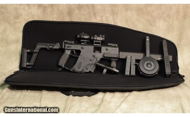 Description: Kriss Vector in very good condition overall chambered in .45 ACP. Includes two 13 round magazines, one 28 round magazine, one 40 round drum magazine, Sig Sauer Romeo-MSR, magnifier, green flashlight, and soft case. .45 ACP SOLD Metal Condition: Very good Bore Condition: Bright Barrels: 16 Stock Dimensions: 12" LOP Folding Sights: Sig Sauer Romeo- MSR Item Location: Chesterfield, MI |