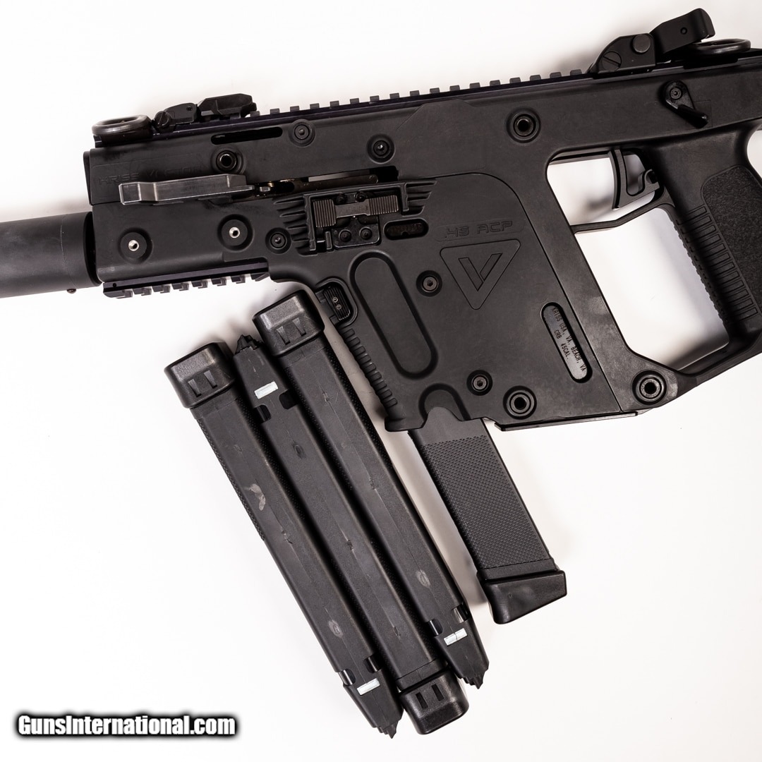 Description: Guns Listing ID: 394047 For sale is a Kriss Vector CRB. It is based on the full-automatic Kriss Vector Sub-machinegun and is a great option for home defense and sport shooting. It features a folding stock, 16\" barrel with a faux suppressor, straight skeleton trigger, Kriss pop-up sights, and sling mounts. It is in excellent condition and comes with four 26-round magazines. SOLD Manufacturer: KRISS Model: CRB Caliber Info: .45 ACP Condition: Used - Certified Barrels: 16 BARREL Finish: BLACK |
