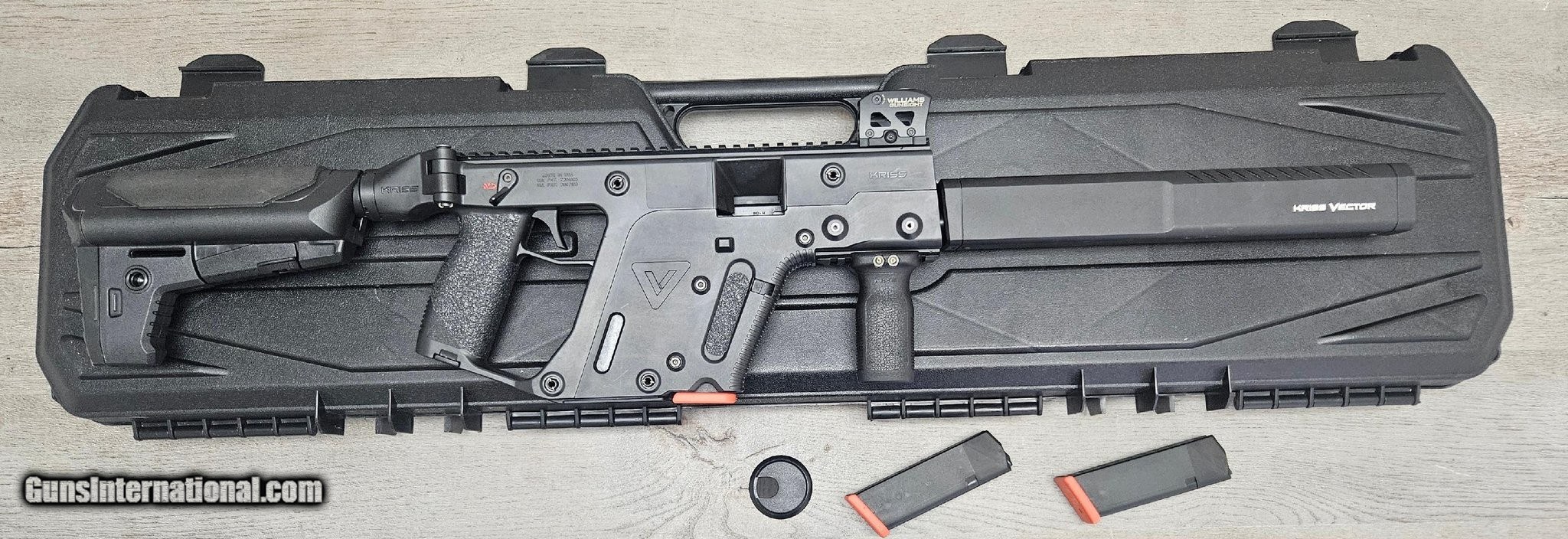 Description: Guns Listing ID: 572836 THIS IS AN AWESOME RIFLE! COMES WITH 3 - 15round GLOCK MAGAZINES. ADDED FOREARM GRIP AND WILLIAMS GUN SIGHT LRS LIGHTED SIGHT INCLUDED. BLACK PLASTIC HARDCASE INCLUDED. SEE PICTURES. Manufacturer: KRISS Model: VECTOR CRB Caliber Info: 10MM Condition: Used - Non-Certified Barrels: 16" BARREL Action: SEMI AUTOMATIC Finish: black Price: $1,499.99 Contact Seller |
