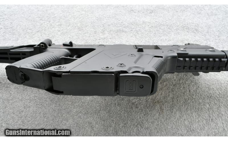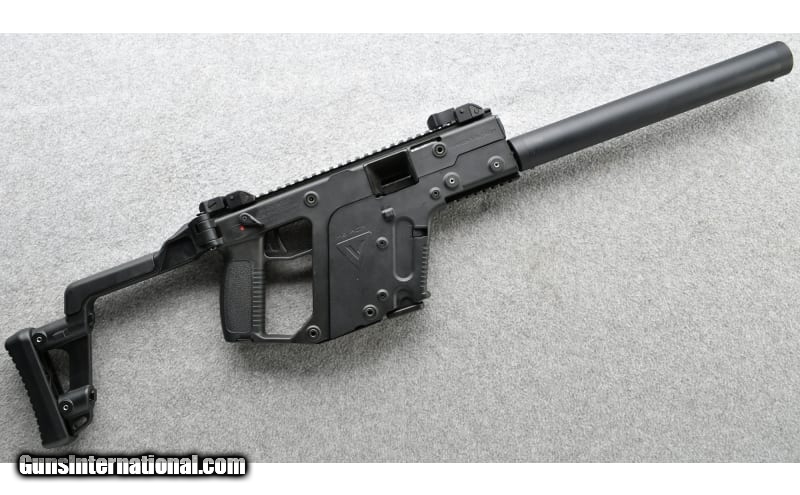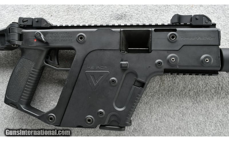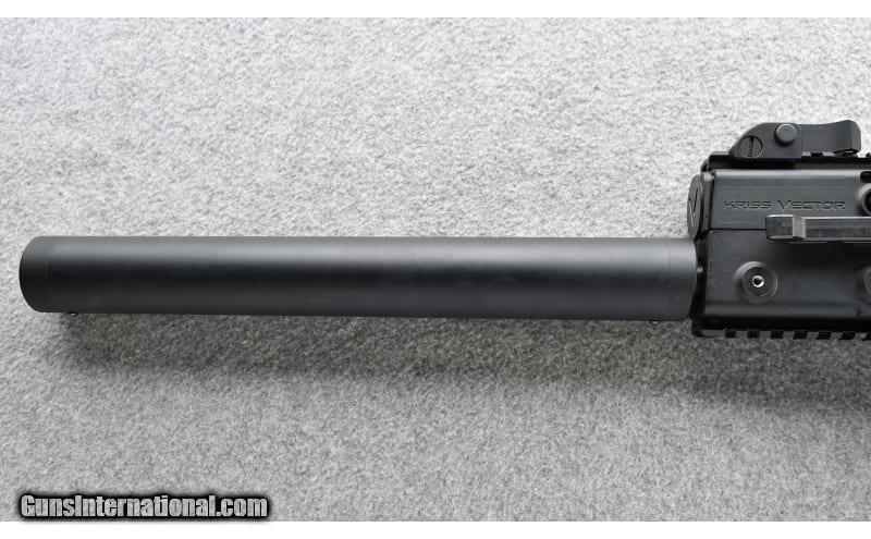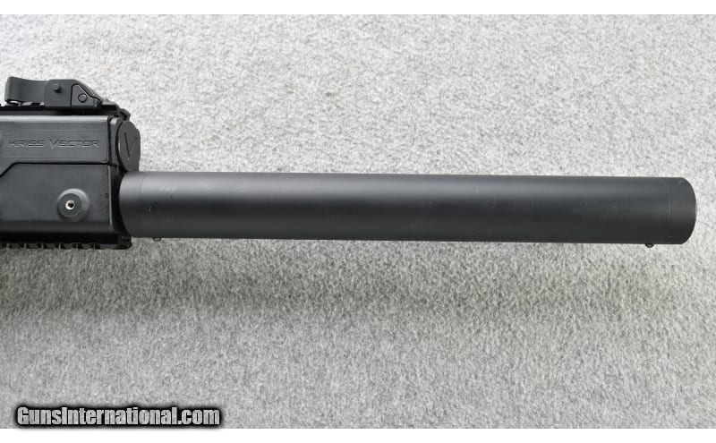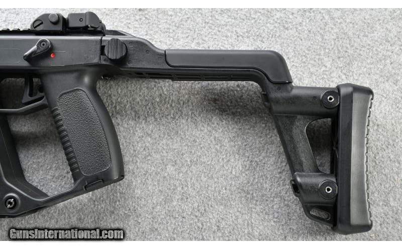 Description: The Vector CRB is 47 state compliant, and is the ideal choice for recreational use and competition in pistol caliber carbine divisions. The CRB is fed with full size Glock magazines, allowing for a wide range of large capacity options. The Vector CRB features the Super V System, a nonlinear, multilink, blowback system designed to redirect recoil energy down. The Super V System in conjunction with the low bore axis reduce felt recoil and muzzle climb. .45 Auto SOLD Chambers: .45 Automatic Colt Pistol (ACP) in a thirteen round detachable magazine delayed blowback semi-automatic rifle Metal Condition: "Very good, shows a few small marks at the ejection port Bore Condition: Bright and sharp Barrels: 16" with Faux Suppressor 1:10" RH twist Triggers: Pivoting Single Stage Stock Dimensions: Folding and adjustable for LOP Butt Pad: Serrated rubber Weight: 7 lbs. 8 oz. Sights: Flip-up Kriss adjustable aperture battle sights Item Location: Grand Junction, CO |