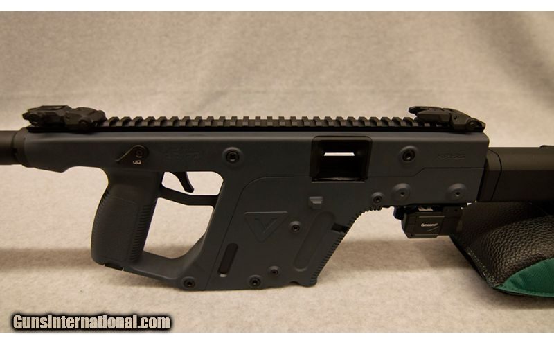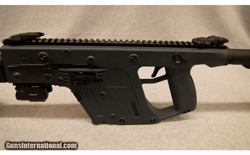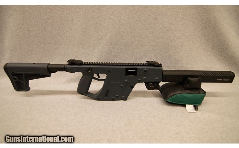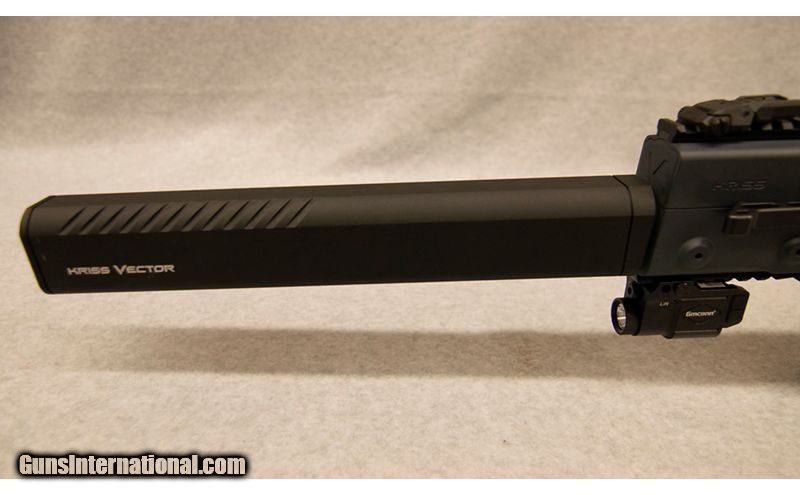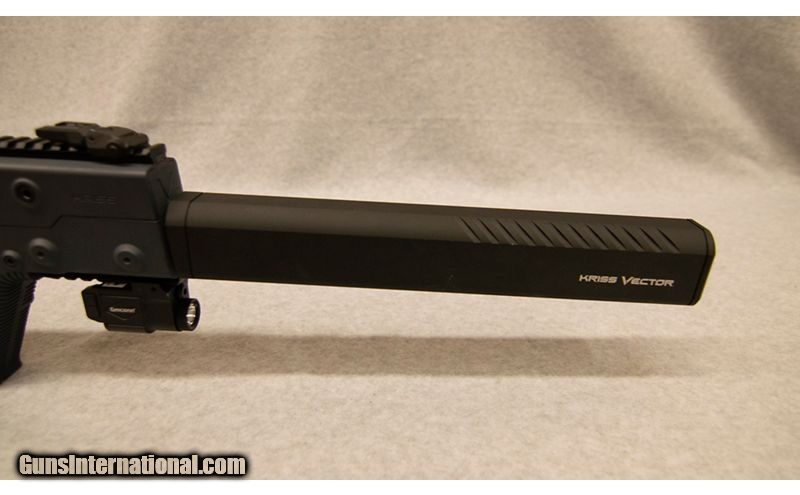 Description: Kriss Vector Gen II CRB, chambered in 9 mm. Features include: delayed blowback KSV (KRISS Super V) recoil mitigation system, 16 in. Nitrided barrel with black anodized shroud, uses Glock mags., smooth pivoting trigger with audible and tactile reset, low profile folding sights, KRISS M4 stock adaptor with DEFIANCE M4 stock, ambi short throw safety lever, bottom and full length top Picatinny rail, left side charging handle/brass check function, toolless caliber interchangeability, Combat Grey finish. Has a GMCONN Blue Laser/Tactical Light attached to the lower rail 9mm Luger SOLD Chambers: 9 mm Metal Condition: Good Bore Condition: Good Barrels: 16' Triggers: Pivoting Trigger Stock Dimensions: 16' Butt Pad: Hard Rubber Sights: Low Profile Folding Sights Item Location: Fort Mill, SC |