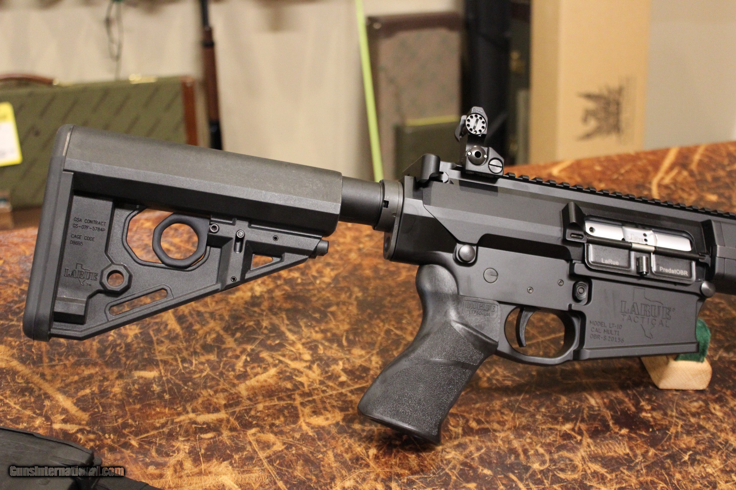 Description: LARUE TACTICAL 7.62(308) 16.1 COMES WITH GUN CASE AND THREE WEIGHTED LARUE MAGS, ANIB CONDITION PredatOBR barrels are chambered in 7.62x51mm, and feature rifling in a 1/10 twist rate. All barrels are threaded in 5/8 x 24. Like the OBR and PredatAR riles, LaRue has eliminated the conventional AR barrel nut and bolt the handguard directly to the proprietary upper receiver, creating a true “free-float” barrel. The handguard does not touch the barrel or barrel nut at any place. The zero-MOA upper rail provides plenty of room for weapon-mounted night-vision day/night combinations. Both the upper and lower are CNC-machined from billet aluminum for the optimum fit and consistency. Even though it has been lightened certain features, there is still additional material in strategic areas to achieve maximum accuracy. SOLD |