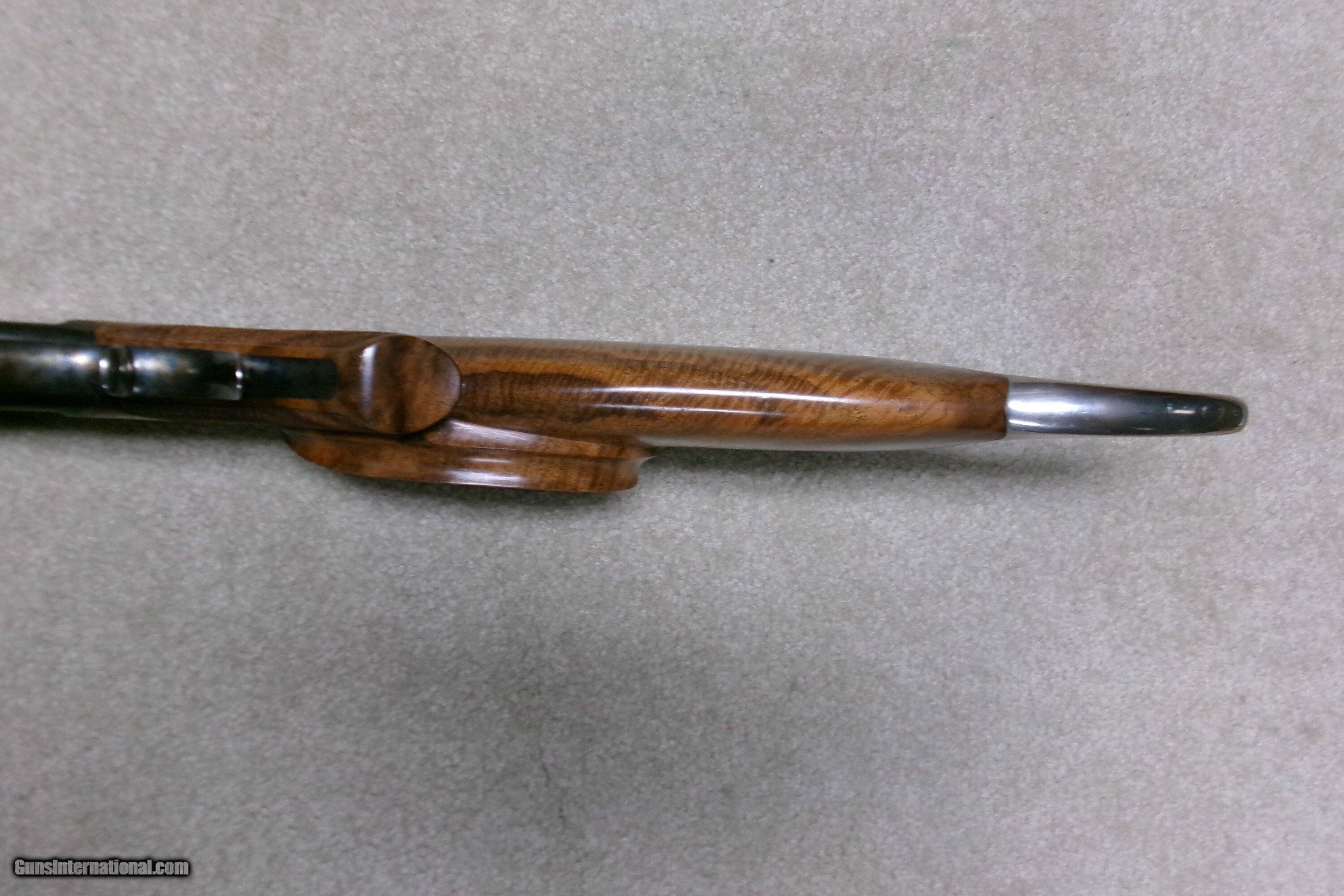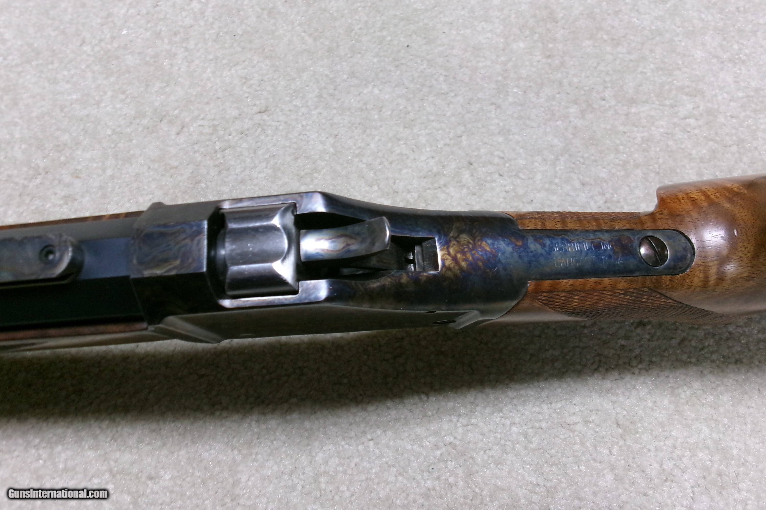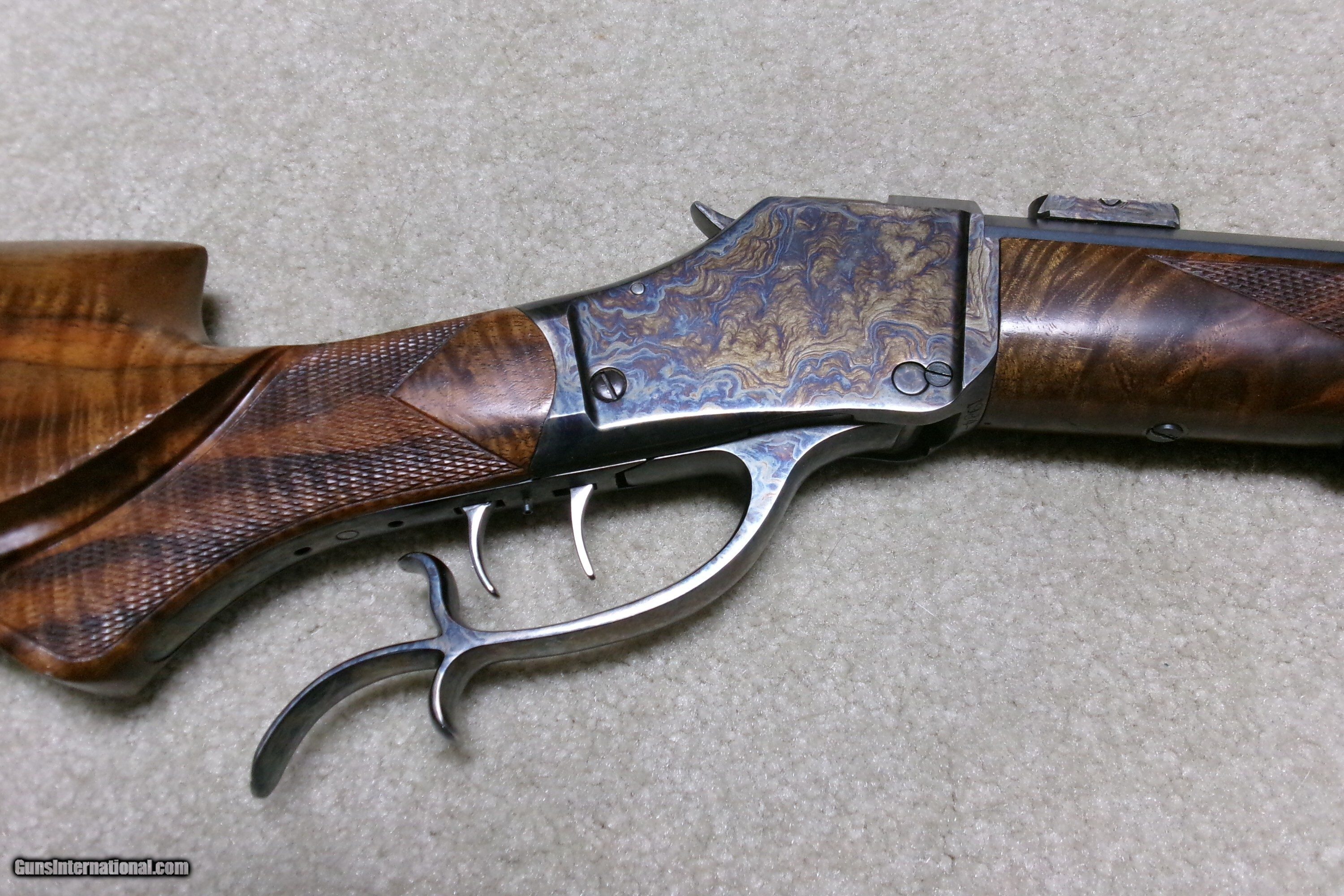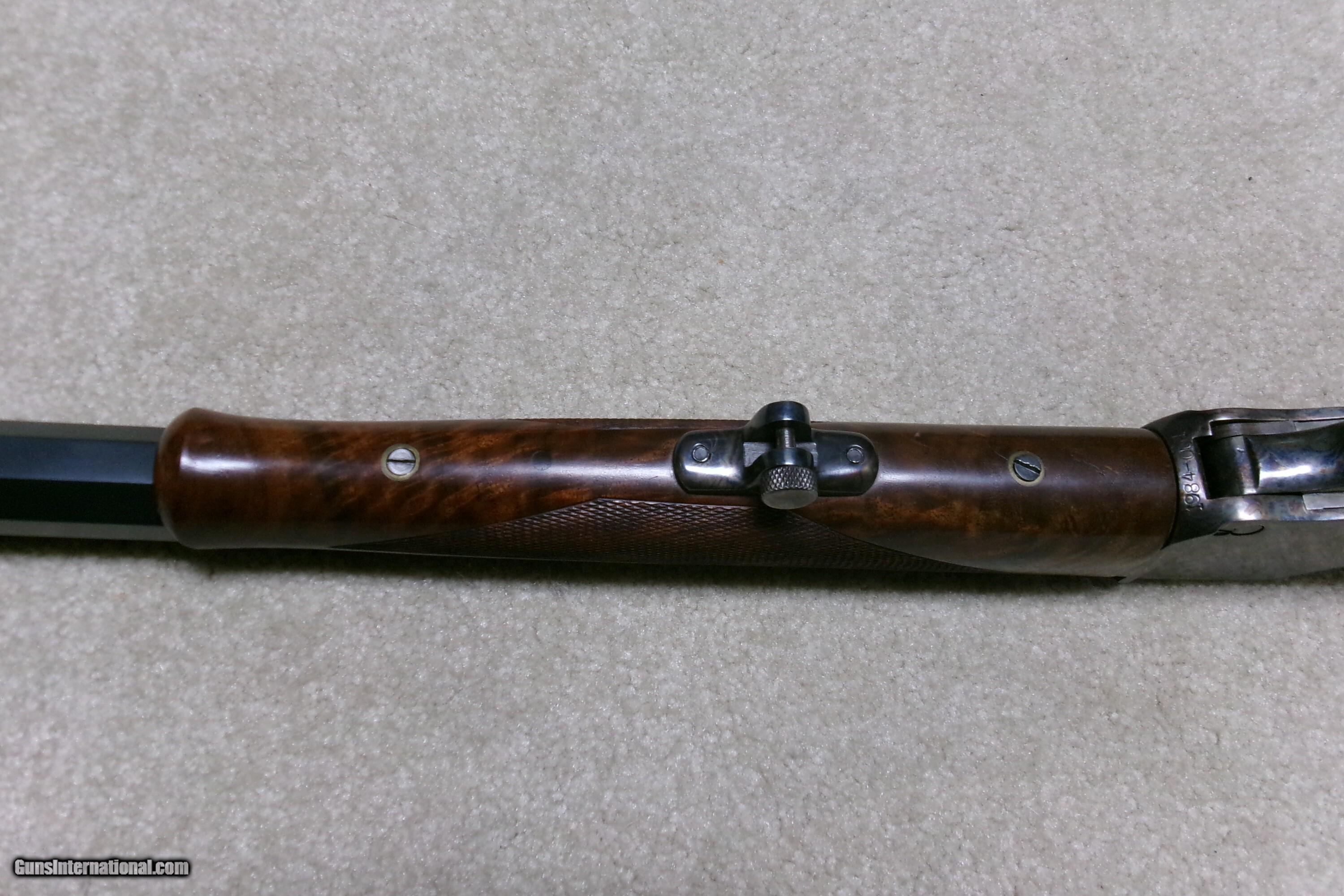 Description: BEAUTIFUL CUSTOM LEFT HAND SCHUETZEN .32-40 HIGH WALL BY J. A. “BO” CLERKE, SERIAL NIUMBER 1984-001. By the serial number I assume this was made in 1984. Presentation grade walnut in stock and forend with raised cheek piece and accent line. Full nickel plated Schuetzen butt plate, fancy unusual color case hardening on the Schuetzen style lever and receiver. Double set triggers with adjustment screws. Fitted for a palm rest (palm rest not included, but could probably be had from CPA rifles). Nicely checkered pistol grip with schnable bottom and matching checkering on the forend. No sight dovetails on the 30” octagon barrel, but fitted with case colored scope blocks. Weighs just under 12 lbs. Upper tang marked “Serrifile Inc., Lancaster, CA” and the barrel top is marked “J. A. Clerke.” Aside from the most minor of handling marks in the stock that you’d have to look carefully to find, this one appears about new inside and out. Manufacturer: J. A. Clerke Model: 1885 Serial Number: 1984-001 Barrel Length: 30" OCT. Condition: NEAR NEW Bore Condition: EXCELLENT Price: $3,850.00 Contact Seller |