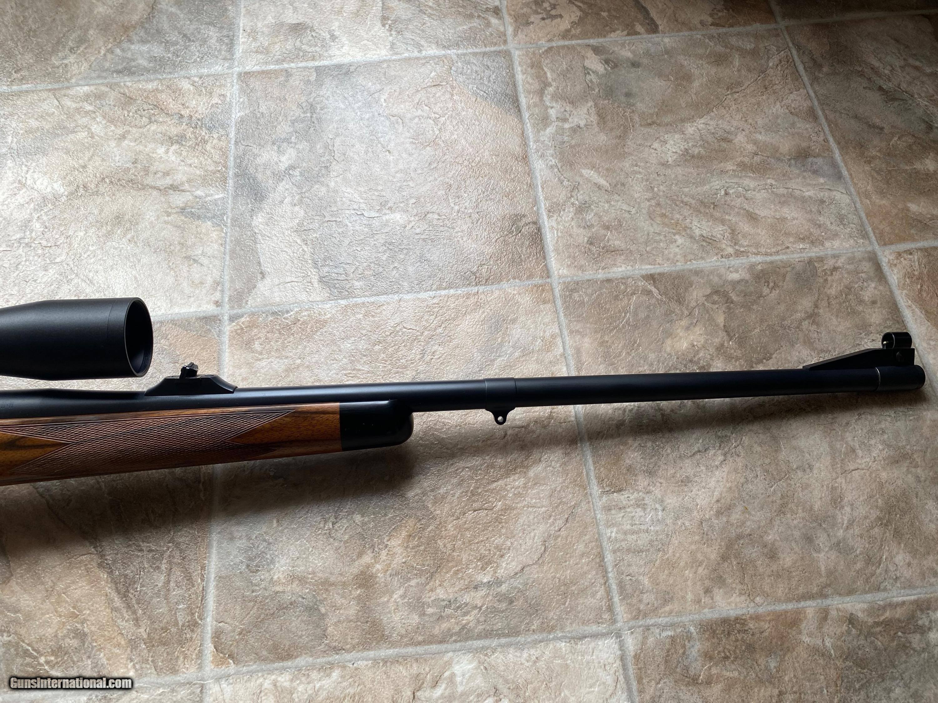 Description: I am selling one of my left hand Mauser model 3000 rifles. This rifle was built my a small gun maker name Bill Gostomski in Mount Savage MD. The action is a left hand Mauser model 3000 with a shilen #4 contour match grade barrel finished at 25 inches. The sights and barrel band are from New England custom guns. The stock was made from a XXX blank of English walnut that I hand selected. The checkering pattern is a point pattern with a border. The stock was finished with 33 Coates of oil to fill all the pores. The stock has steel cross bolts with ebony plugs over them and an ebony forend tip. The stock is also full length bedded.The rear sling swivel stud and grip cap are Dakota and a pachmayr old English pad was installed. This rifle is very accurate and weighs in at 10.5 lbs scoped and is a pleasure to shoot. The rifle has approximately 90 rounds through it. Included with the rifle will be Talley rings and bases, and a set of EAW scope mounts with 1 inch rings. I am asking 4000.00 for the rifle. If you want me to throw in the scope which is a Zeiss V4 conquest 3-12, add 650.00 SOLD Rifle Caliber: .375 H&H Magnum Manufacturer: Mauser Model: 3000 Barrel Length: 25 inches Condition: Very good Metal Condition: Very good Wood Condition: Very good Bore Condition: Very good |