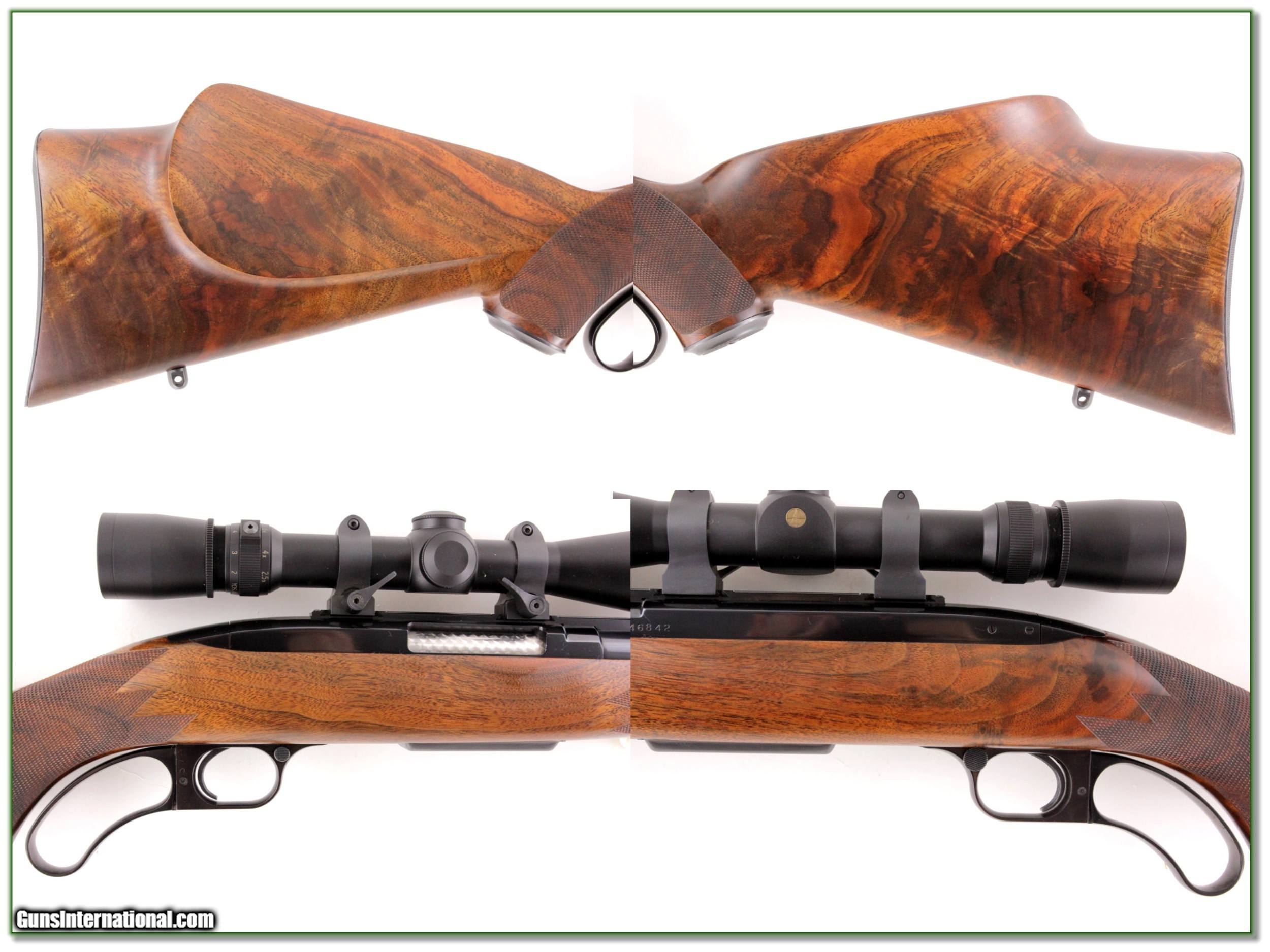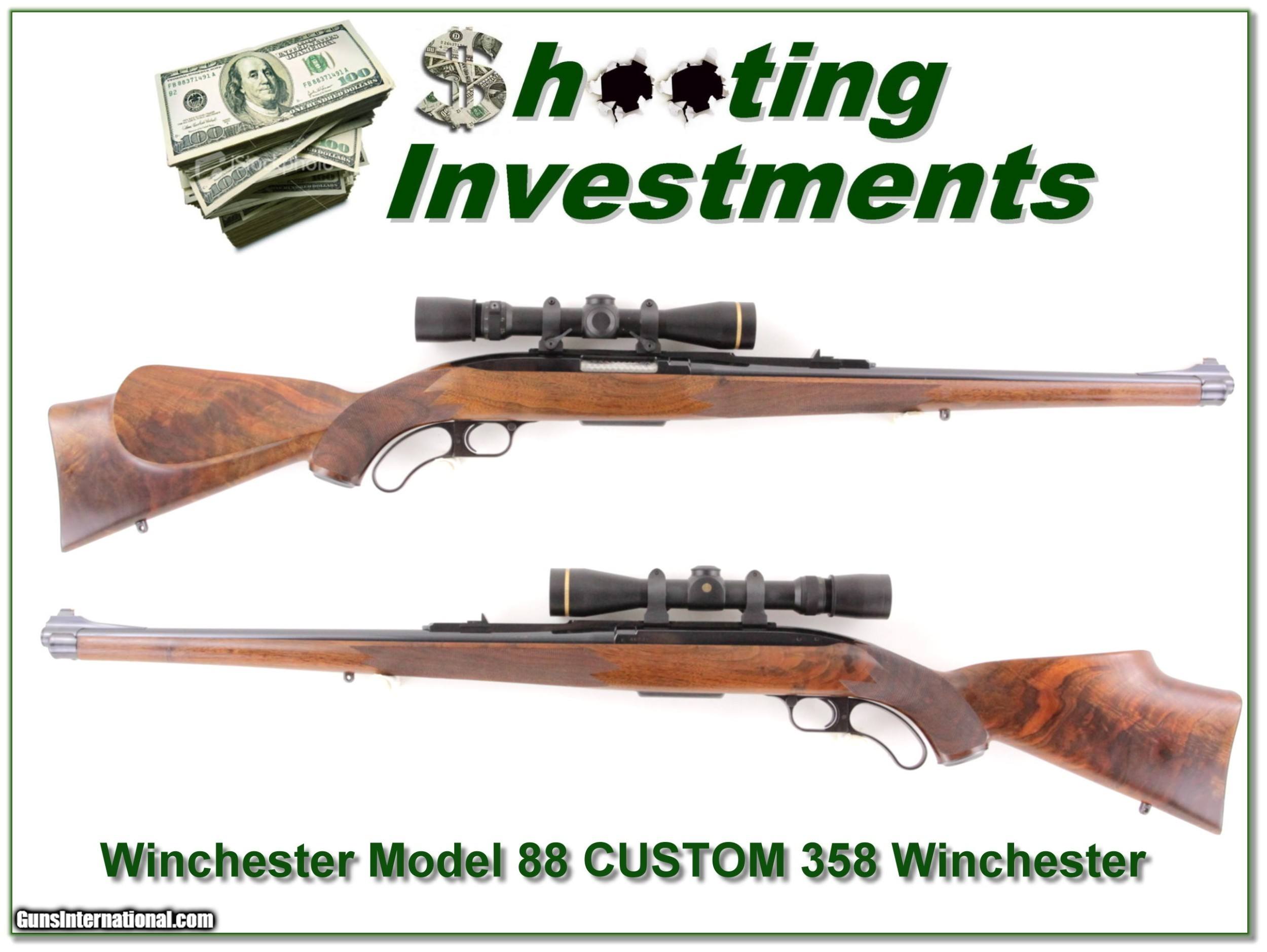 Description: This is a one of a kind fully custom Winchester 88 on 358 Winchester. I has XXX wood with outstanding fit and checkering. It was done by Score High Gunsmithing in Albuquerque, New Mexico with over $6K invested! It has a Left-Handed stock and safety. It has a full length Mannlicher stock with custom open sights. It comes with Leupold VX-3 scope as seen! You won’t ever find another! I am selling this one on consignment and as such lay-a-way can’t be used. It does of course have the standard 3-day inspection. Shipping with insurance is $59. Please email me with any questions or larger pictures. (Consign your quality firearms with Shooting Investments for only 12%! Let me know if you have any you would like to sell!) 19-0780 Payment: Payment is by Money Order, Cashiers Check or Personal Check. I can now also accept MasterCard and Visa with a 3% convenience fee. PayPal can be used for some items but never firearms. Please let us know if you would like to pay via PayPal. Shipping: The shipping charge will be listed in each description. It is $39 for most long guns and $29 for most handguns. Some heavy guns or those insured for over $2000 will be higher. Shipments to Alaska and Hawaii are higher because air shipment is required. Most firearms are shipped on Tuesday and Thursday and usually in 5 days of receipt of payment. We package all shipments carefully and insure them. For long guns you can purchase a new Plano case for $19. They now cost us $22 when buying 100 at a time. Optics are shipped Priority Mail and most other non-firearm shipments are shipped First Class. Returns: Our return policy is simple. If for any reason you are not pleased with your purchase, you may return your item for a full refund of purchase price. Ammunition cannot be returned. It is important to us that you are happy. Guns cannot be fired or dissembled before returning them and they must be returned in the same condition as received. Notification of a return must occur with-in 3 days of receipt at your dealer. Shipping, convenience and dealer fees are not refundable and are the responsibility of the buyer. Lay-a-way: If needed, we offer a 60 day lay-a-way option on most firearms. It is 1/3 now, 1/3 in 30 days and 1/3 in 60 days. Lay-a-way firearm sales are final and if not completed the first payment cannot be returned. Consigning your firearms with Shooting Investments: We will help you get top dollar for your firearms. While most local guns shops charge 20% or more, our fee is only 12% with a minimum of $75. At your local gun shop it might take months to sell. Selling on-line provides instant access to thousands of interested buyers. You won’t find any other on-line dealer willing to sell your firearms for only 12% or listing every gun on 3 separate s. Selling through an House typically costs the seller 15% and the buyer an addition 15% (so 30%) and you have to wait several months to sell and longer to receive funds. If properly priced, we will sell your firearms in a few weeks. Send us an email or give us a call and we’ll explain how easy it is for you to get top dollar. Trading: Trading for use is really just buying your gun to re-sell. If you have a gun you want to trade, please email a picture and we will let you know what we can give or it. You will always get more if we sell it for you on consignment. Help for California Buyers: We are happy to ship to California. It is the buyer’s responsibility to make sure any item you buy is legal in your state. We are also happy to help with your purchase of a firearm from someone other than us. If you see a gun you would like to buy but the seller can’t or won’t ship to California they can ship to use and we’ll then ship it to your California dealer. The cost for this service is only $30 + shipping. Let us know if we can help! SOLD |