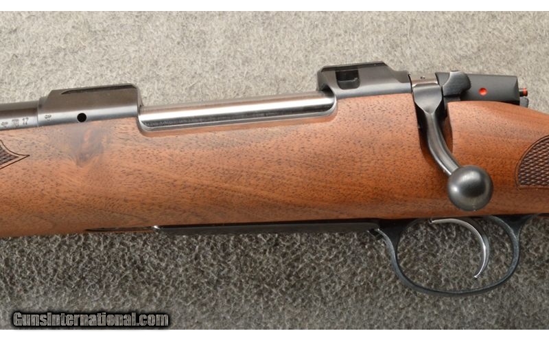 Description: With a 24" version of our cold hammer forged and lapped barrel, the 557 American picks up where the short-barreled Sporter left off. The longer barrel squeezes a bit more velocity out of the chosen chambering. Its American-pattern stock has strong pistol grip with a bit of a palm swell and is adorned with a classic checkering design borrowed from CZ's UHR (Ultimate Hunting Rifle). With a high comb and no sights, this rifle is intended for use with a scope, and built-in dovetails mean there are no bases required — allowing scopes to be mounted directly to the action and enabling a simpler, more robust attachment method. This is a factory blemished rifle and all we can find is the spotting on the trigger guard. .30-06 Springfield SOLD Chambers: Bolt action repeater. Metal Condition: Excellent with some spotting on the trigger guard. Wood Condition: Excellent like new. Bore Condition: Bright and shiny. Barrels: 24" blue cold hammer forged. Triggers: Fully adjustable single trigger. Stock Dimensions: 14" LOP. Butt Pad: American-pattern stock has strong pistol grip with a bit of a palm swell and is adorned with classic checkering. Weight: 7 Lbs 8 Oz. Sights: 19MM dovetail for your rings. Item Location: Owatonna, MN |