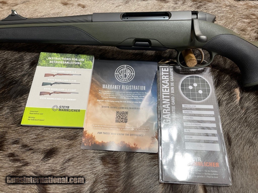 FREE SAFARI, NEW LEFT HAND STEYR ARMS CL II SX HALF STOCK 270 WIN CLII - LAYAWAY AVAILABLE