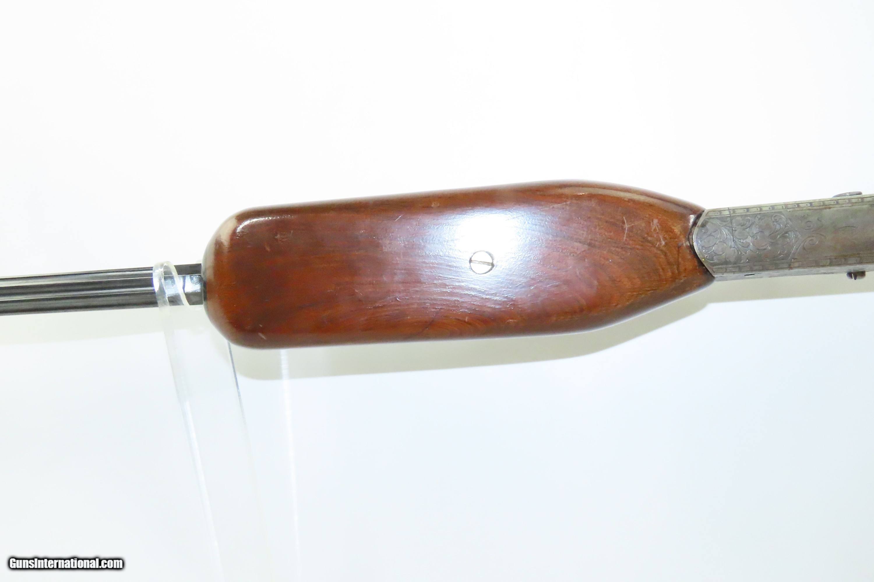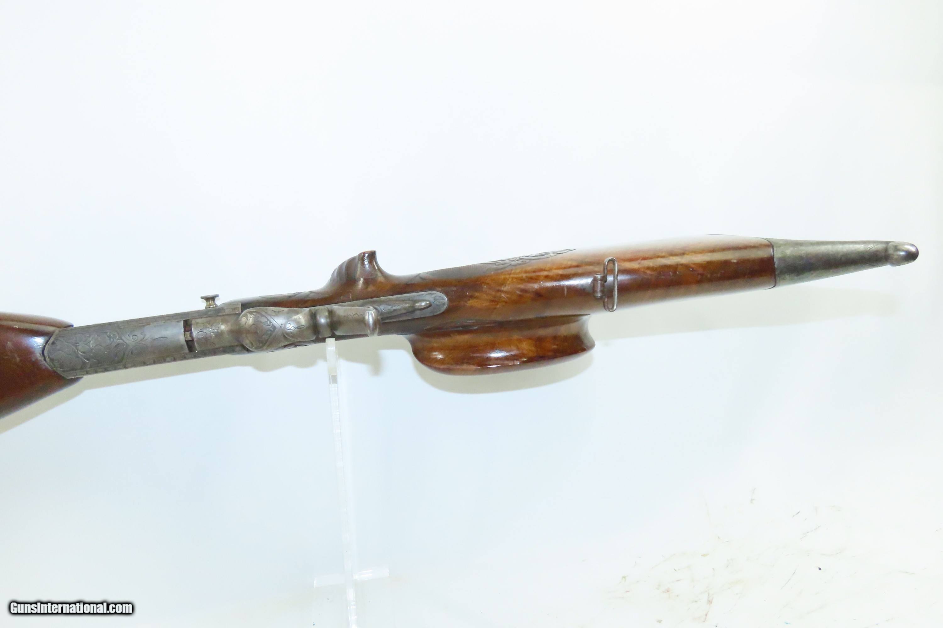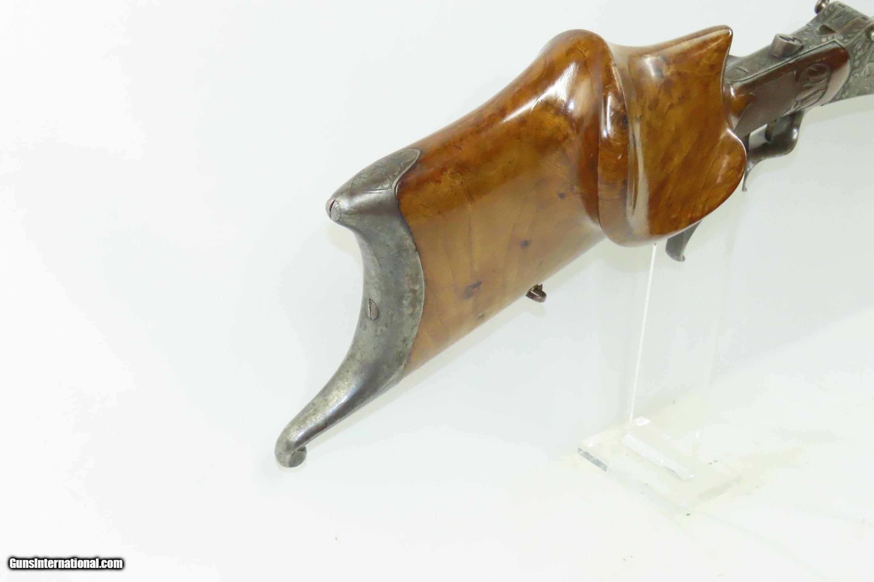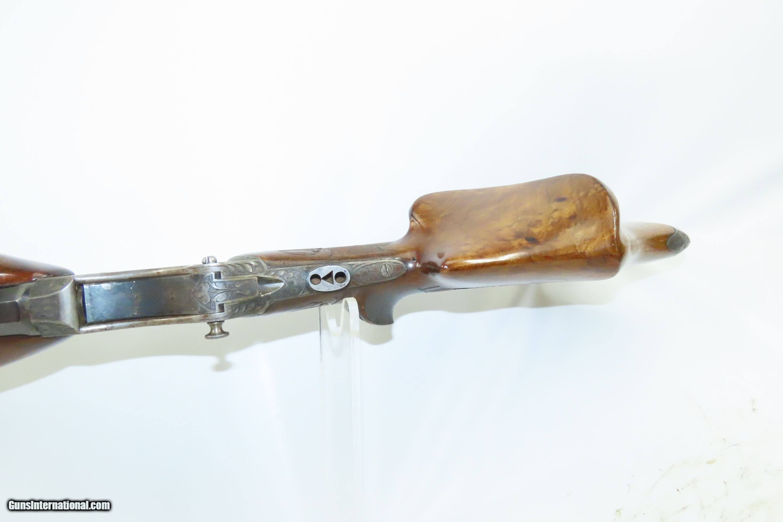Description: GAME SCENE ENGRAVED Martini SCHUETZEN 8mm Single Shot LEFT HANDED Rifle C&R 20th Century Long Range Competition Style Rifle Here we present a C&R Game Scene Engraved Left Handed Martini Style Schuetzen Single Shot Target Rifle, made circa the turn of the century. This rifle features a distinctive butt stock with a generous cheek piece. The trigger guard is large and is designed to be used as a pistol grip. This rifle features double set triggers that provide an extremely light and crisp break. The fluted barrel is 30 inches long and octagonal with a rifled ~8mm bore (the former owner had it down as 8.15x46R). This is a fantastic set up for shooting long range and promises to be a lot of fun today. The overall condition is fine. Original finish, clear engraving. Excellent action. The bore is bright with sharp rifling. The carved stock is in fine condition. The barrel mounted sight is graduated and has markings at 175 and 300. It has a fluted barrel with a top rib that allows the rear sight to slide. Rear tang sight is absent. The stock is set up for a left handed shooter. BUG proofed on the bottom of the barrel. This gun has a beautiful game scene engraved on both sides of the receiver along with a nicely carved stock. This firearm is classified as a Curio & Relic. Barrel: 30 inches. Caliber: Most likely 8.15x46R Overall condition as seen in photos. Very Fast. Very Safe. FREE SHIPPING. Will need to be sent to your local FFL or C&R licensee. This firearm is classified as a Curio & Relic. Guaranteed AUTHENTIC & Includes CERTIFICATE OF AUTHENTICITY. ancestryguns $2200 #230393 SOLD Curio/Relic: Yes |