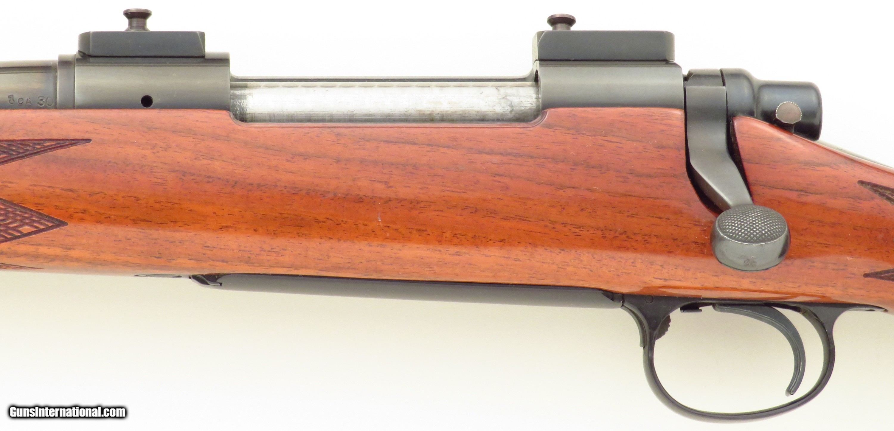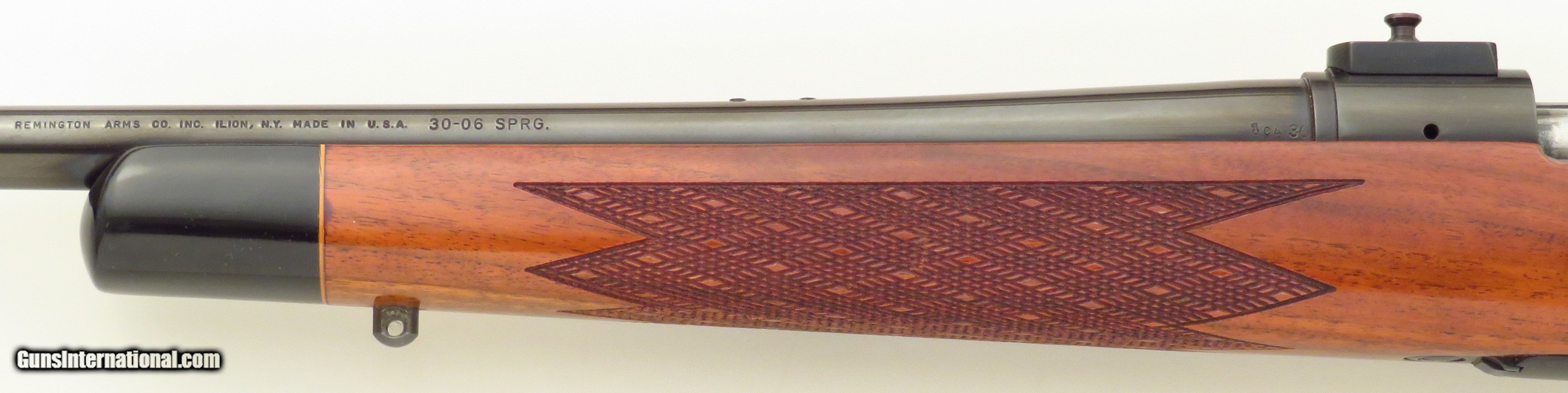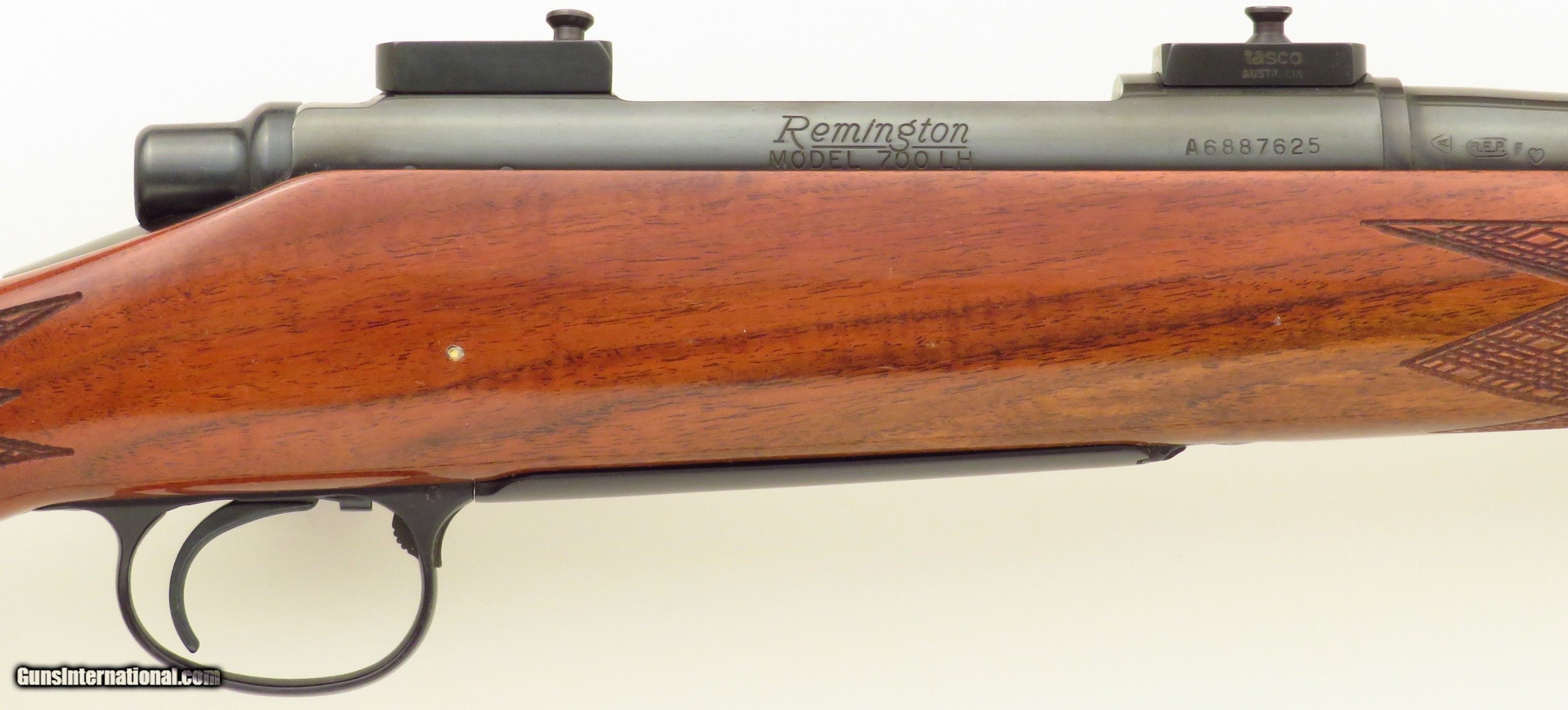 Description: Left hand Remington 700 BDL .30-06. Made in Ilion, serial A6887625 has a 22-inch barrel (drilled/tapped for open sights), jeweled bolt body and a checkered bolt knob. Wood figure is far above average. DIMENSIONS: Weight is 7.4 pounds and the length-of-pull is 13.25 inches. CONDITION: The bore is strong and bright. Trigger pull is crisp. Metal and wood finishes are each approximately 85 percent. No box or papers. The price is firm. $1,000 plus shipping. SOLD Rifle Caliber: .30-06 Springfield |
