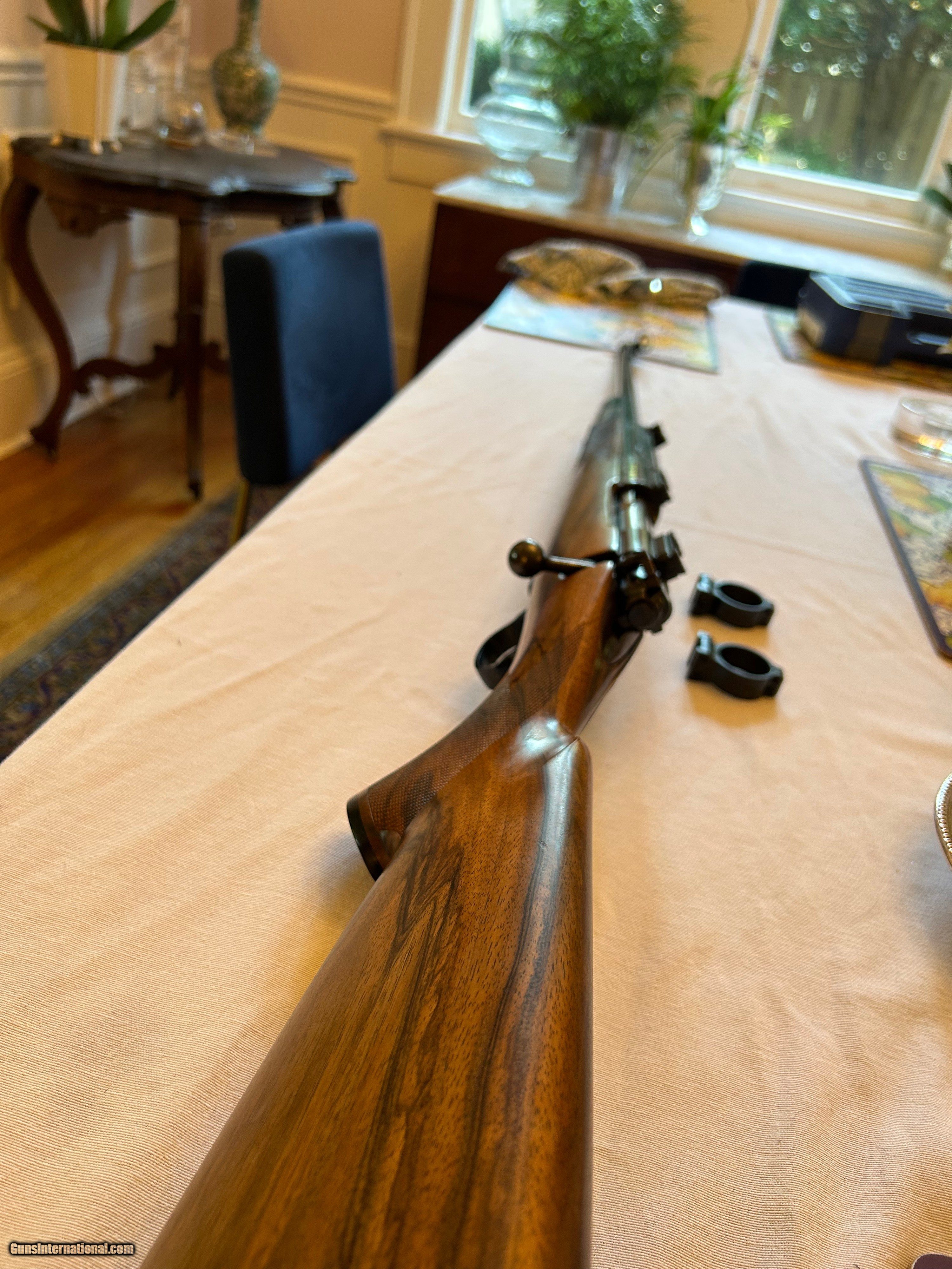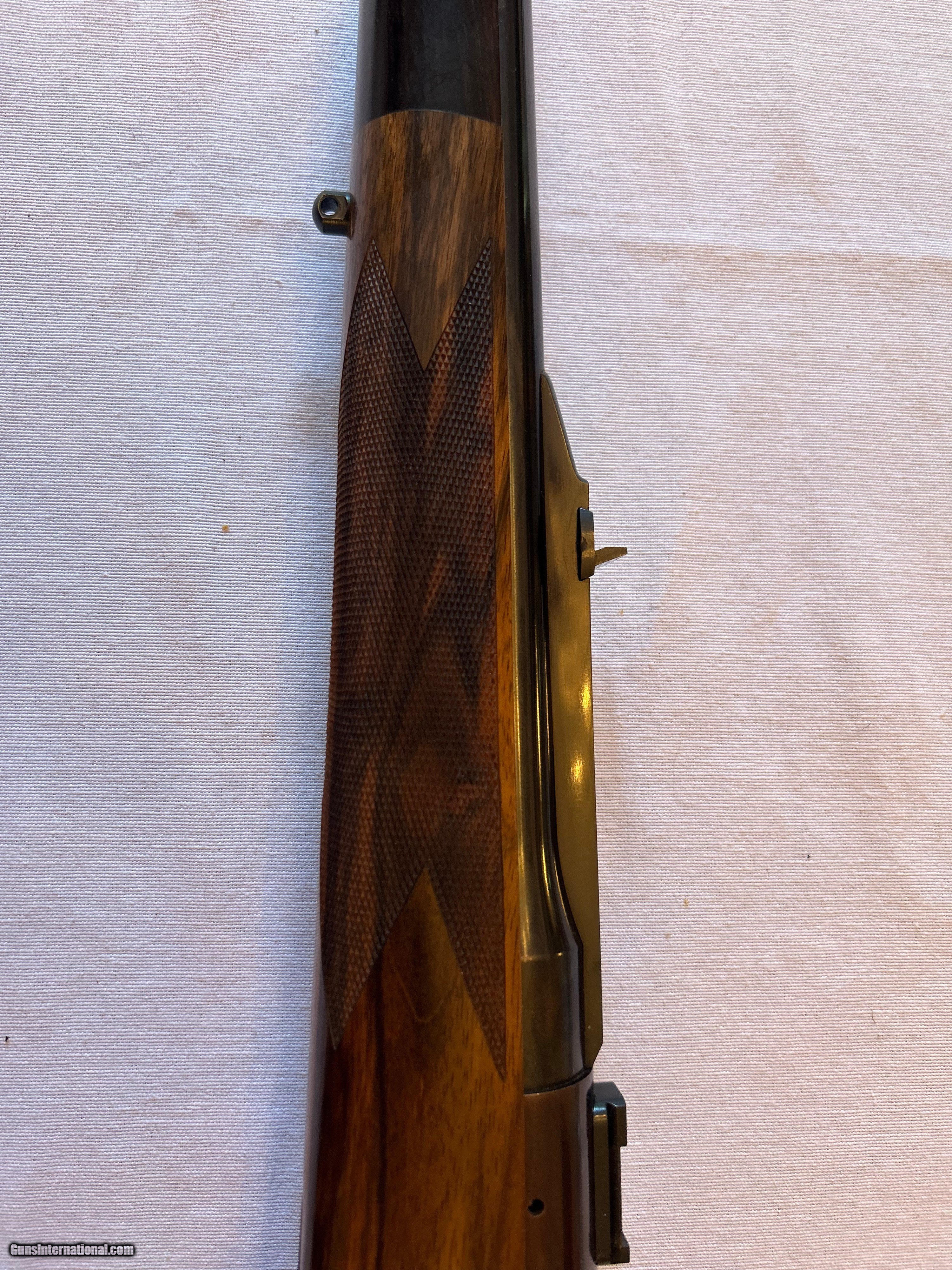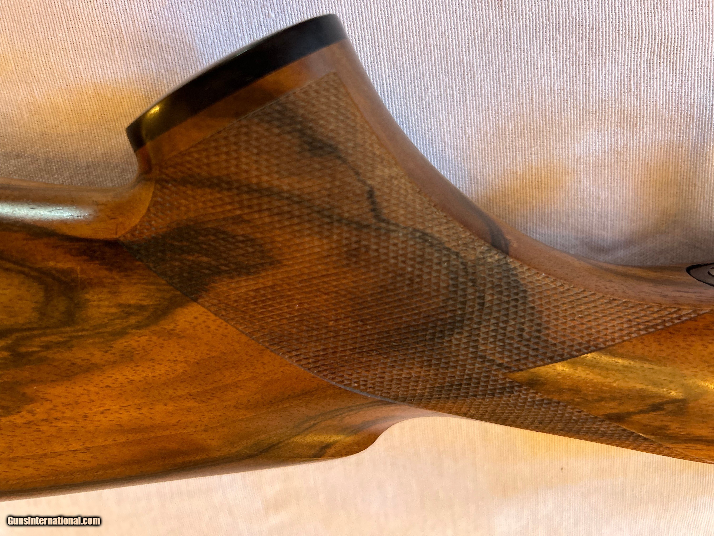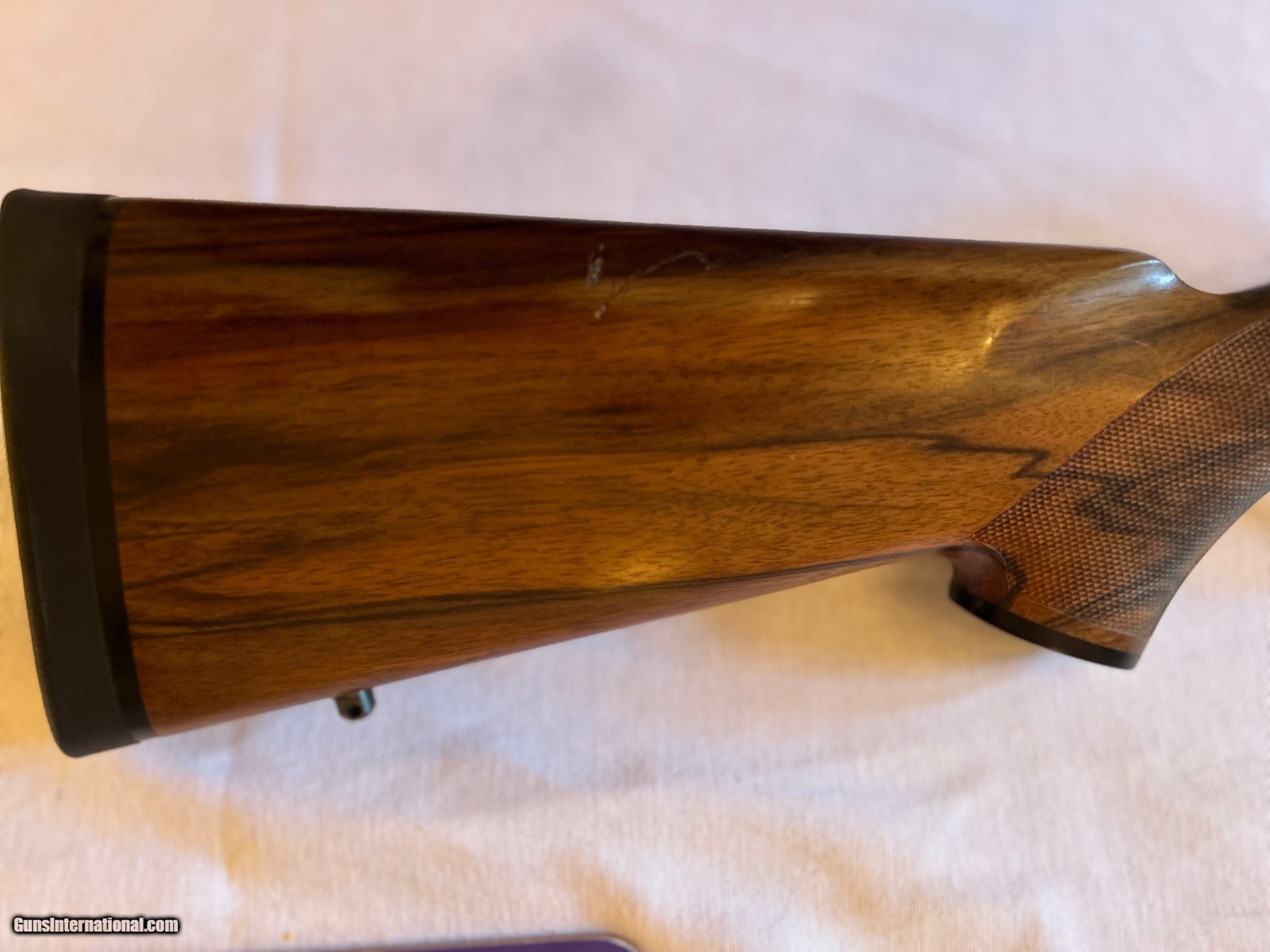 Description: Left Hand 375 H&H CRF Custom DG Rifle, Exquistite Wood Stock, 24 Inch Barrel With Quarter Rib With Rear Sight. Front Ramp Sight Is Hooded-Banded, 3 Position Safety, Talley Bases & 30mm Rings. Has Some Lesser Dings In Stock And A Few Worn Spots On Blueing( front of 1/4 rib & before front ramp sight) from use. Fine Checkering. Beautiul Express Rifle That Has Been Well Taken Care Of 3Day Non-Firing Inspection Period By Buyer $60.00 Shipping Fee To Lower 48, Only Where Legal Ships To Buyer's FFL $3750.00 SOLD PENDING FUNDS SOLD Rifle Caliber: .375 H&H Magnum |
