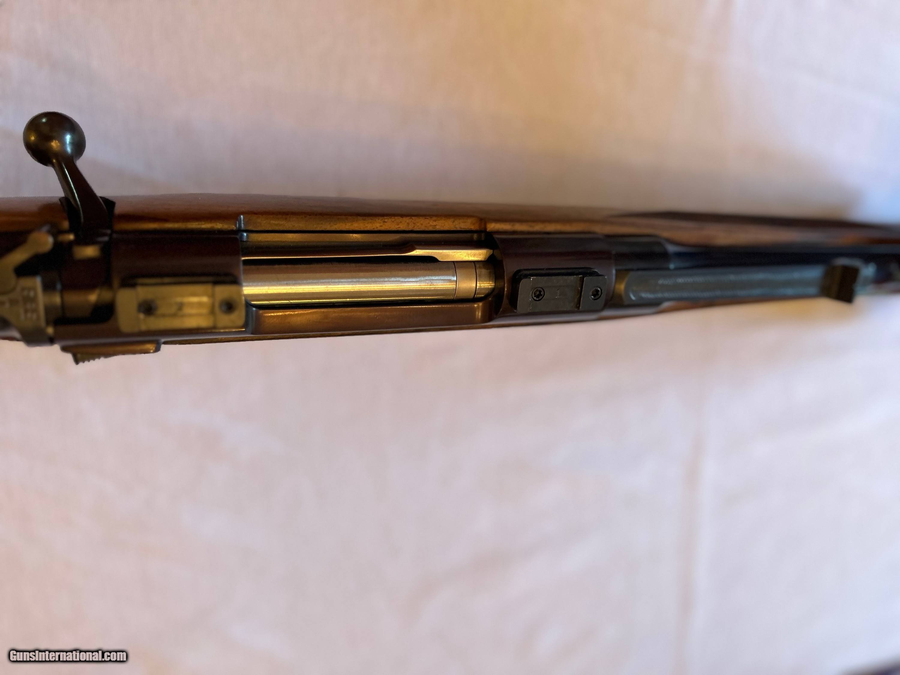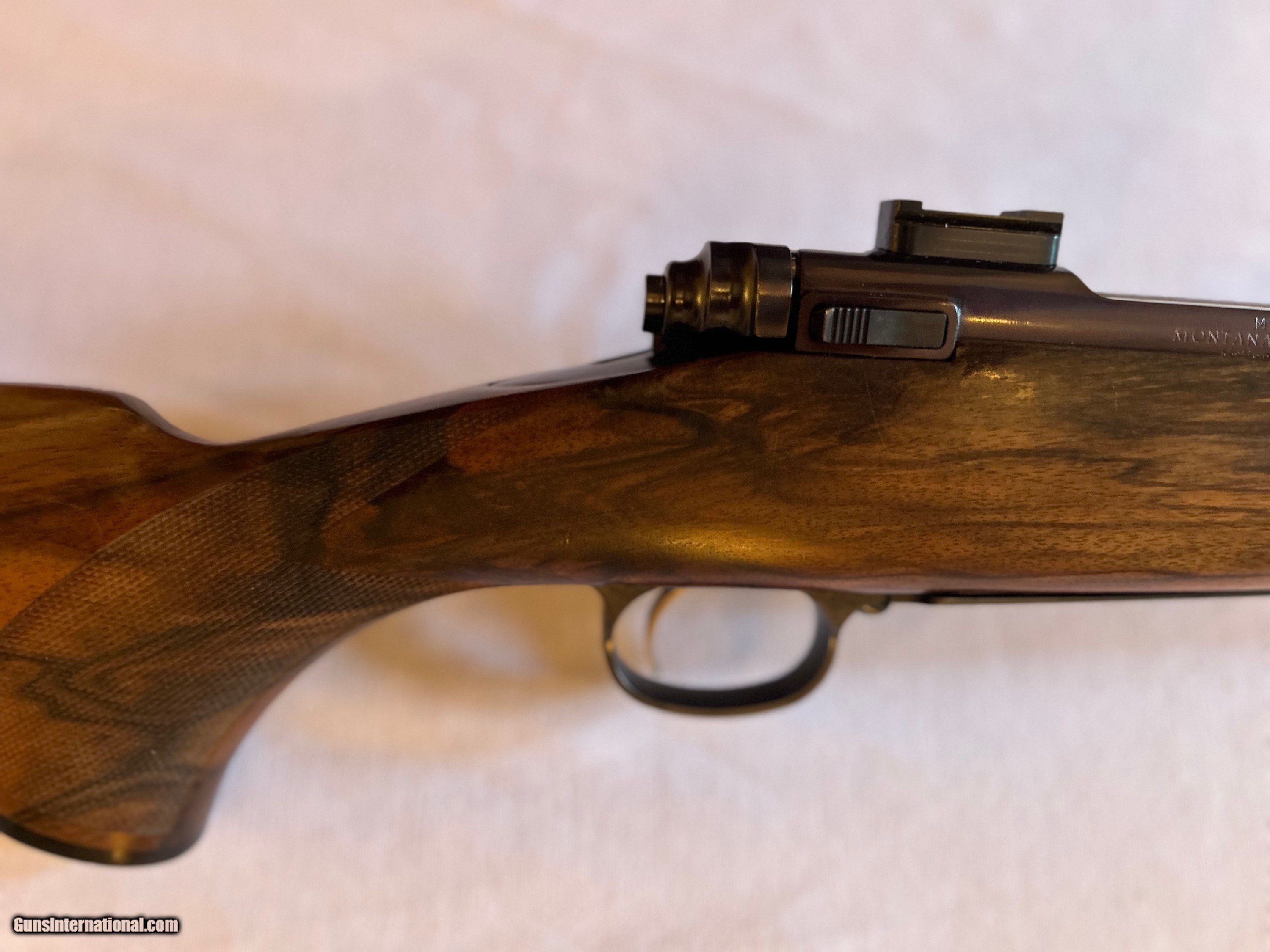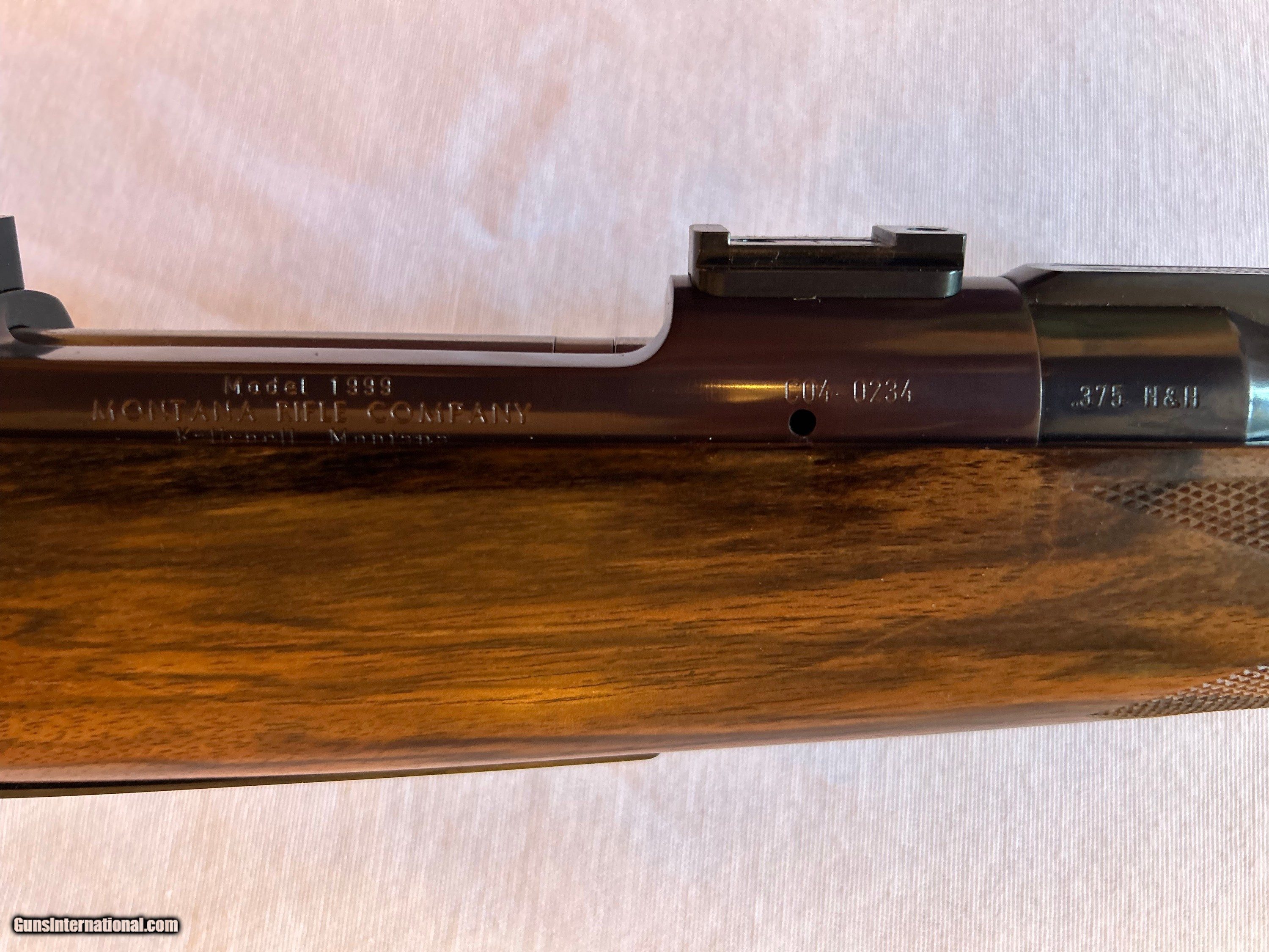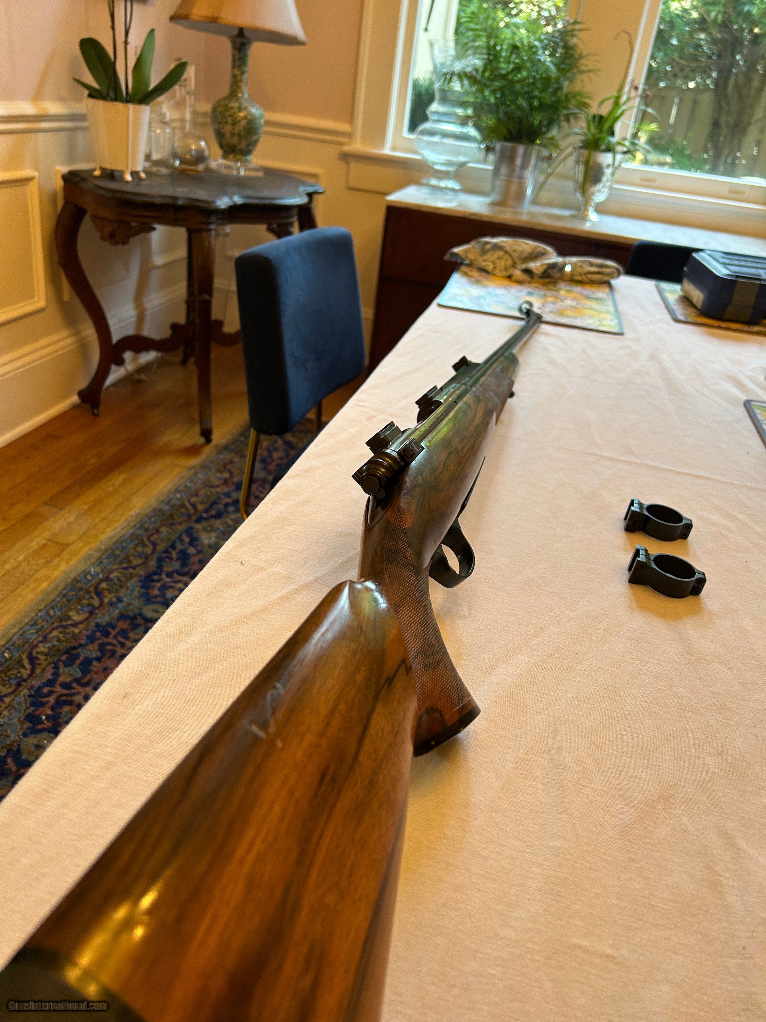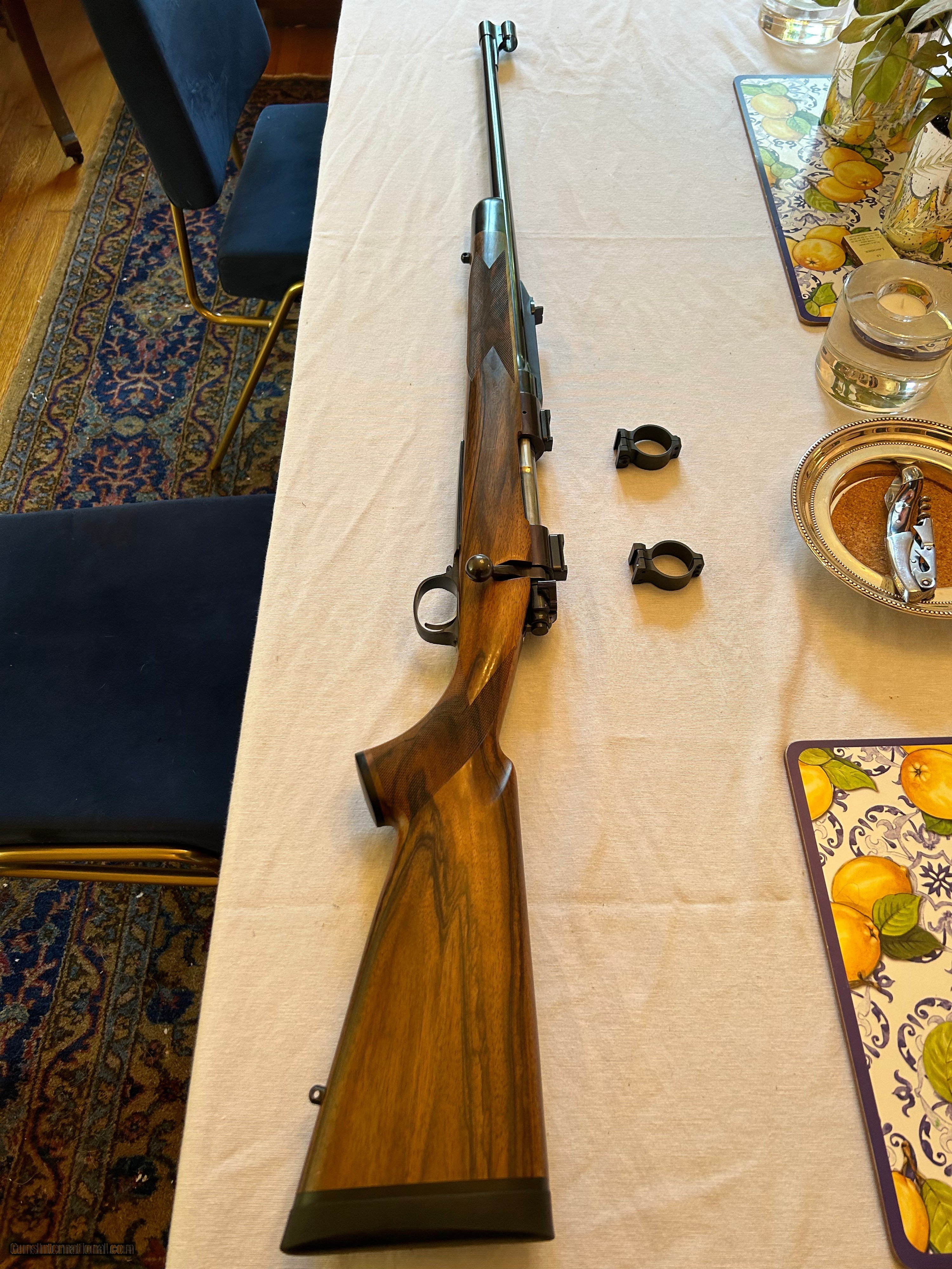Description: Left Hand 375 H&H CRF Custom DG Rifle, Exquistite Wood Stock, 24 Inch Barrel With Quarter Rib With Rear Sight. Front Ramp Sight Is Hooded-Banded, 3 Position Safety, Talley Bases & 30mm Rings. Has Some Lesser Dings In Stock And A Few Worn Spots On Blueing( front of 1/4 rib & before front ramp sight) from use. Fine Checkering. Beautiul Express Rifle That Has Been Well Taken Care Of 3Day Non-Firing Inspection Period By Buyer $60.00 Shipping Fee To Lower 48, Only Where Legal Ships To Buyer's FFL $3750.00 SOLD PENDING FUNDS SOLD Rifle Caliber: .375 H&H Magnum |