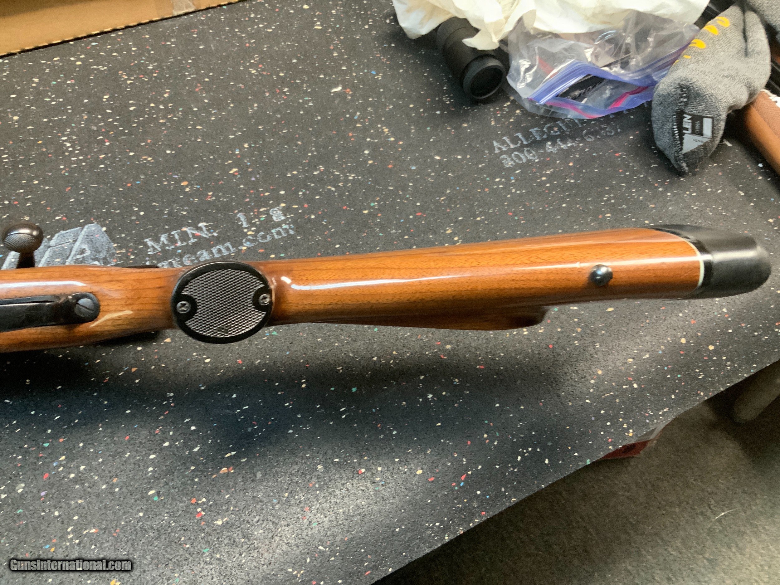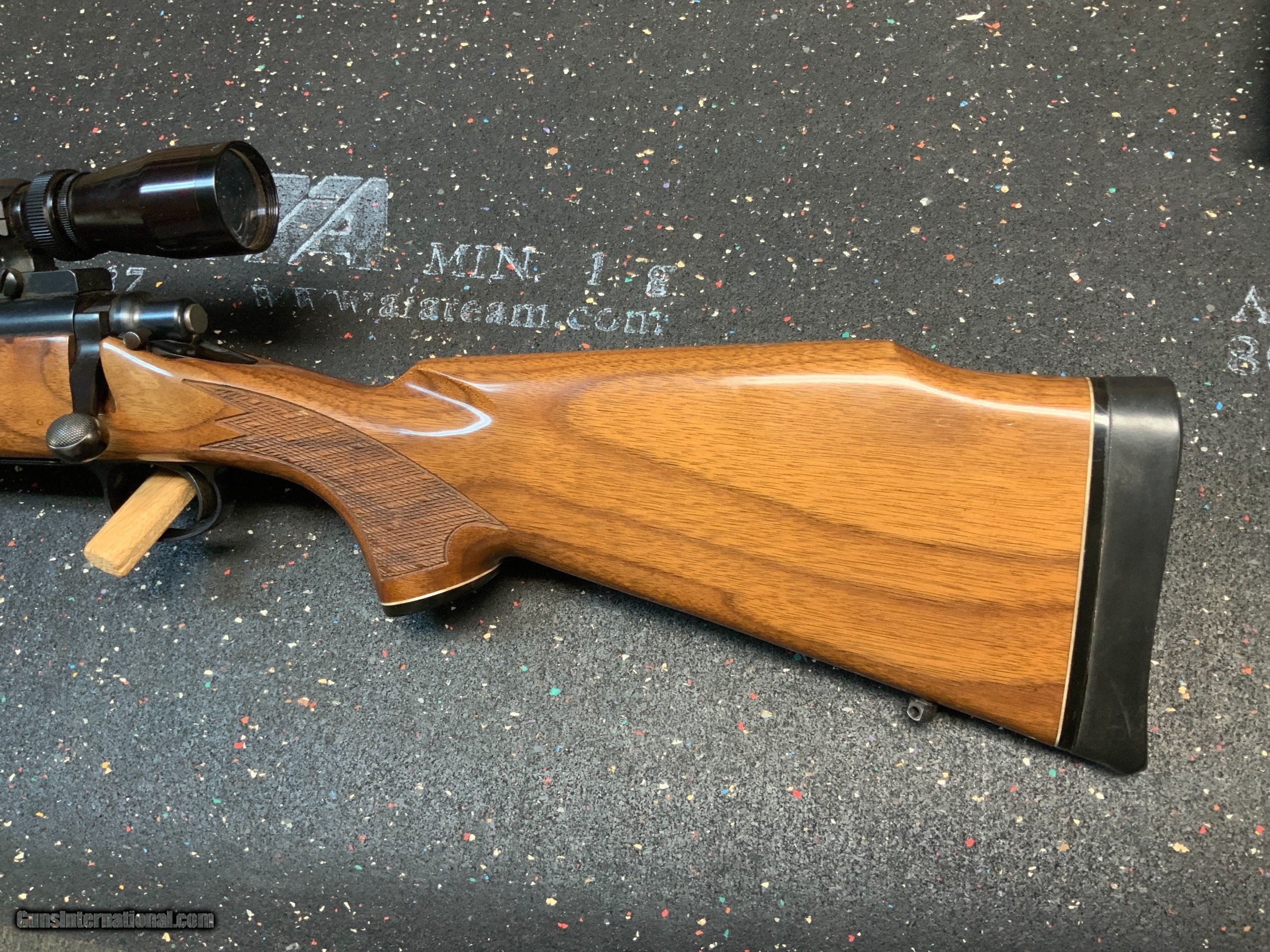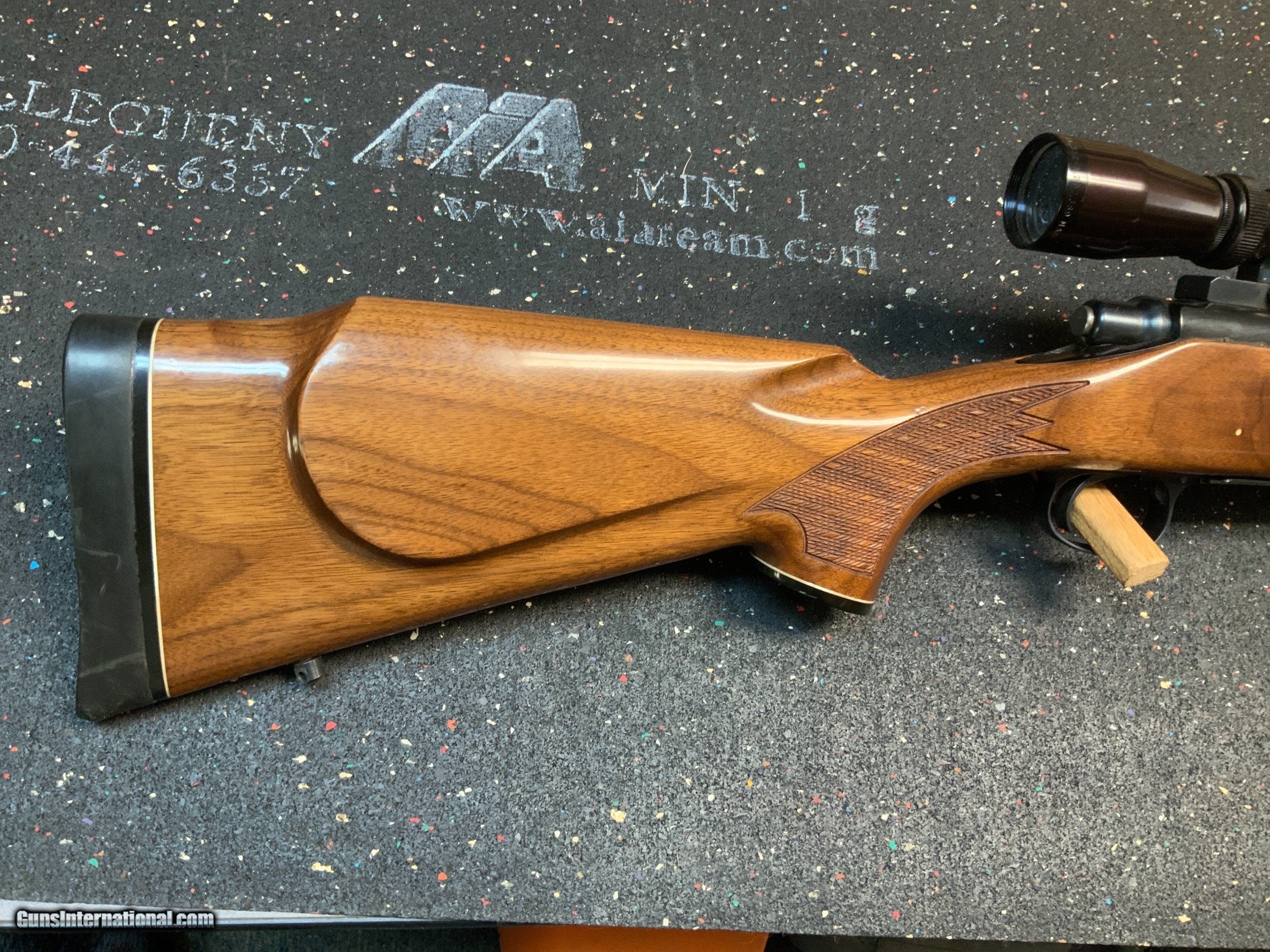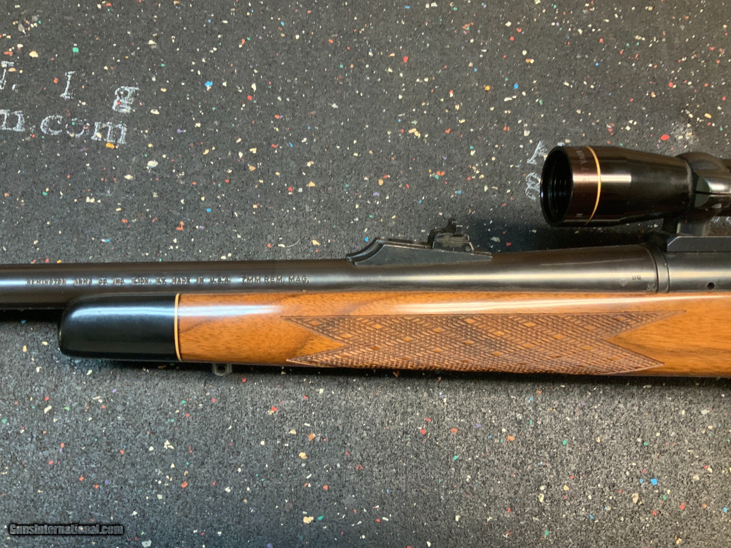 Description: Remington model 700 BDL bolt action rifle in the LEFT HANDED configuration. Very nice used condition with a Leupold VX-II 2X7 scope. Just a few minor handling marks in the wood with no cracks, splits or gouging. Bluing is excellent with just a touch of wear on the floor plate from carrying. Picture show what you get. Please add $60 for shipping and insurance to your FFL. if your FFL dealer will not except from a private party please add $20 to the cost of shipping to cover my FFL dealer's transfer fee. SOLD Rifle Caliber: 7mm Remington Magnum Manufacturer: Remington Model: 700 BDL Barrel Length: 24 inch Condition: Very Good Metal Condition: Very Good Wood Condition: Very Good Bore Condition: Excellent Action: Bolt |