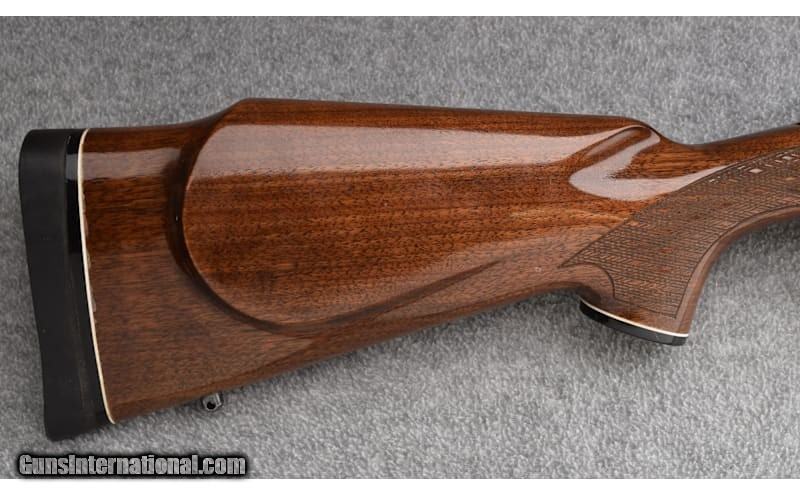 Description: This Remington Model 700 LH (Left Hand) in .300 Remington Ultra Mag (.300 RUM) remains in excellent condition. It has a 26" barrel with a radial muzzle brake attached. The floorplate is engraved. The bore is bright and shiny with distinct rifling. No box. The receiver has a two piece Weaver style scope base attached. A very nice left-hand rifle! .300 Remington Ultra Magnum SOLD Metal Condition: Excellent Wood Condition: Excellent Bore Condition: Excellent Barrels: 26" Plus Muzzle Brake Triggers: Factory Stock Dimensions: 13.5" LOp Fore End: Checkered Walnut Semi Pistol Grip - Checkered Walnut Forend Butt Pad: Black Rubber Pad Weight: 8 LBS Sights: Two Piece Weaver Base Item Location: Wheeling |